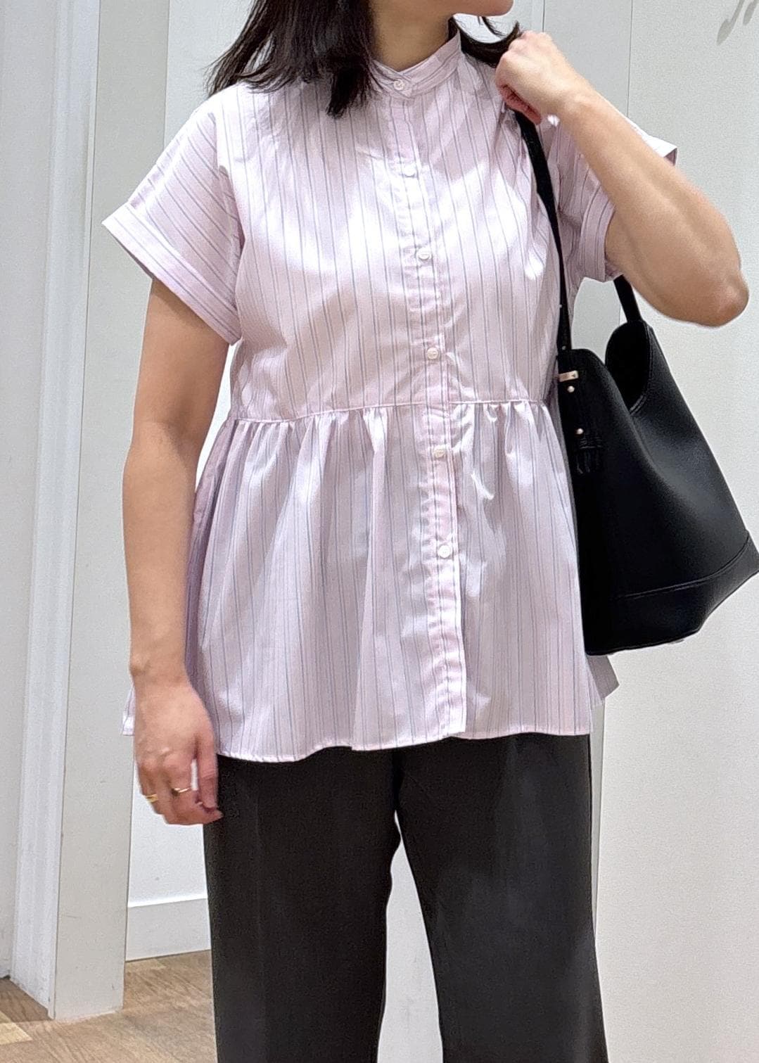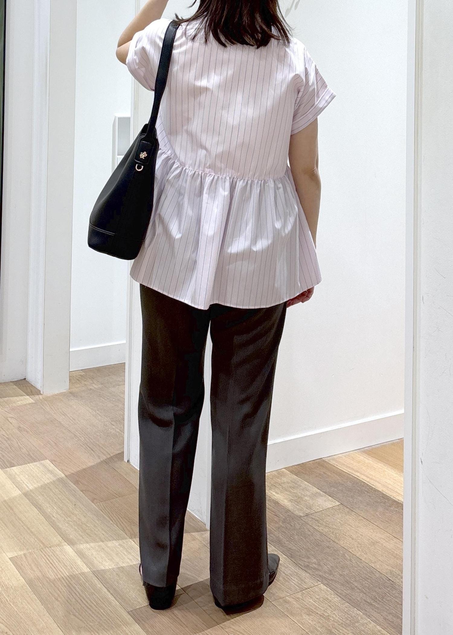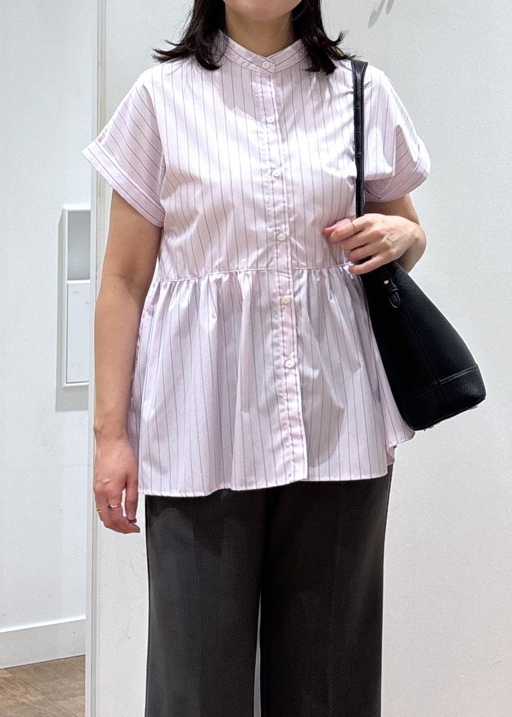 さらっとした素材で、体離れが良く夏も快適に着ていただけます。程よくハリもあるのでペプラムのギャザーもとても綺麗に見えます。お尻が隠れる着丈で体型カバーにも◎。