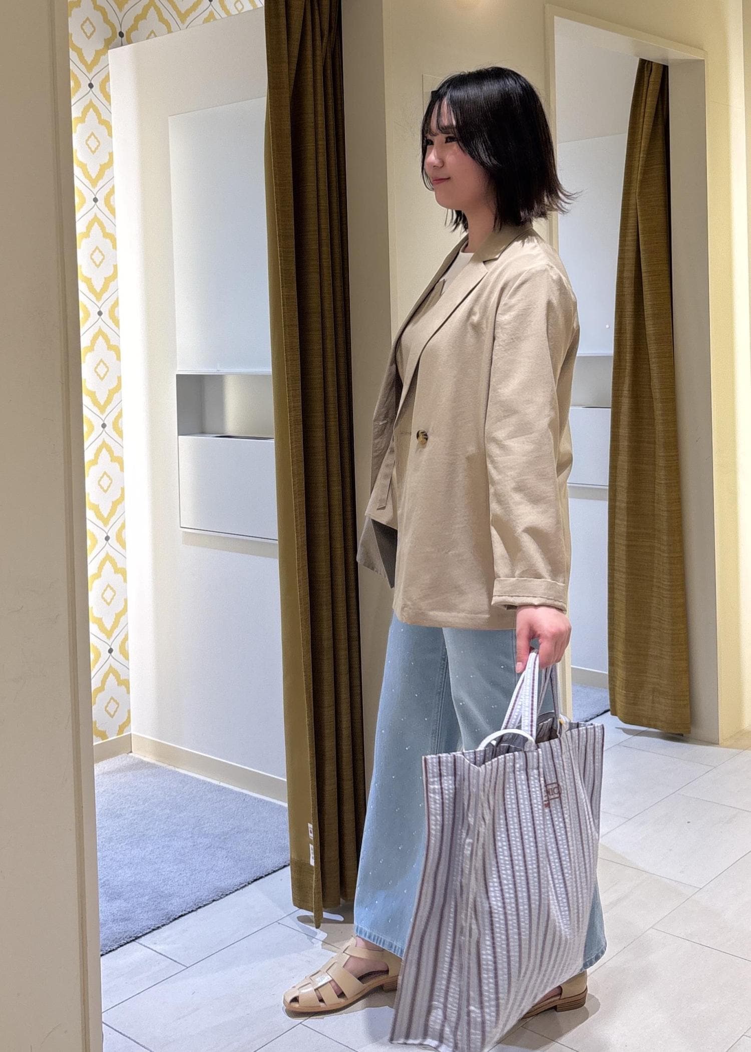 予約ROPÉ PICNICエアリーリネンライク ダブルジャケット/接触冷感・UVカット・速乾ベージュ / F¥7,997レビュー着丈の長さは163cmでヒップが隠れるぐらいでした。