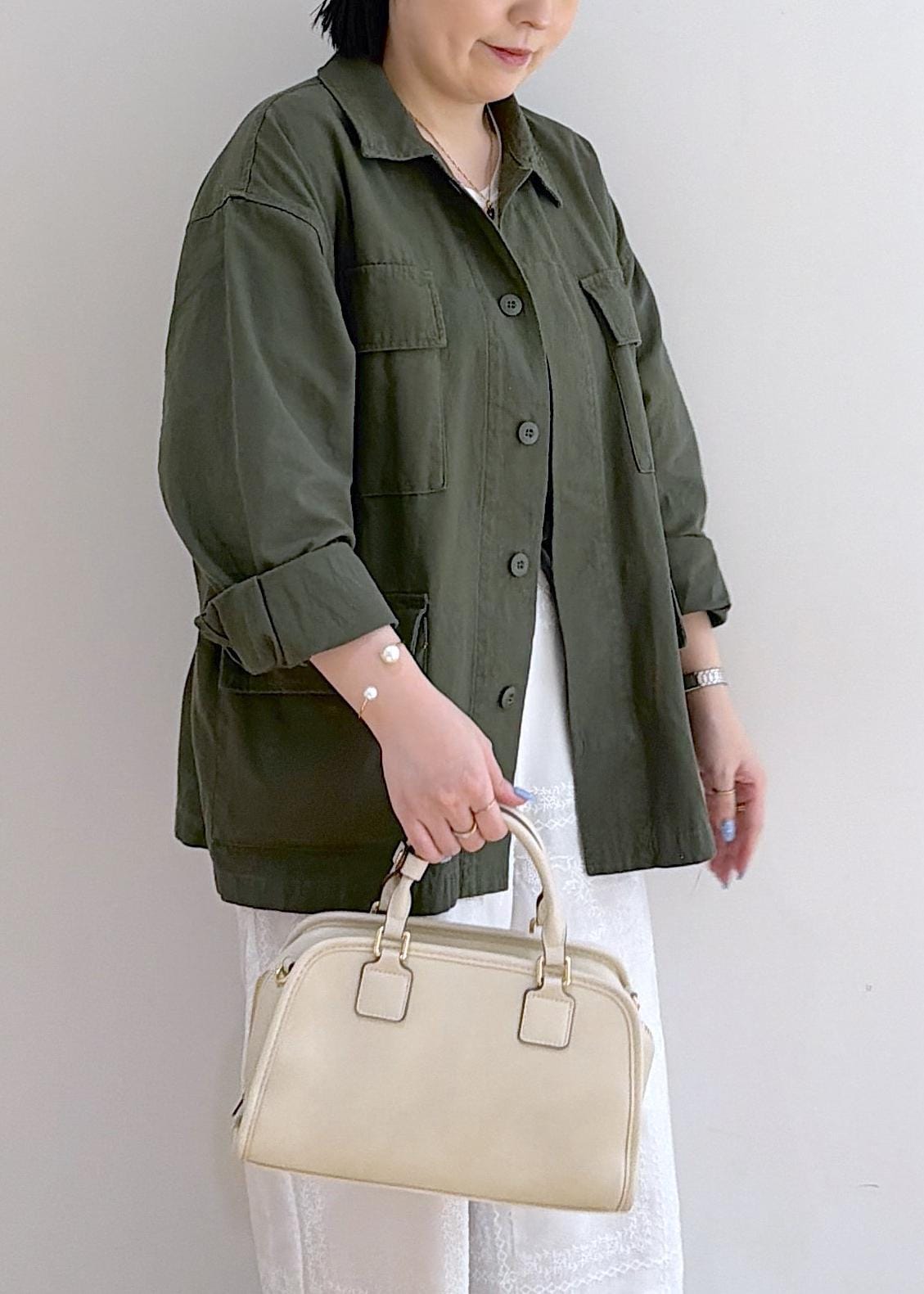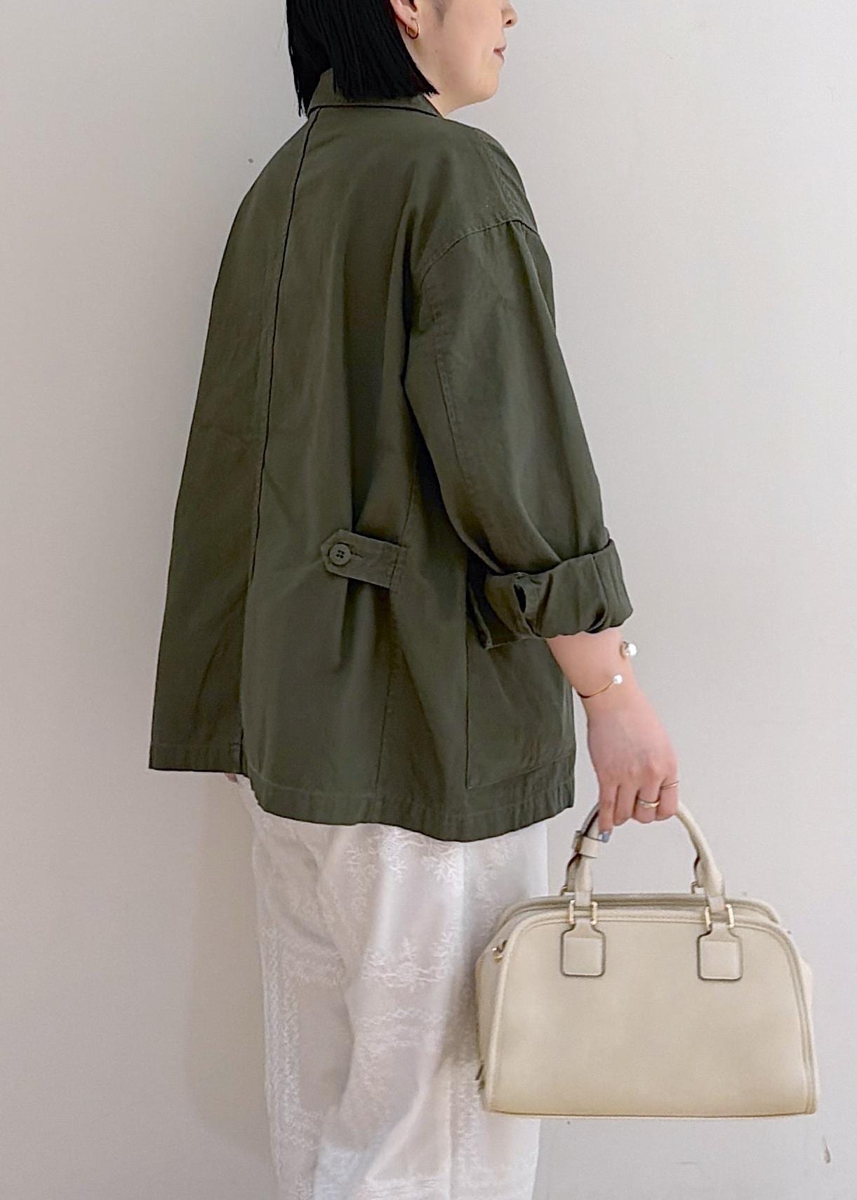 2BUY10%OFFROPÉ PICNICミリタリーブルゾンカーキ / F¥8,492レビューこちらリアルバイアイテム☺︎156cmだとヒップ周りまで隠れる着丈。サイドにタブがあり、ウエスト周りの調節可能◎シャツ感覚でサラッと着用できます☺︎