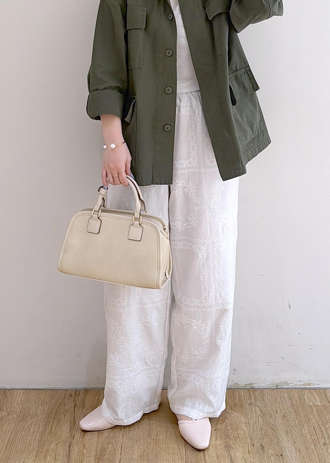 刺繍パンツを合わせた今年っぽいスタイリングです♡