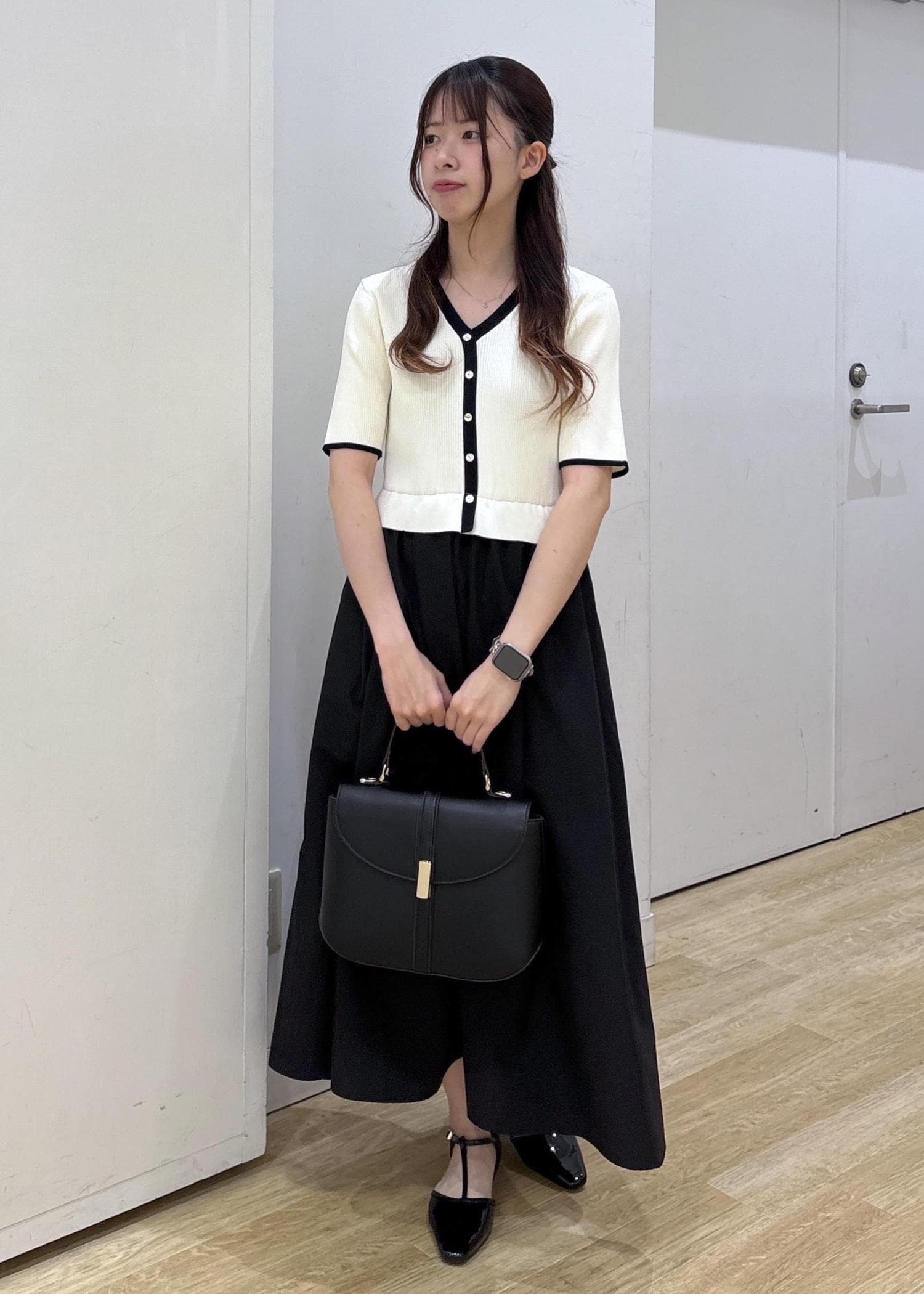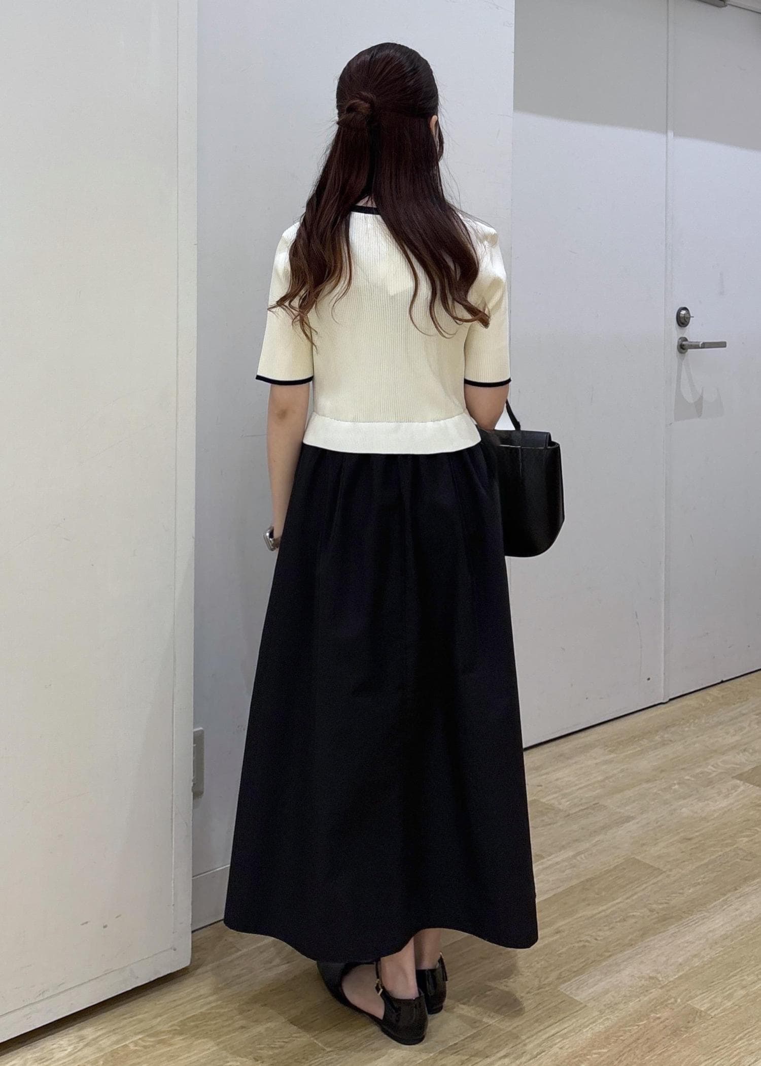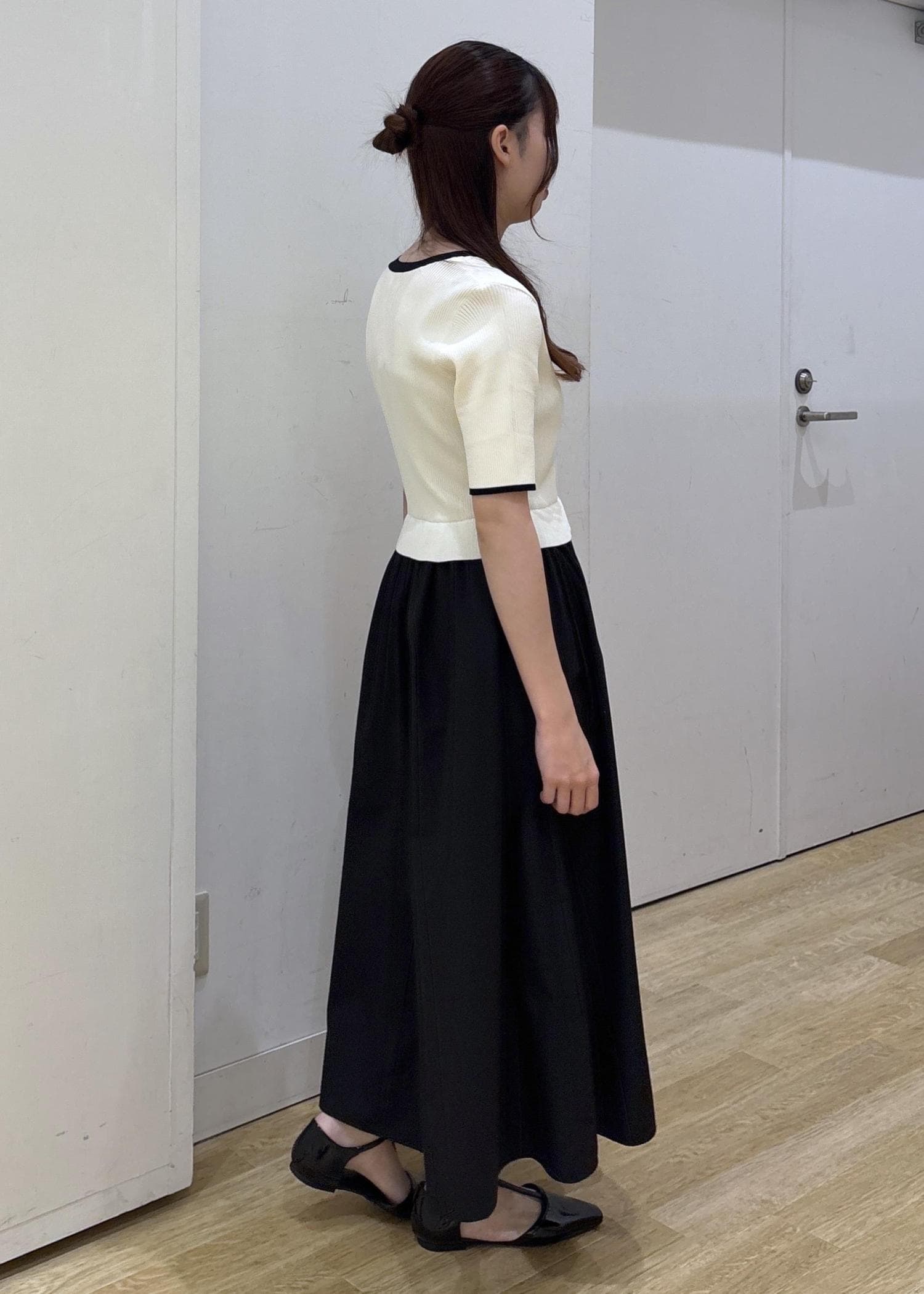 スカートの部分はハリのある生地感で、高見えします◎ -