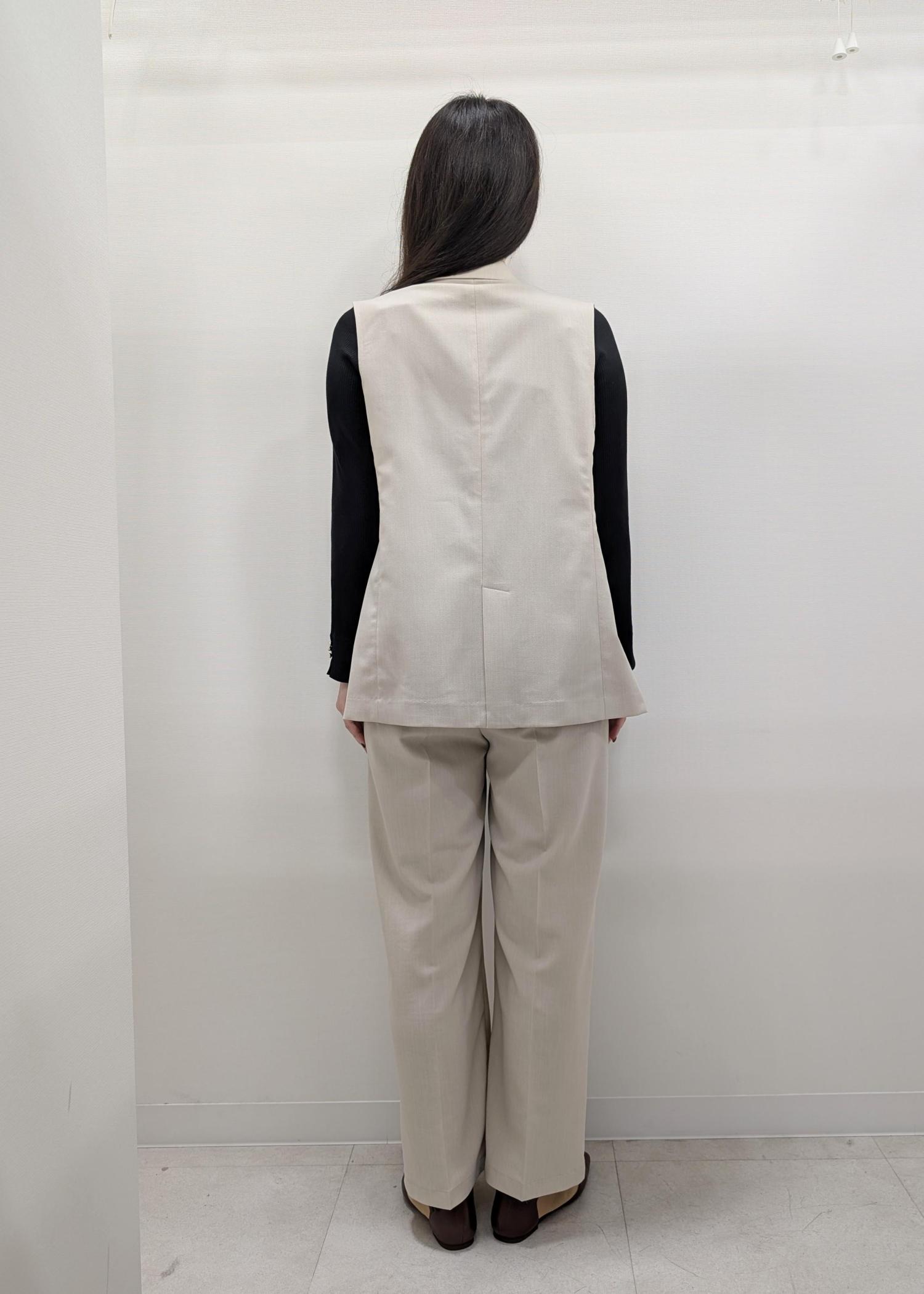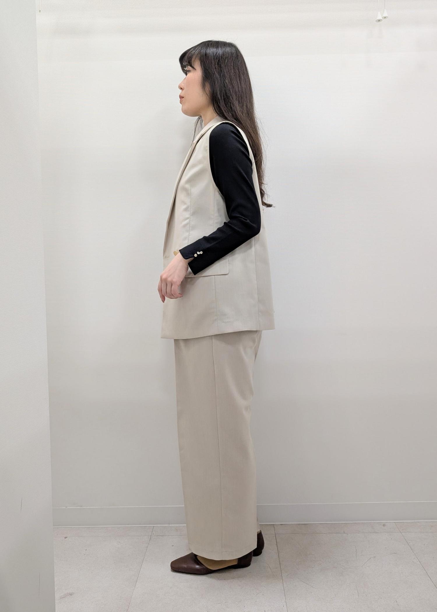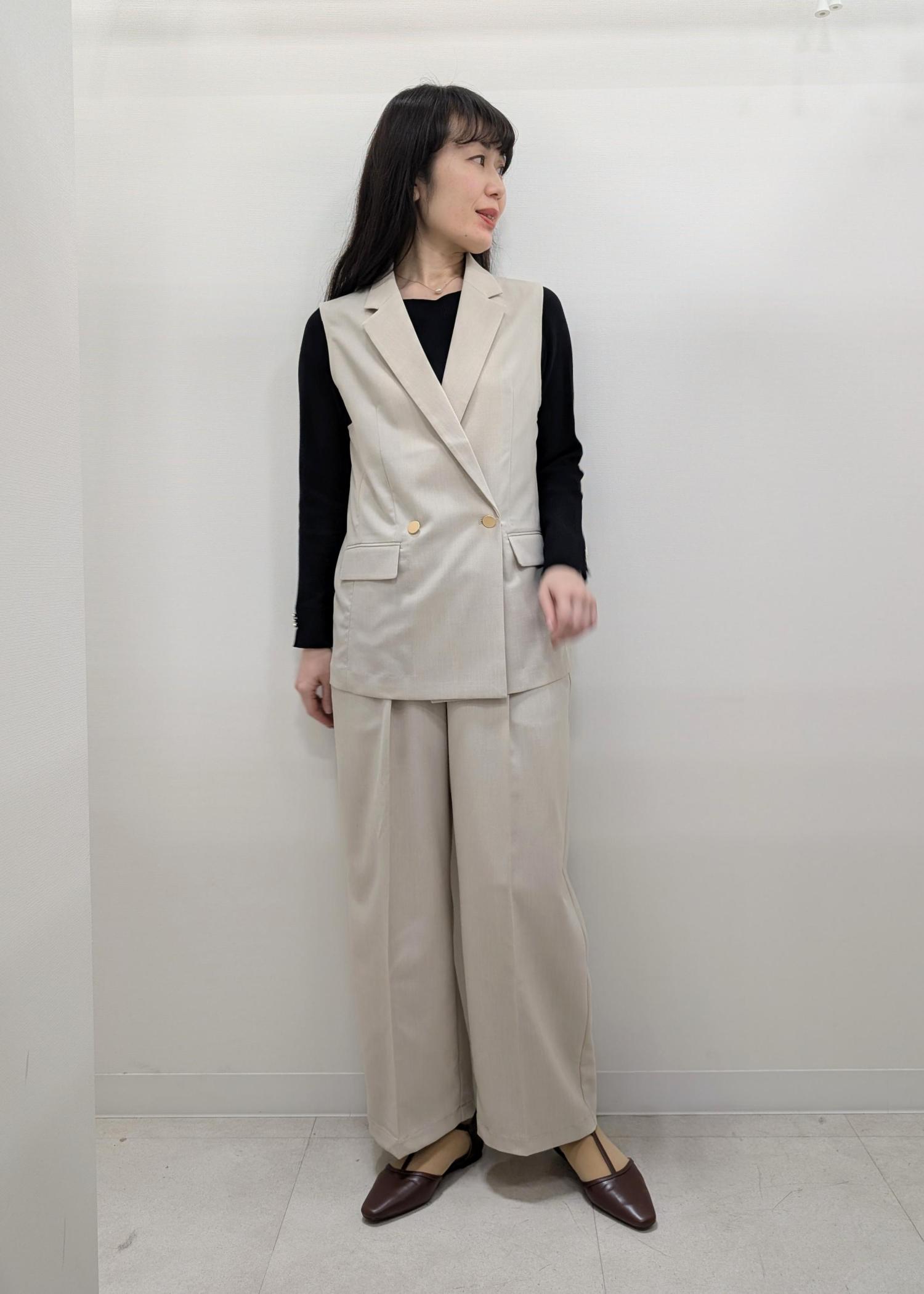 マンネリしがちな通勤コーデを新鮮に見せてくれるジレを使ったコーディネート。