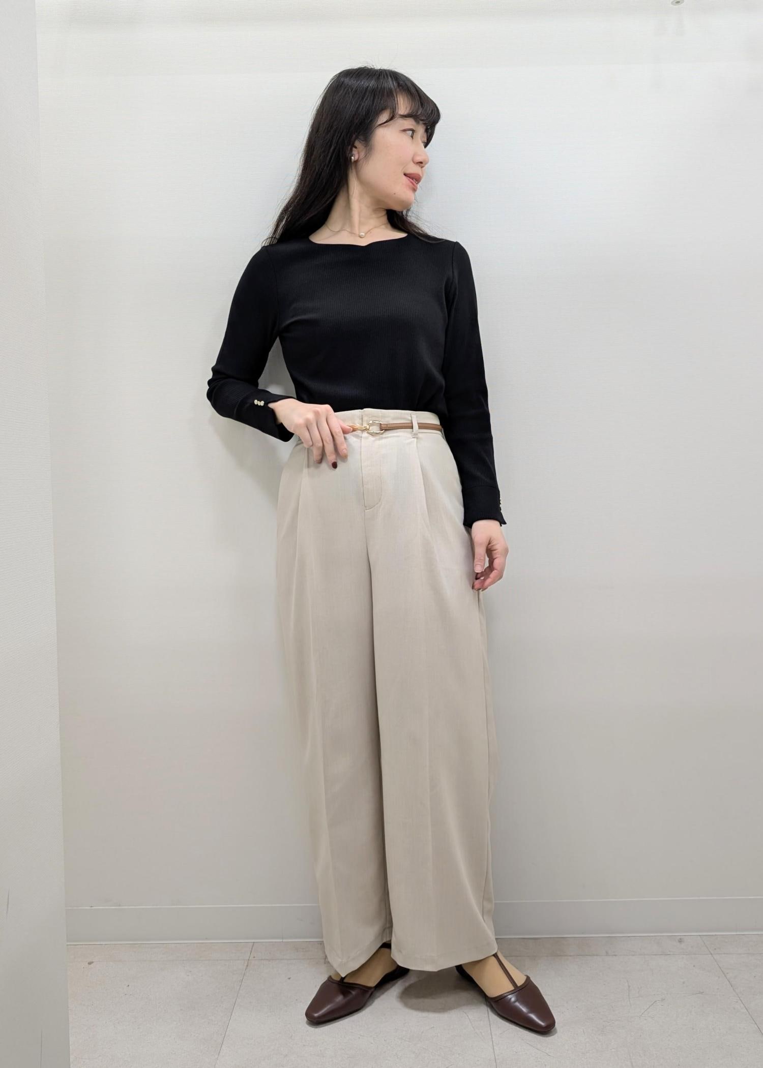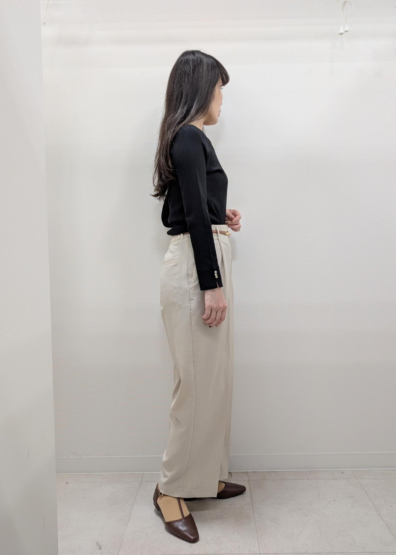 タイトスカート、マーメイドスカート、ワイドパンツと色々なボトムに合わせやすいです。 -