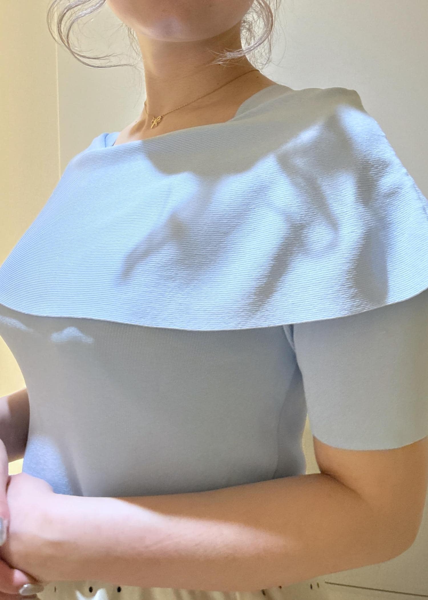 ROPÉ PICNIC八方映えニット ハーフスリーブケープニットプルオーバー/UVカット・接触冷感・イージーケアサックス / F¥5,489レビュー伸縮性があるので動きやすいです。フィット感があるので身体のラインが出やすく女性らしいシルエットがつくれます。