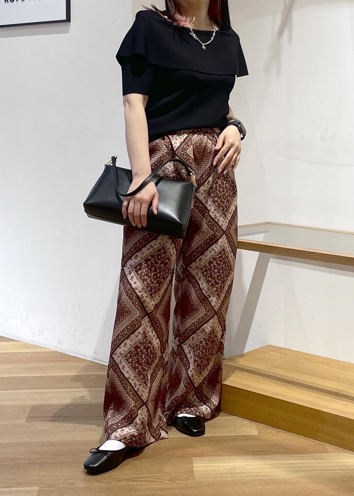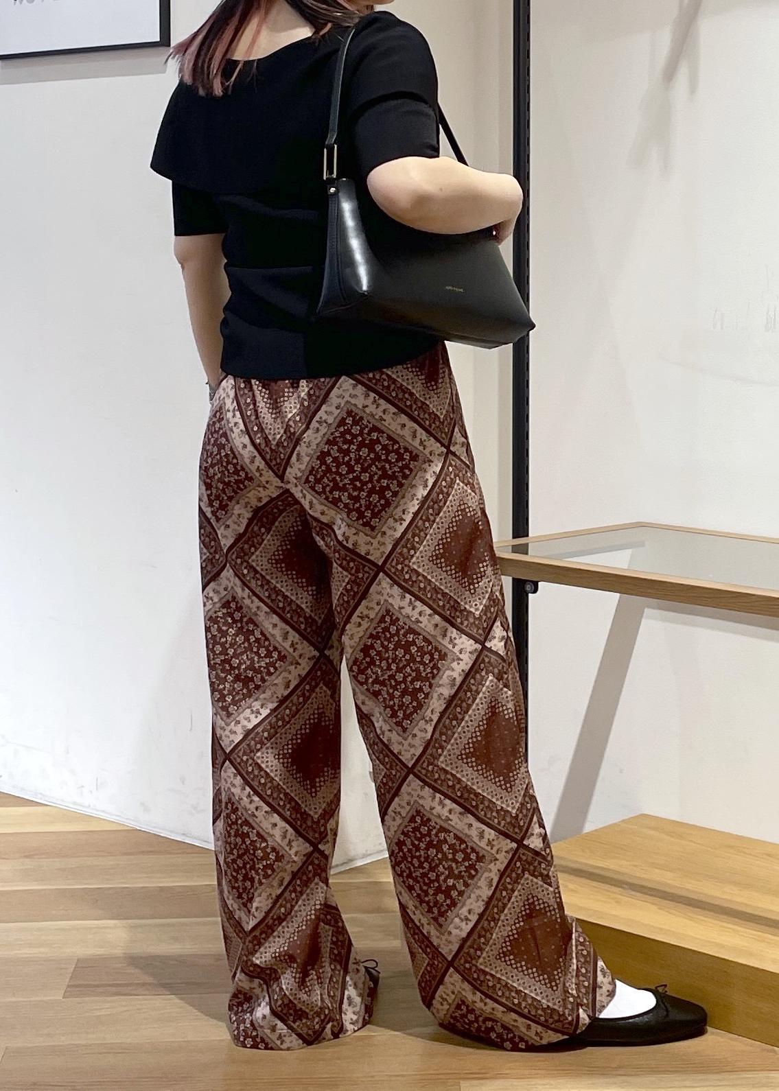 ROPÉ PICNICスカーフ柄イージーパンツブラウン系 / S¥6,996レビューウエストゴムでゆるっとしたシルエットの楽ちんパンツです。シンプルなトップスと合わせるだけで印象的なスタイルができちゃいます。