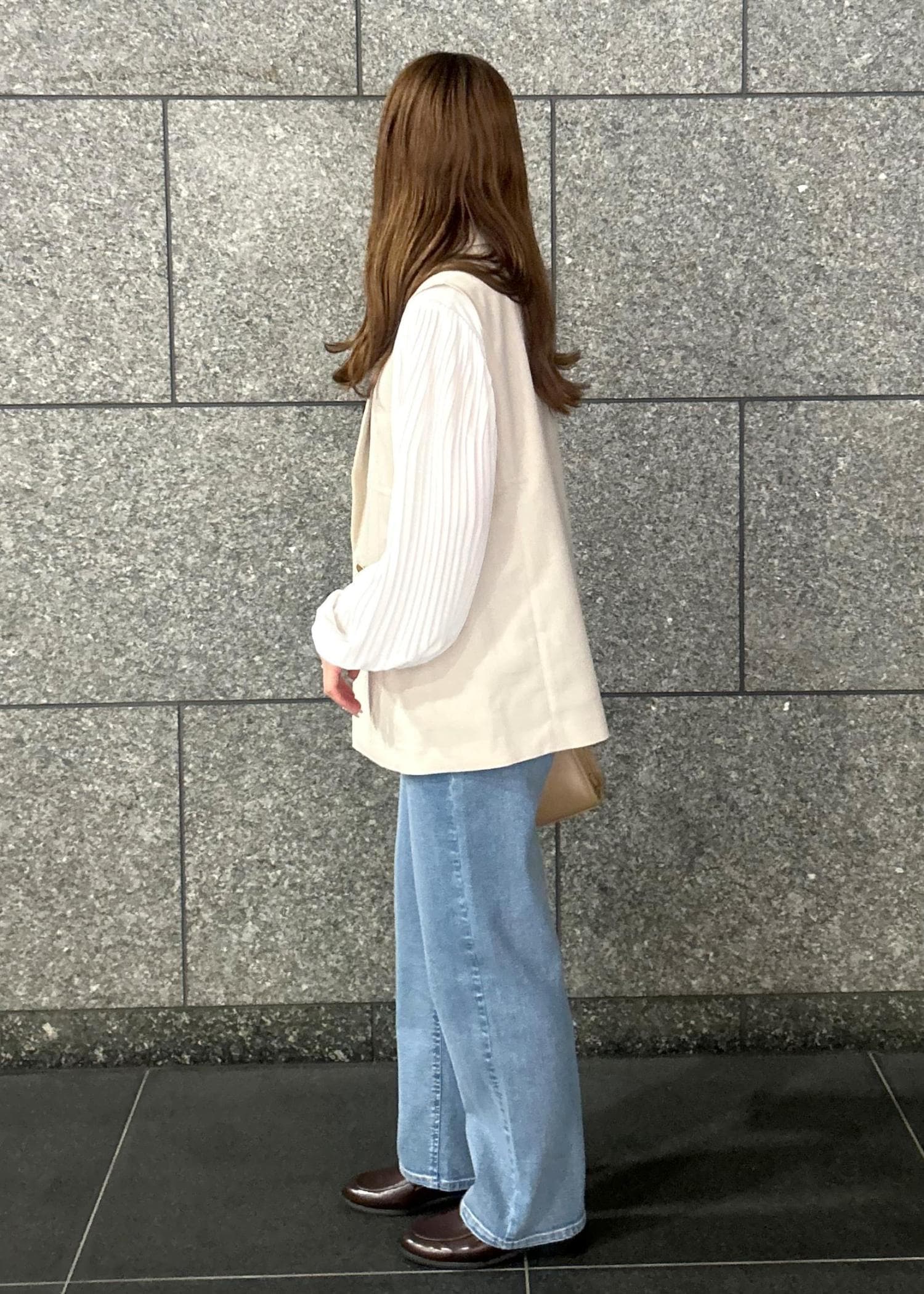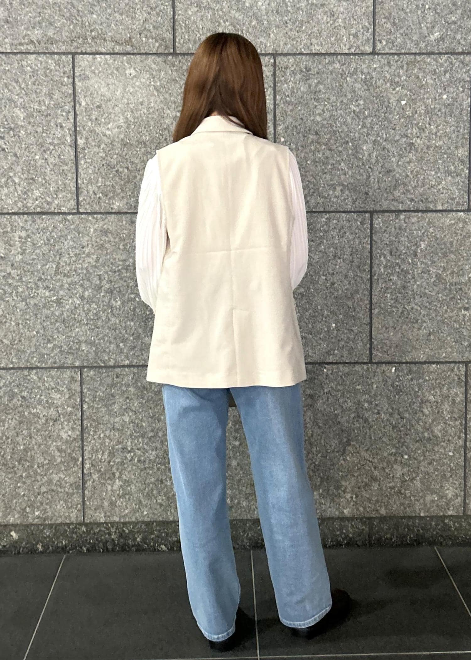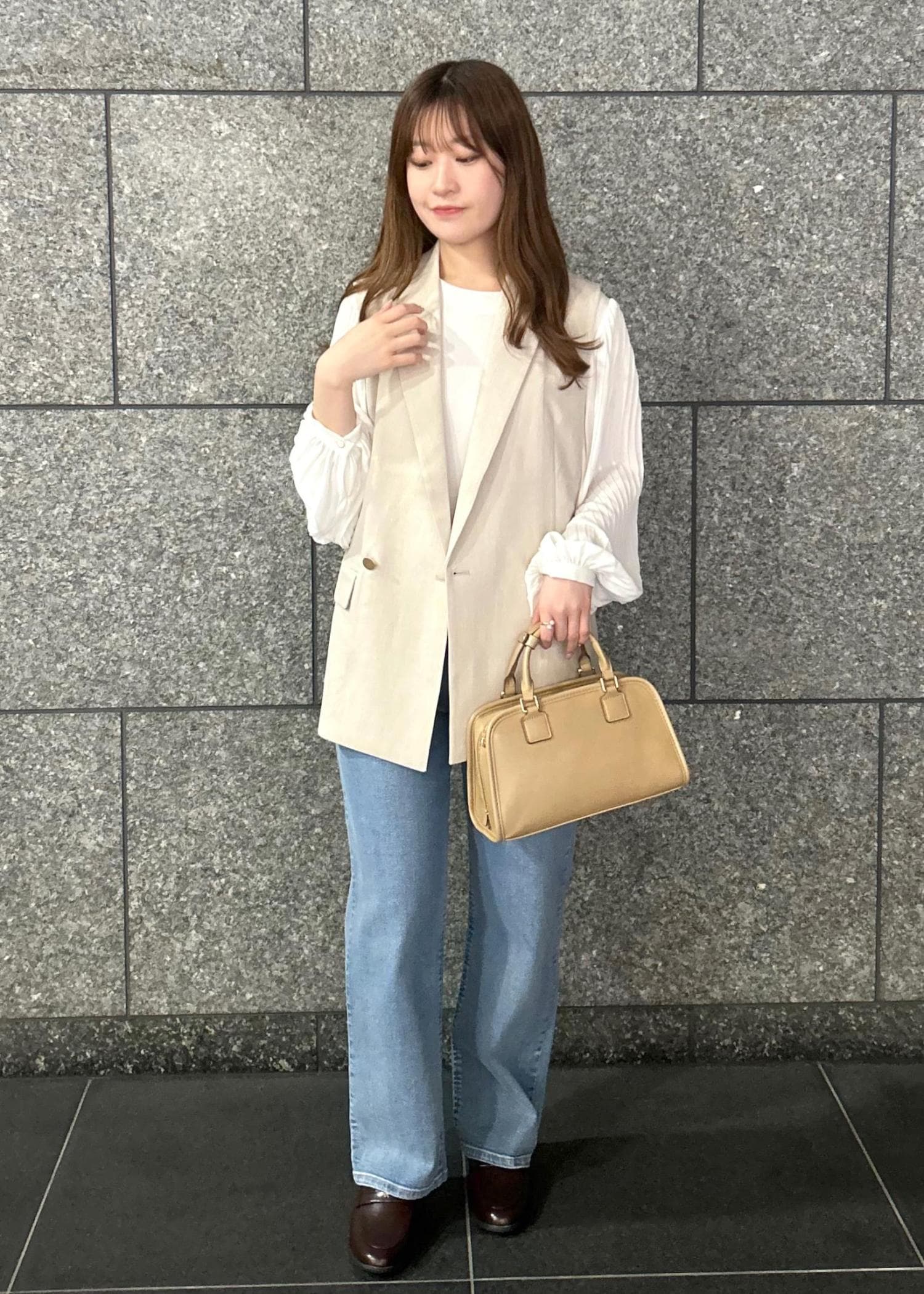 ジレにデニムパンツを合わせてキレイめになりすぎない大人カジュアルコーデに仕上げました!