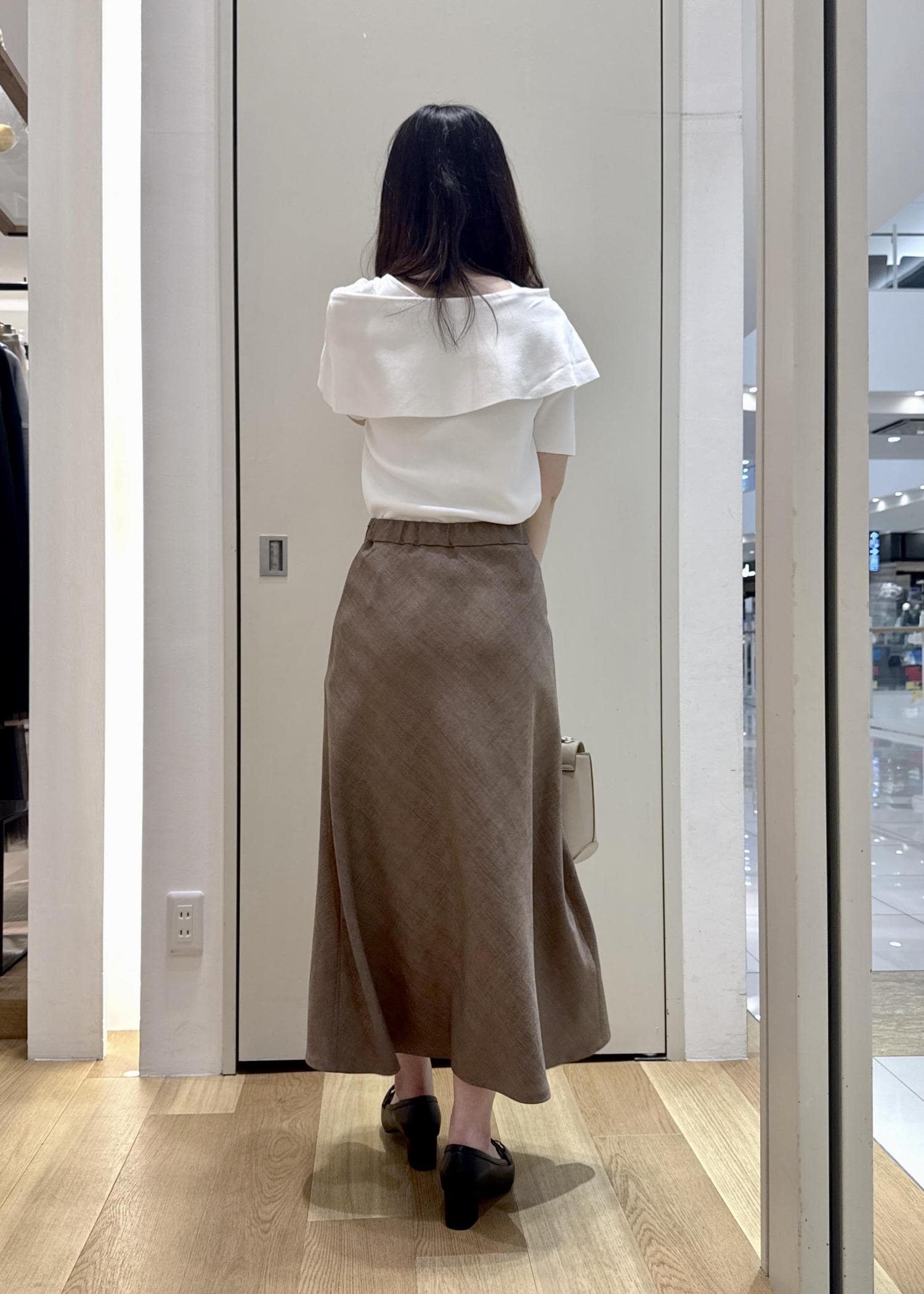 Sサイズでふくらはぎが隠れるぐらいの長さで、広がり具合もすっきりとしてちょうど良いサイズ感です。