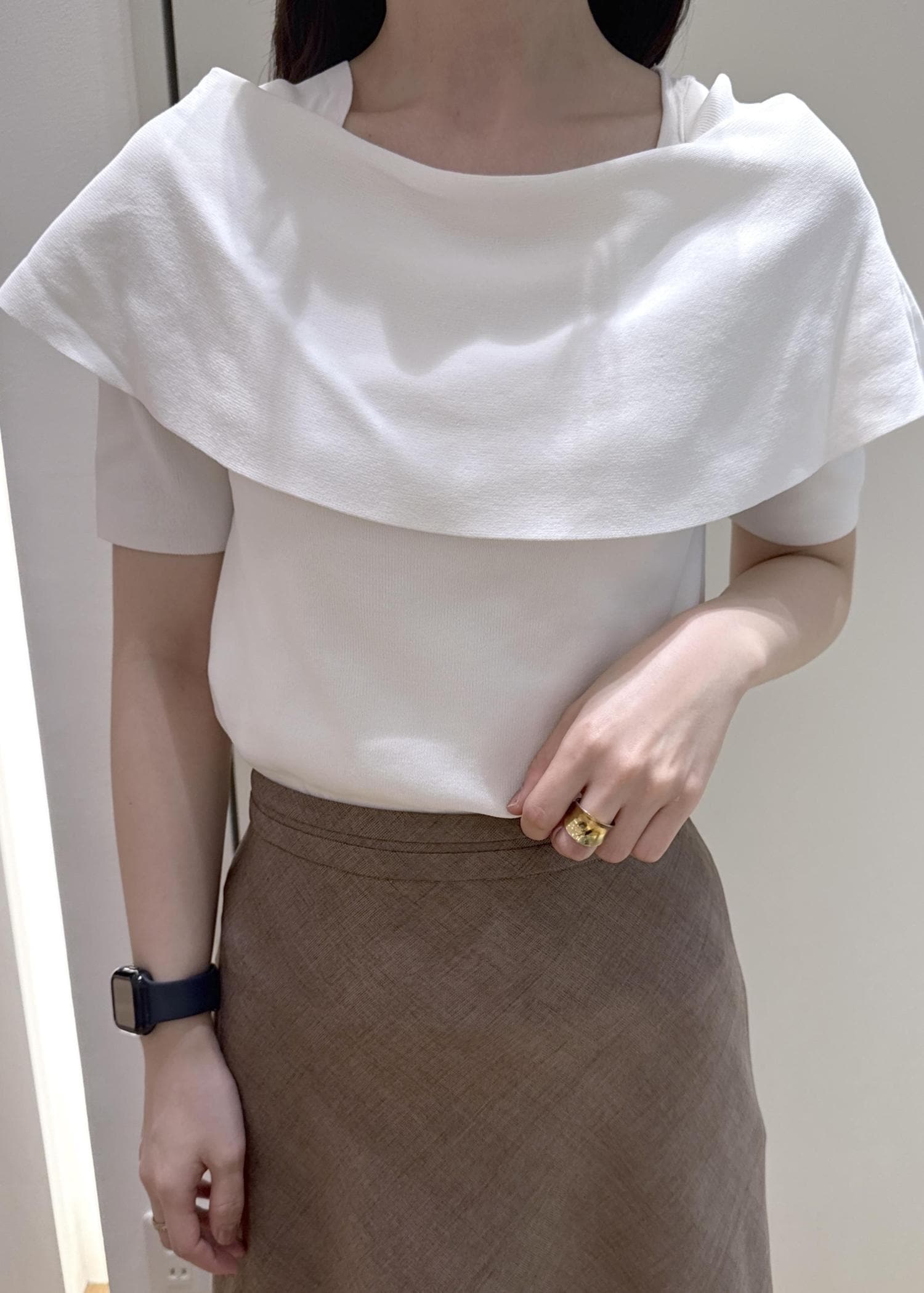 ROPÉ PICNIC八方映えニット ハーフスリーブケープニットプルオーバー/UVカット・接触冷感・イージーケアオフホワイト / F¥5,489レビューオフショルのようやデザインがポイントのきれいめニット。