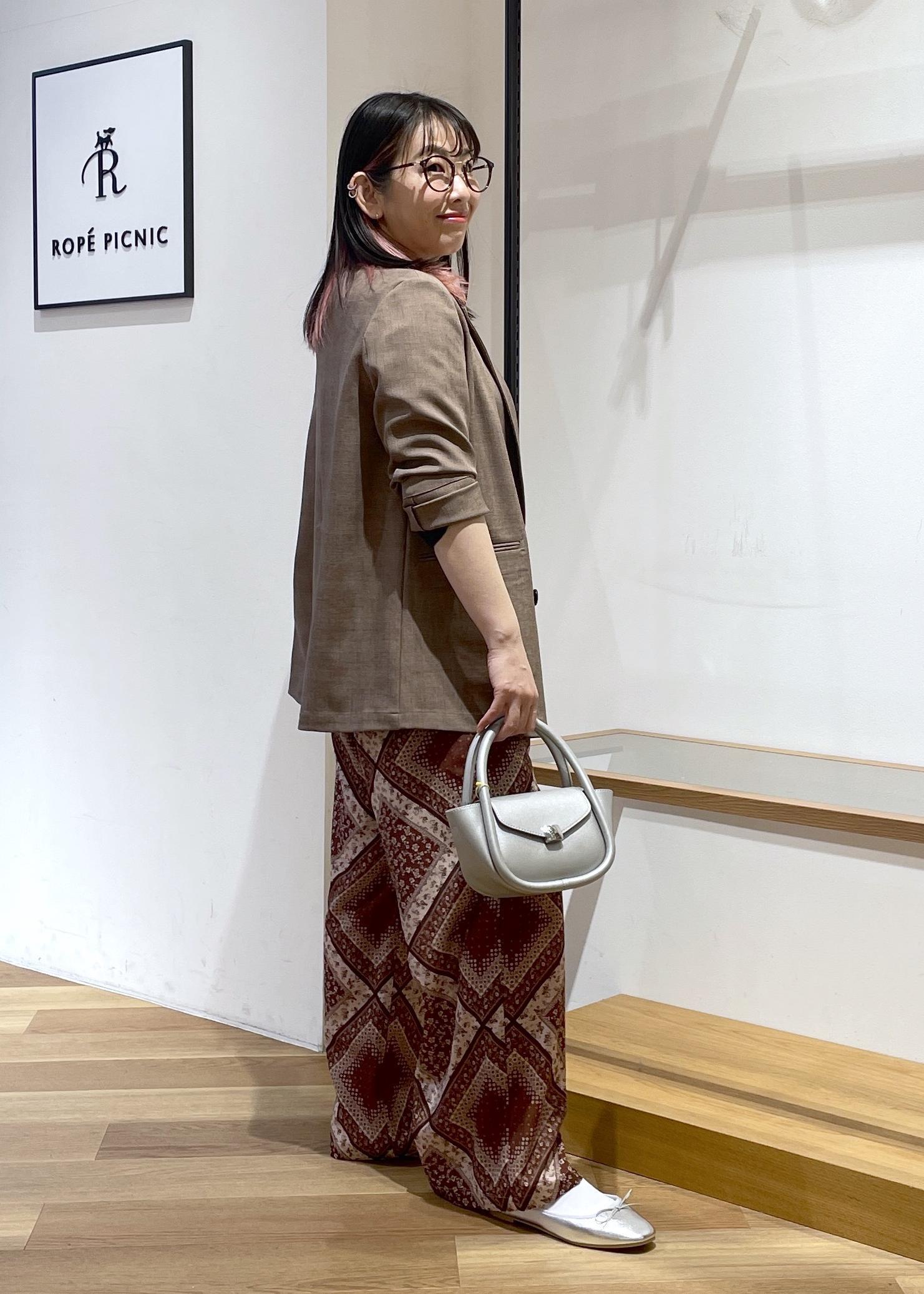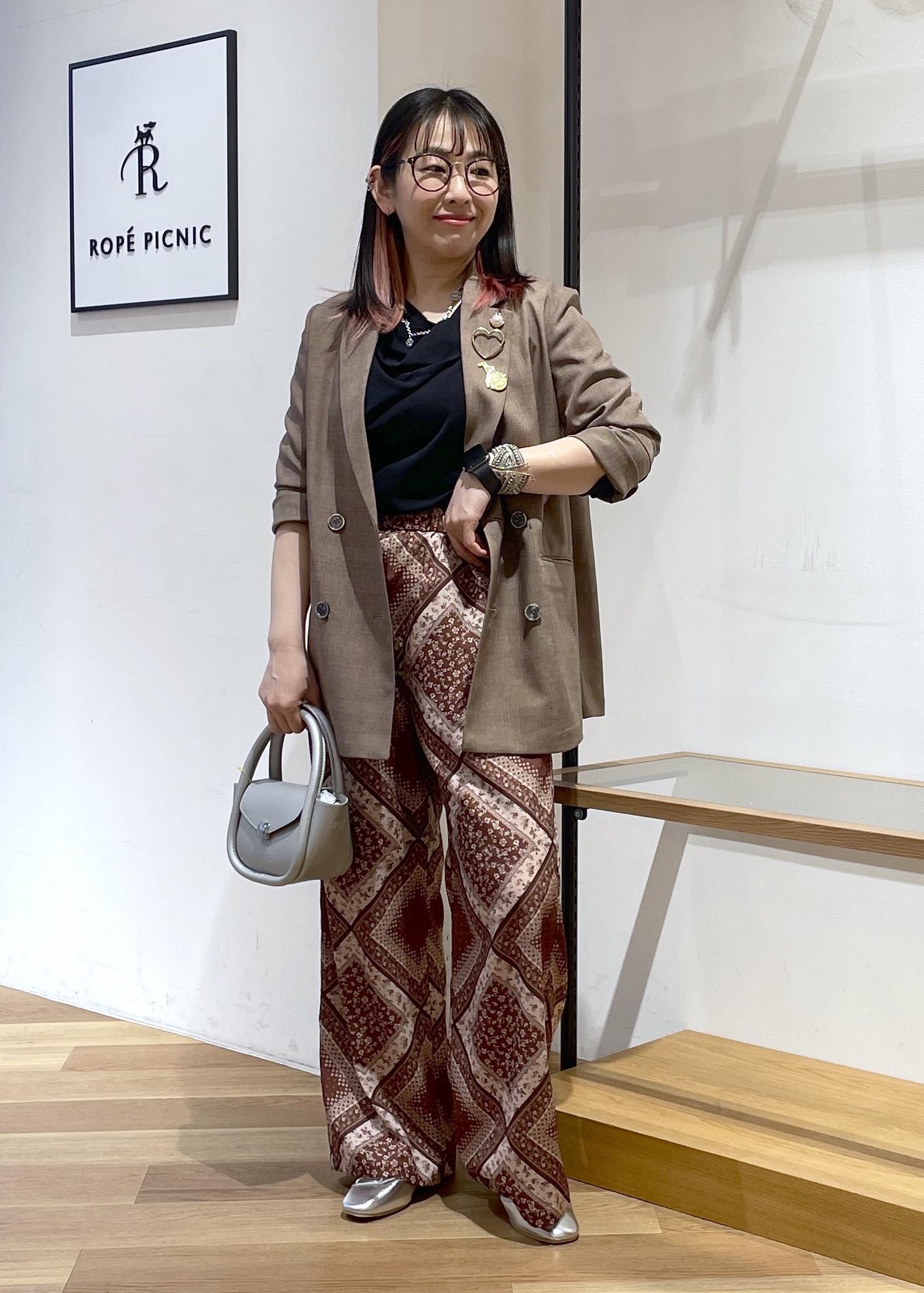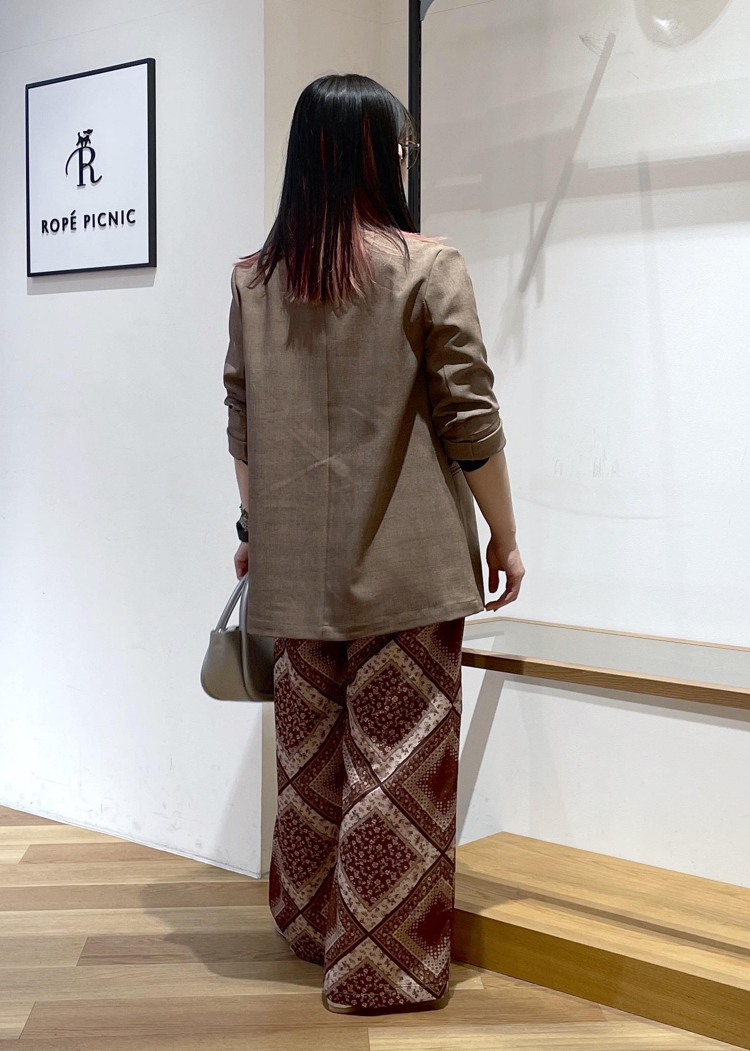 ROPÉ PICNICスカーフ柄イージーパンツブラウン系 / S¥6,996レビューウエストゴムでゆるっとしたシルエットの楽ちんパンツです。シンプルなトップスと合わせるだけで印象的なスタイルができちゃいます。