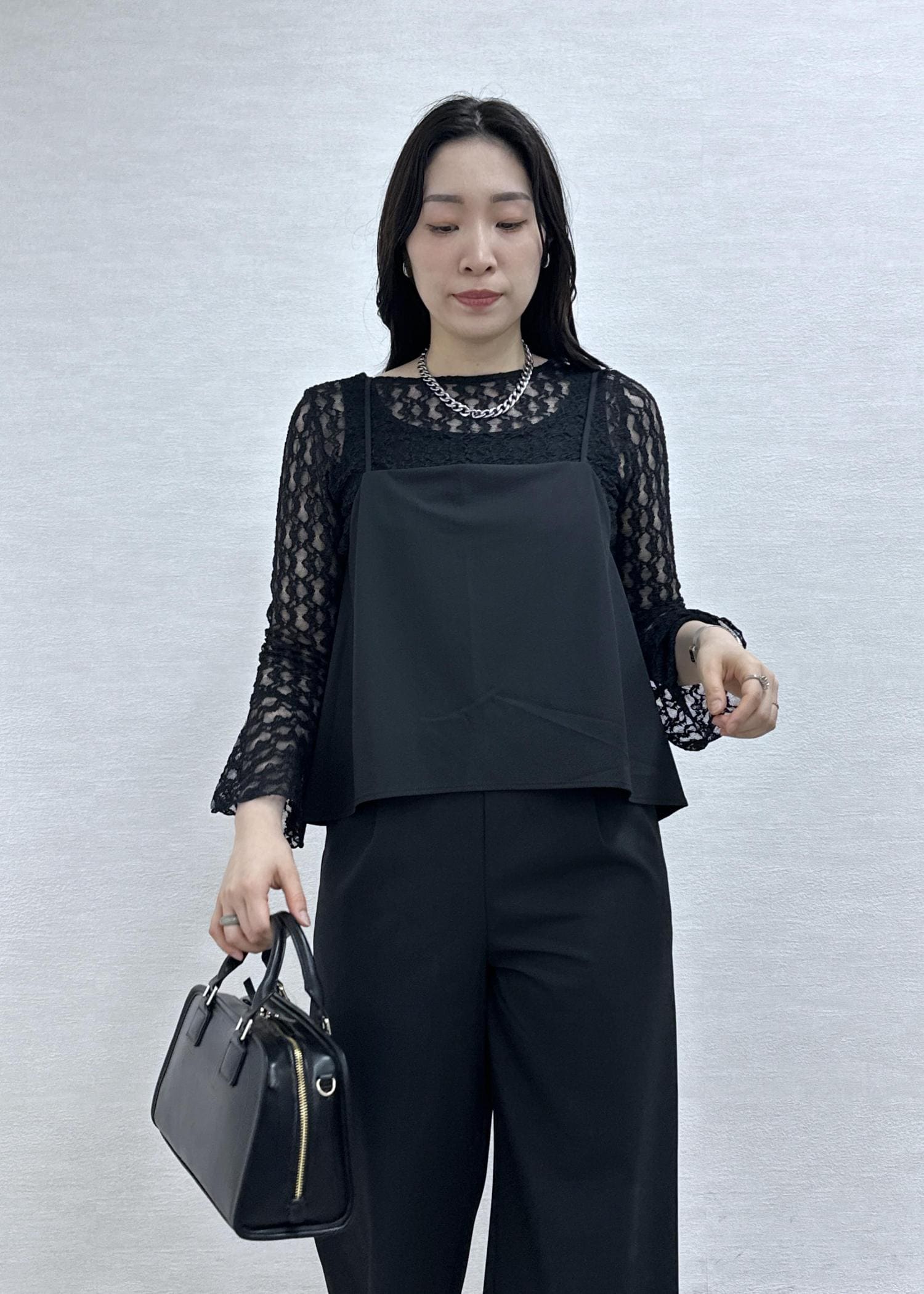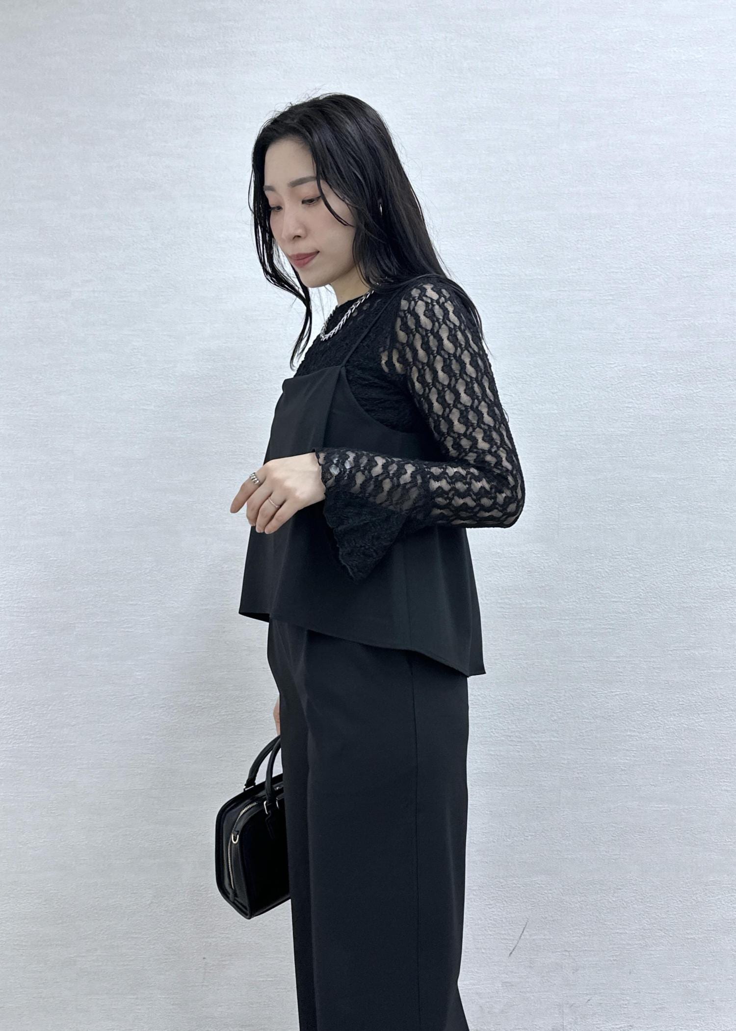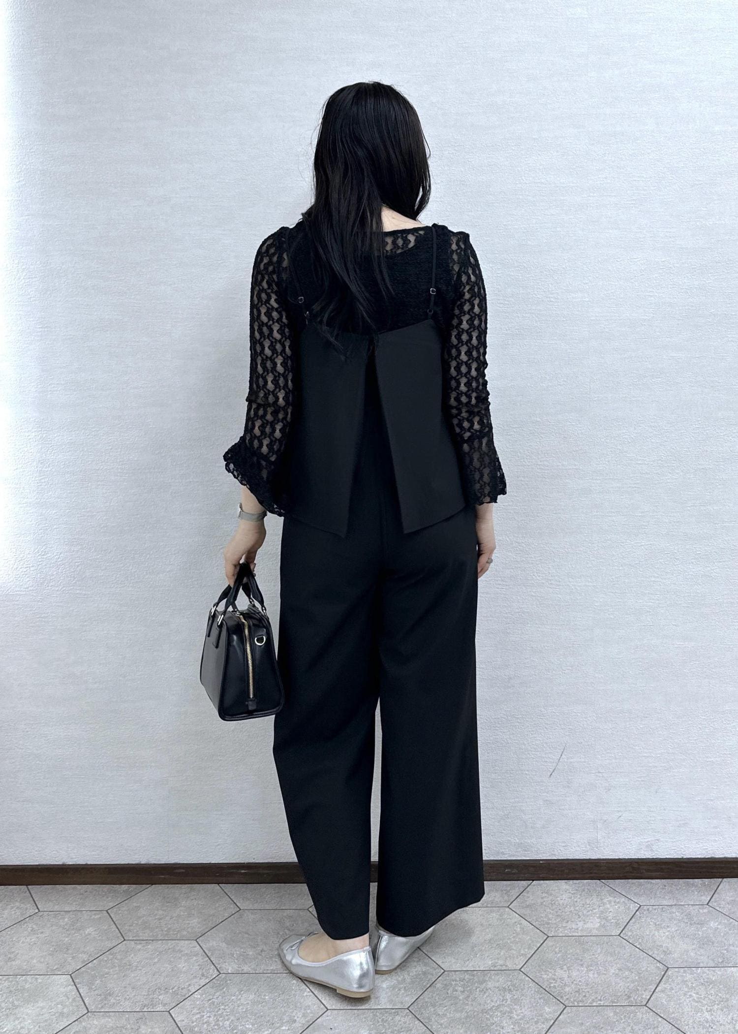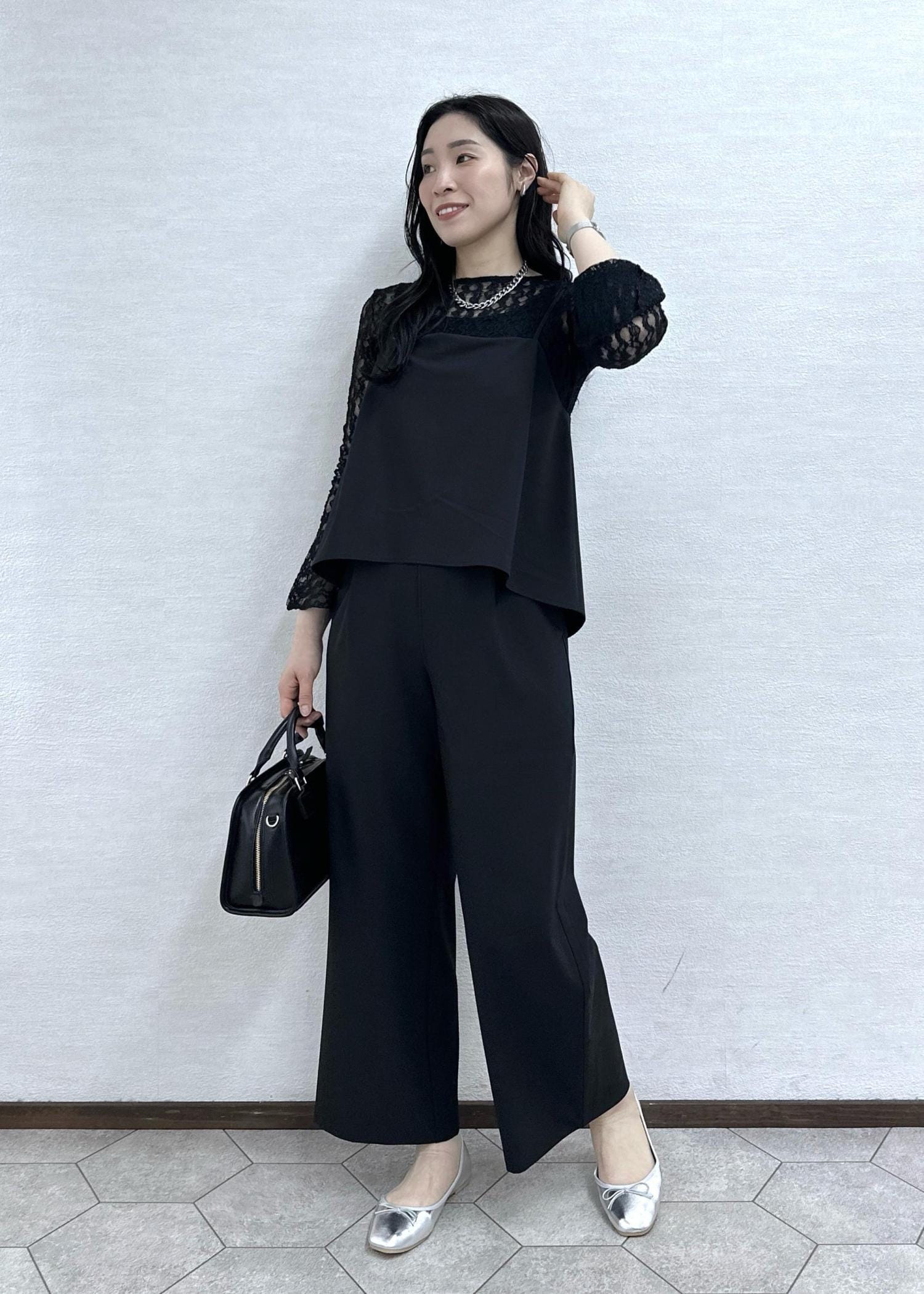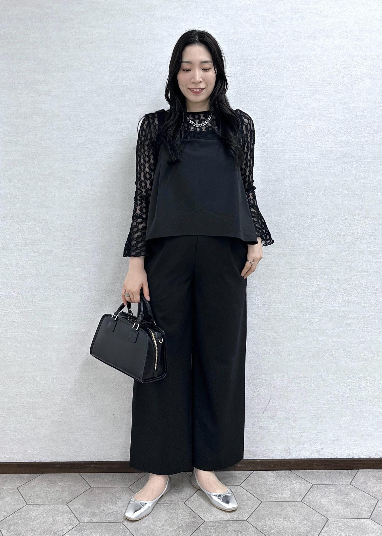 オールインワンにレーストップスを合わせたオケージョンにもオススメのコーデ。