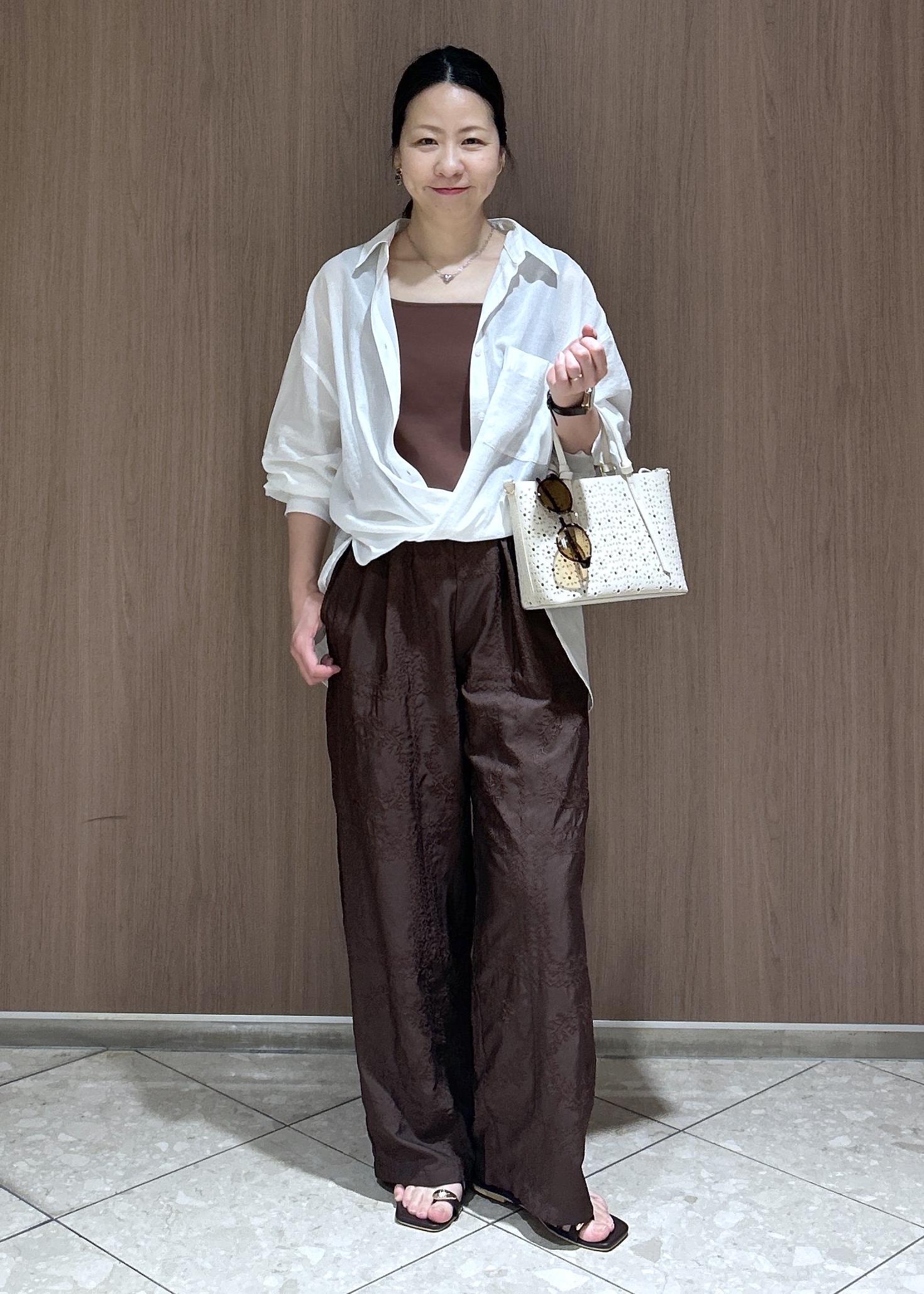 2BUY10%OFFROPÉ PICNICスクエア刺繍イージーワイドパンツダークブラウン / S¥6,996レビュー広がりすぎないスッキリワイドなシルエットです。素材も軽やかで涼しく着用できます。着丈はぺたんこサンダルだとすれるくらいの長さです。