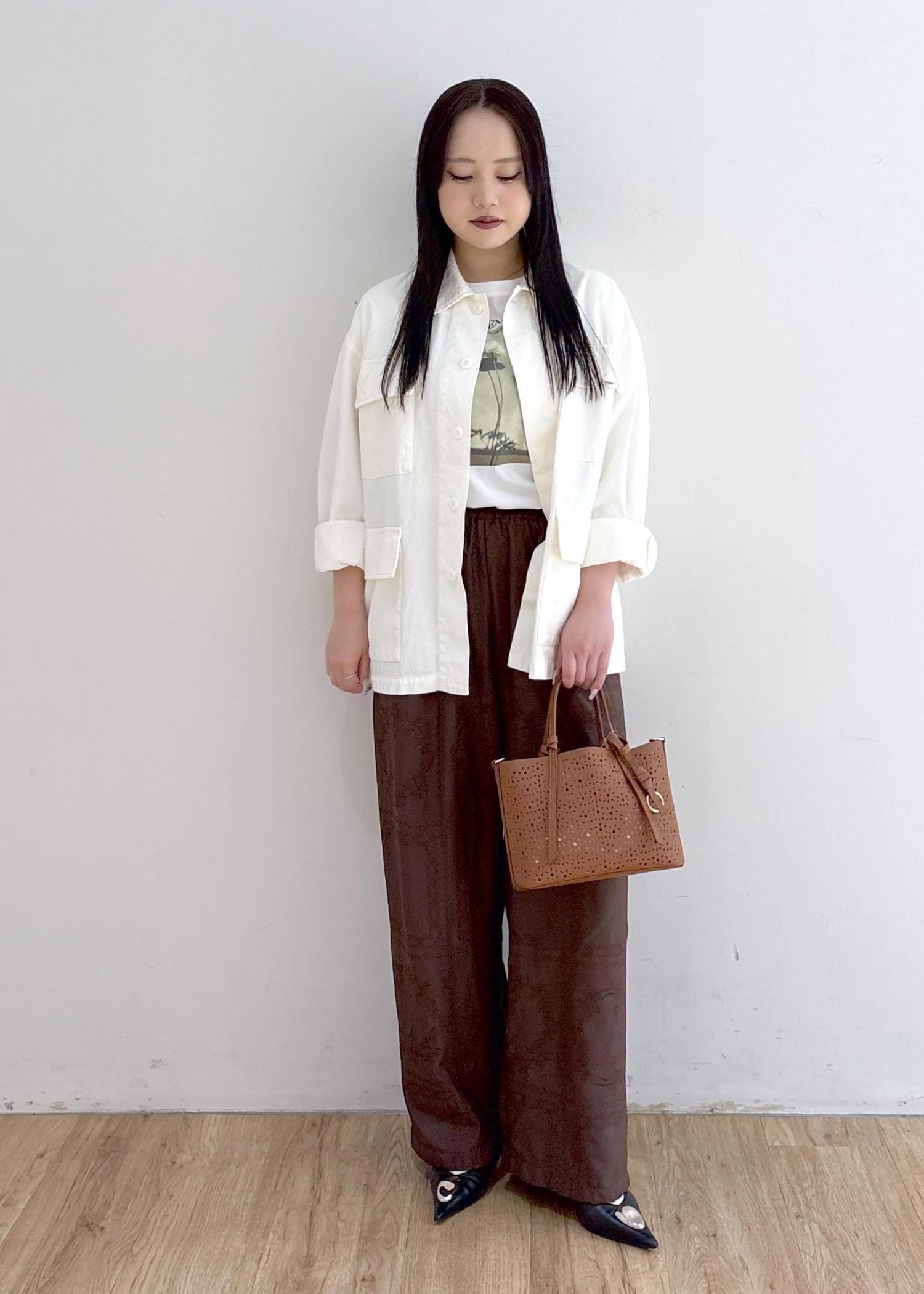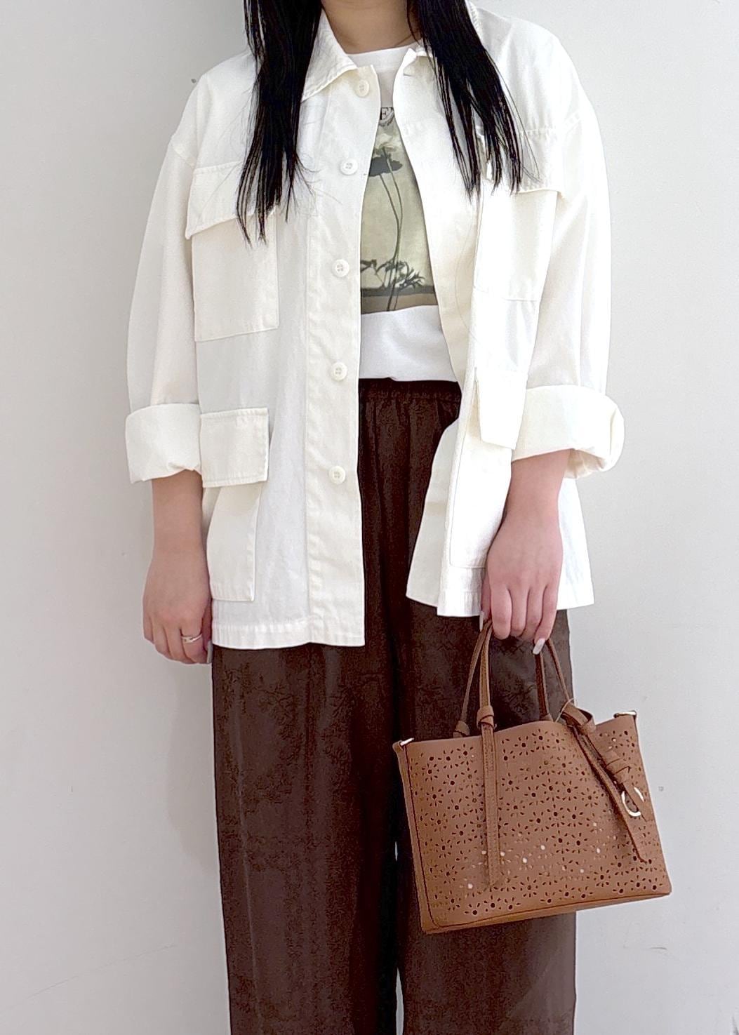 ミリタリーブルゾンをレースパンツで合わさて春らしさと夏らしさもあるスタイリングにしました♩ 半袖Tシャツと合わせて上からブルゾンを羽織ることで体温調整もしやすい◎