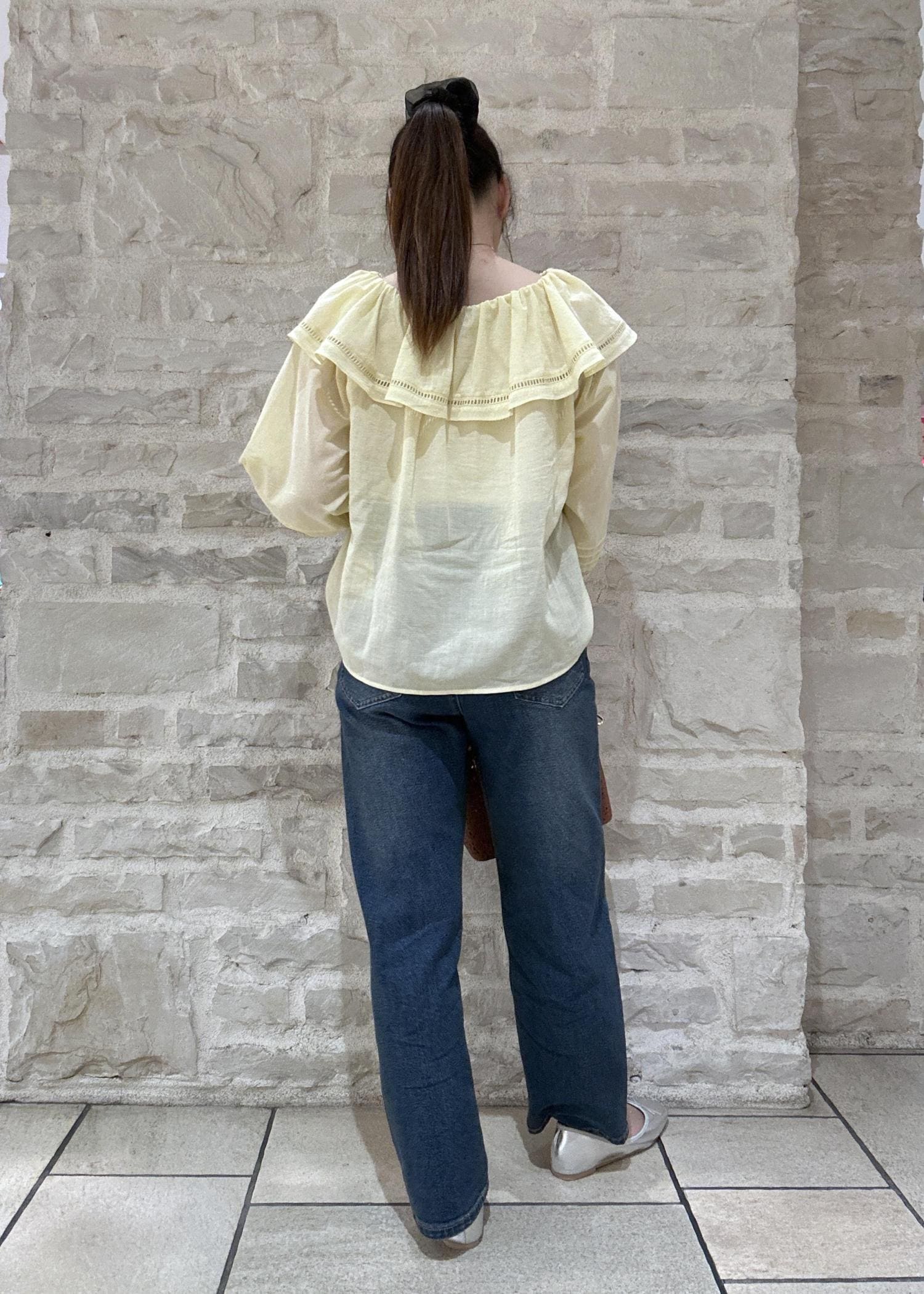 ROPÉ PICNICお着軽シャツシリーズ レース使い2WAYオフショルシアーブラウス/接触冷感・通気性イエロー / F¥5,995レビュー首元のフリルがアクセントに♪
