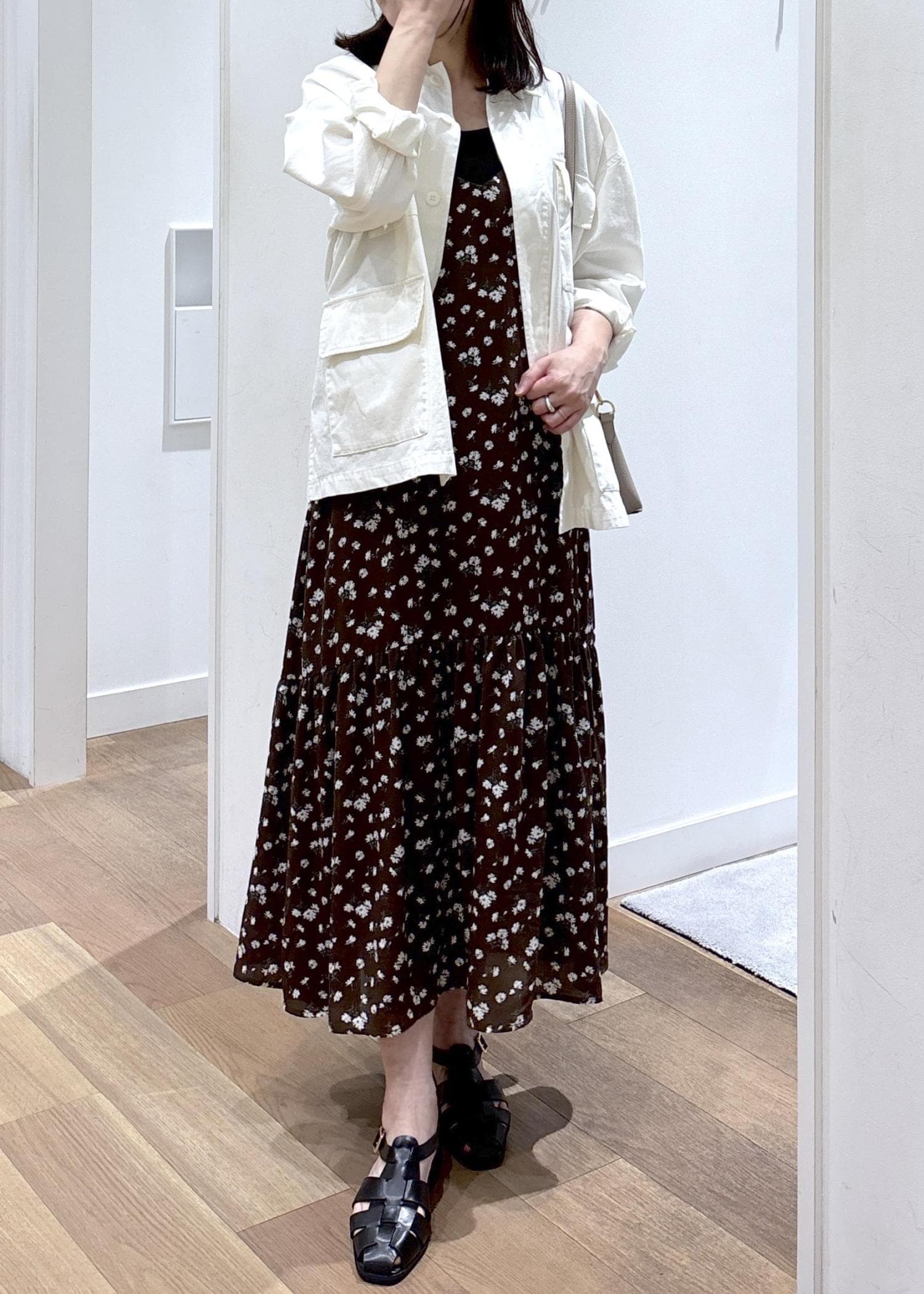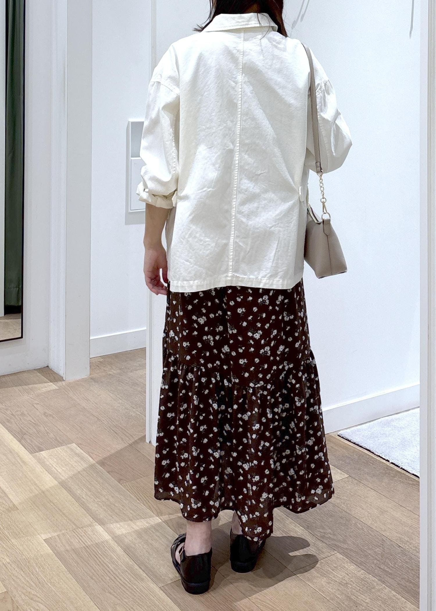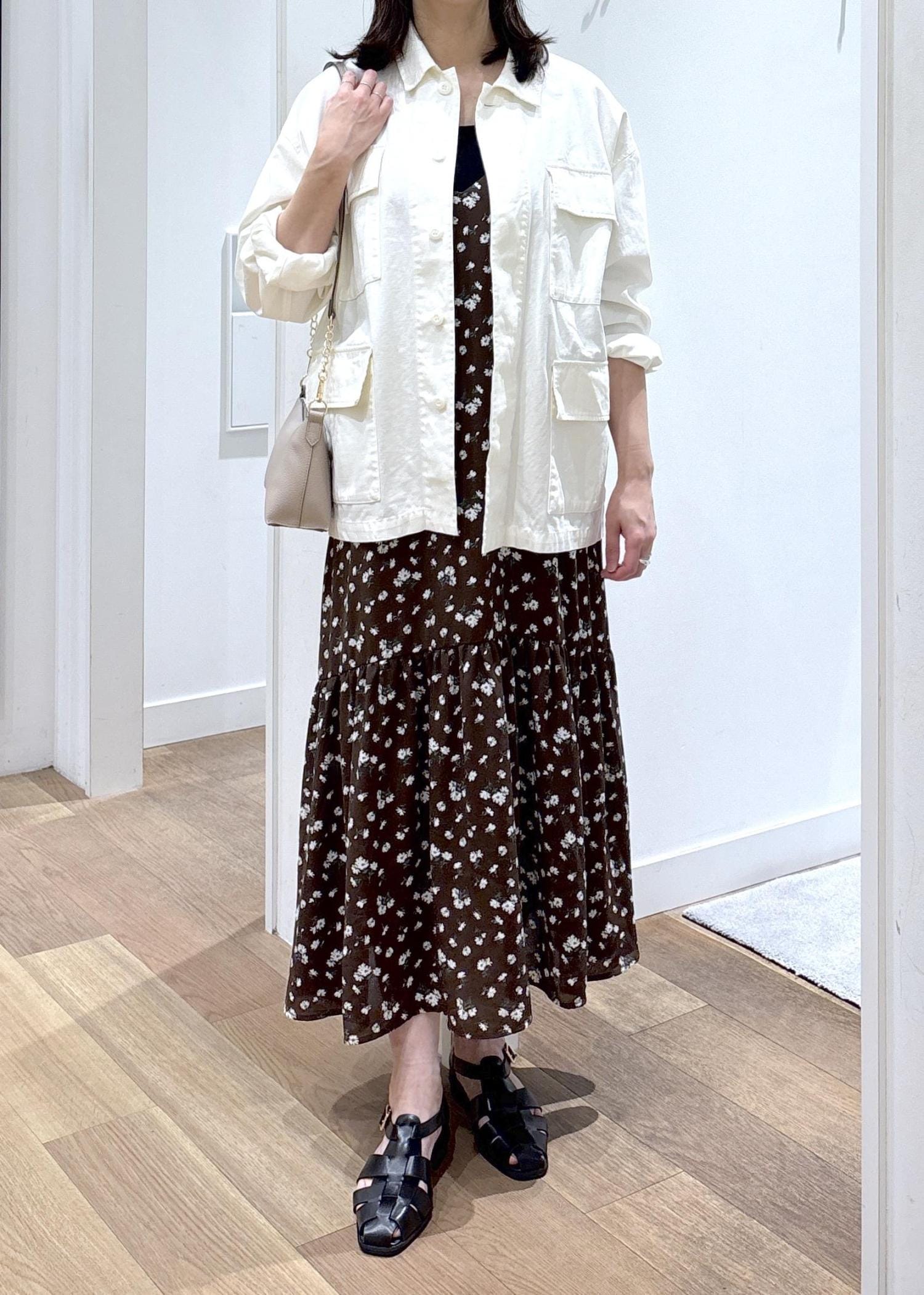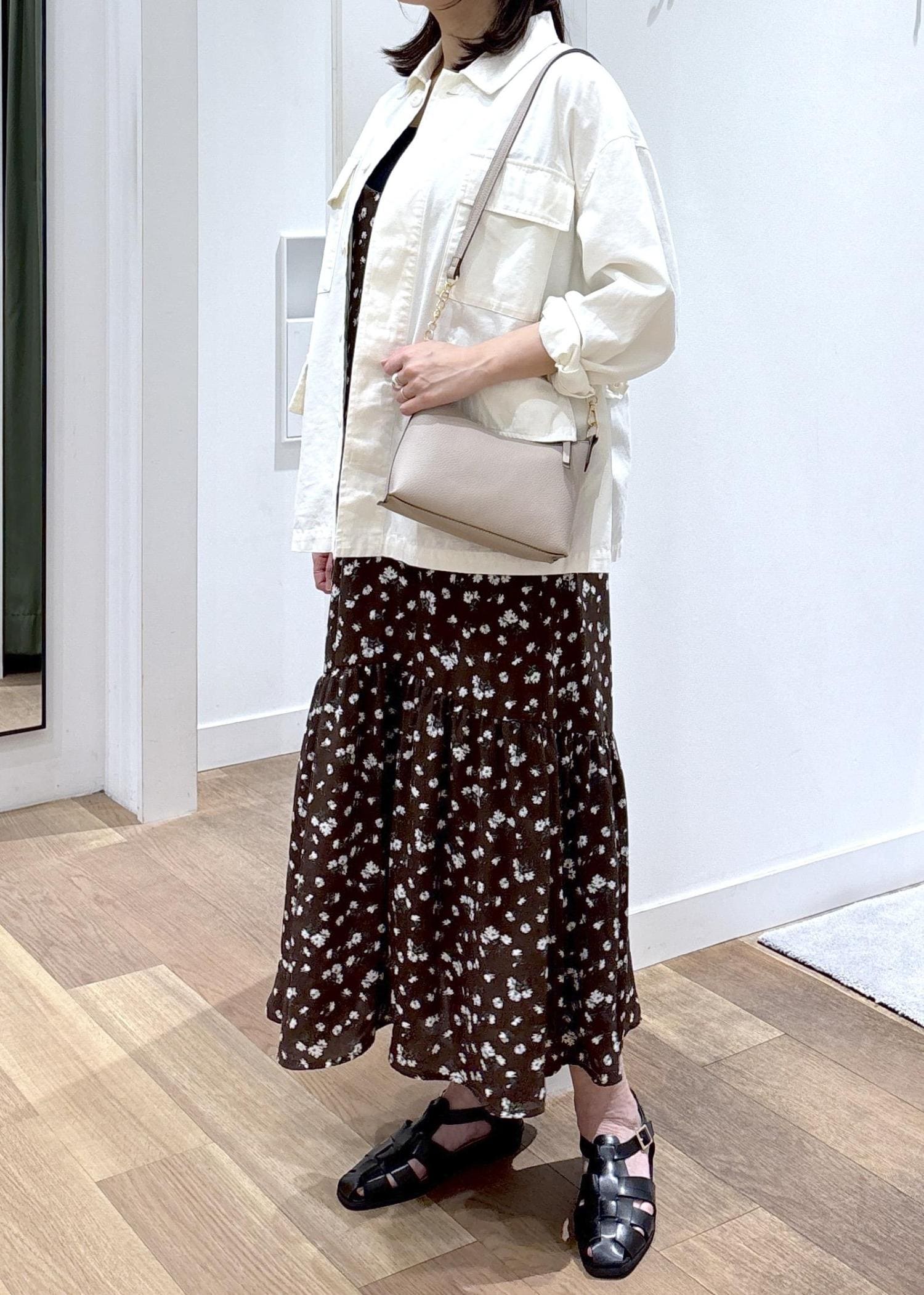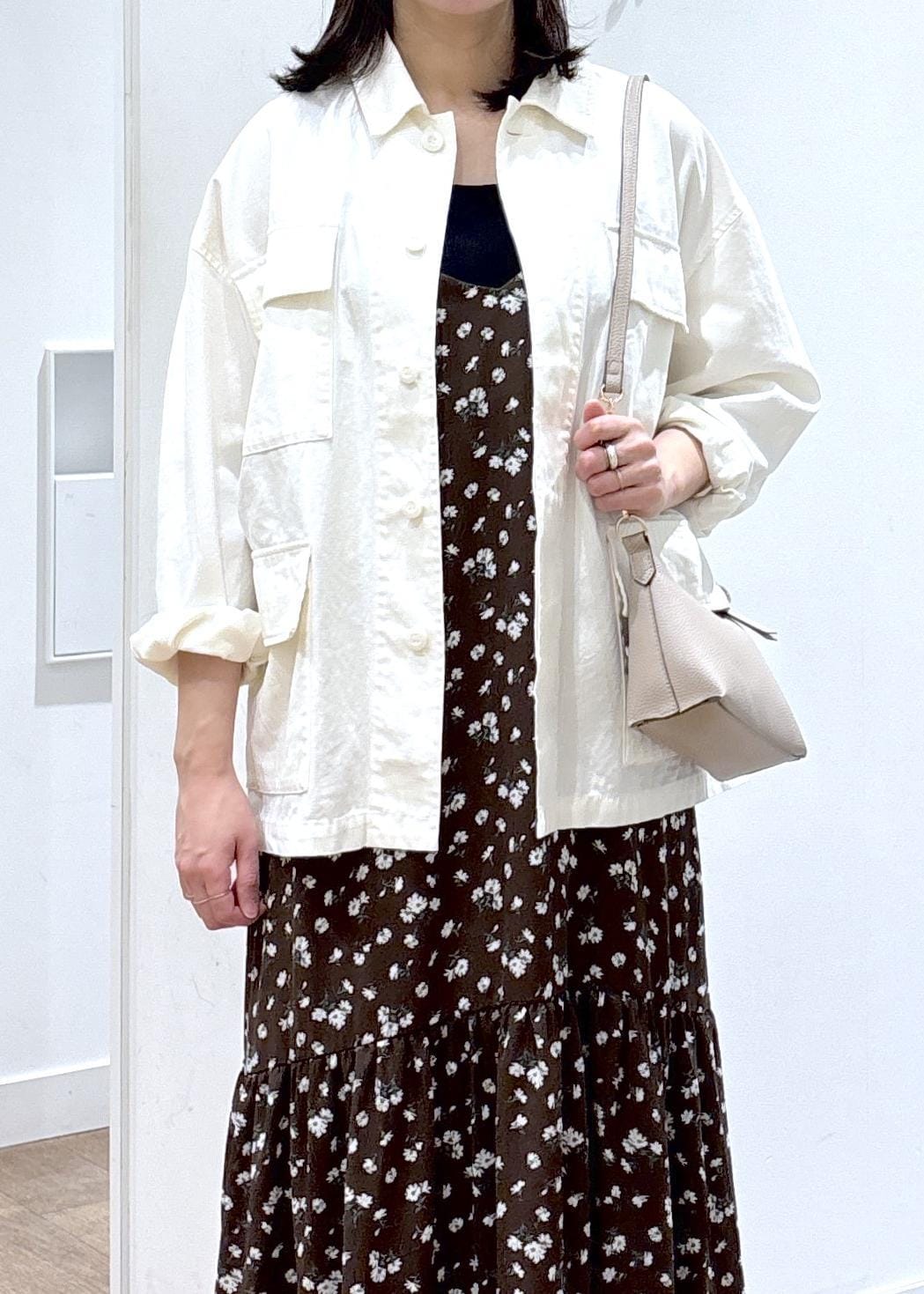 花柄と合わせても甘すぎず、大人な印象で