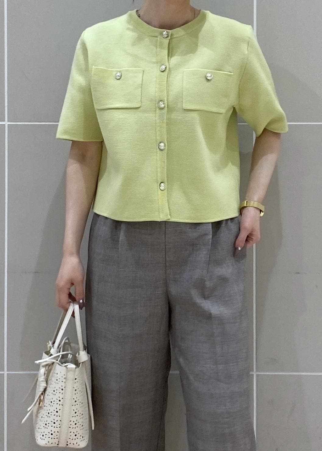 2BUY10%OFFROPÉ PICNICミラノリブ金ボタン半袖カーディガンキミドリ / F¥5,489レビュー程よくゆったりとしています。