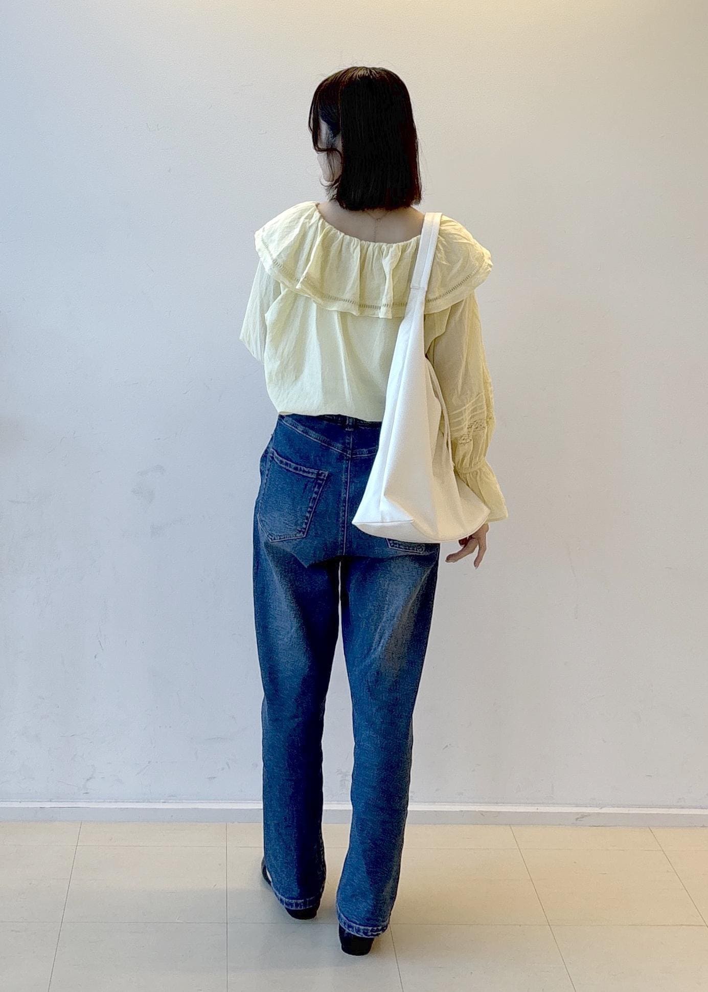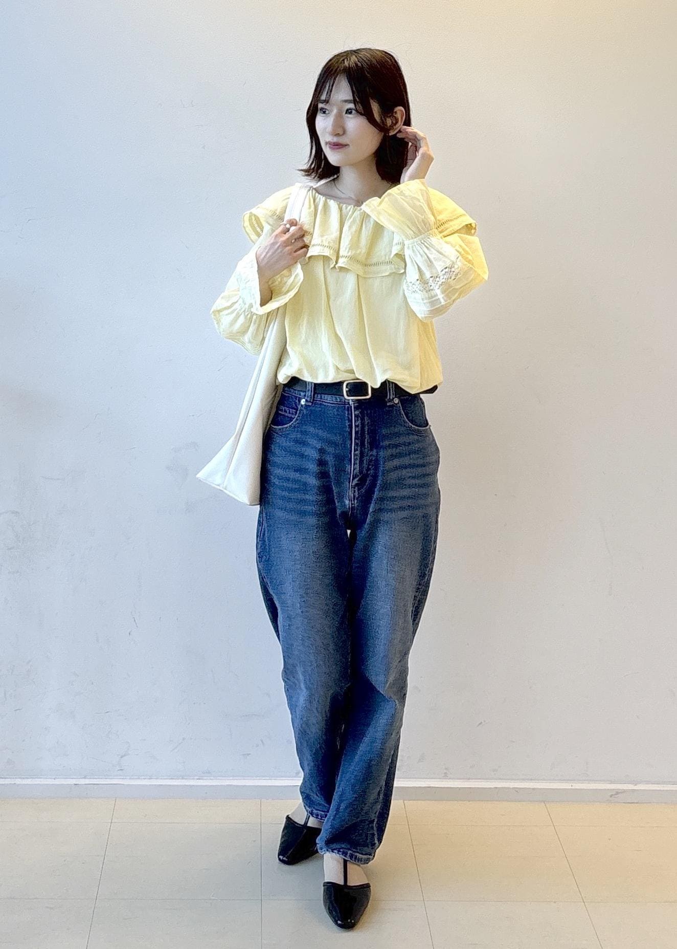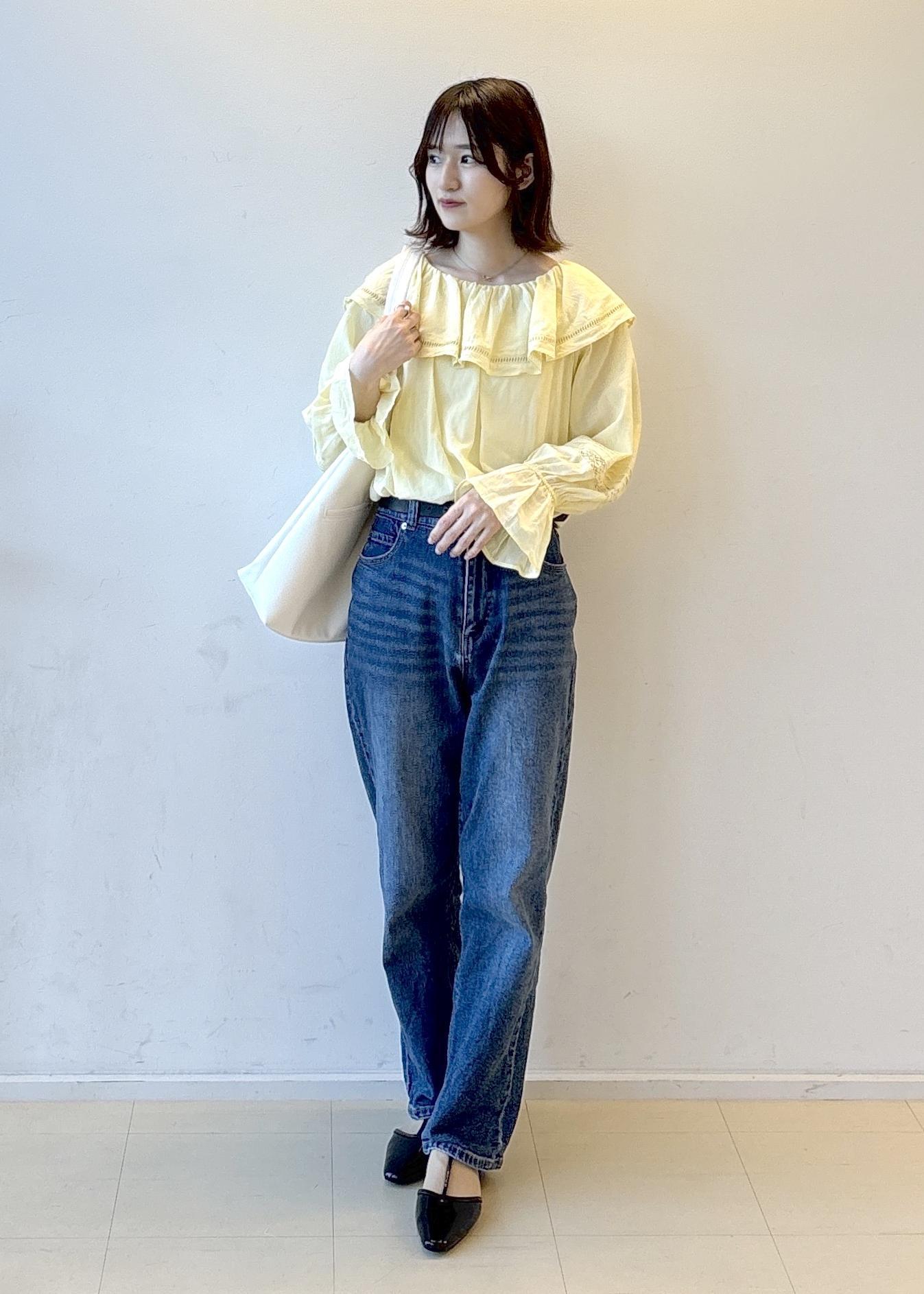 キレイめなデニムを合わせているのでカジュアルになりすぎず女性らしさも意識してます♡