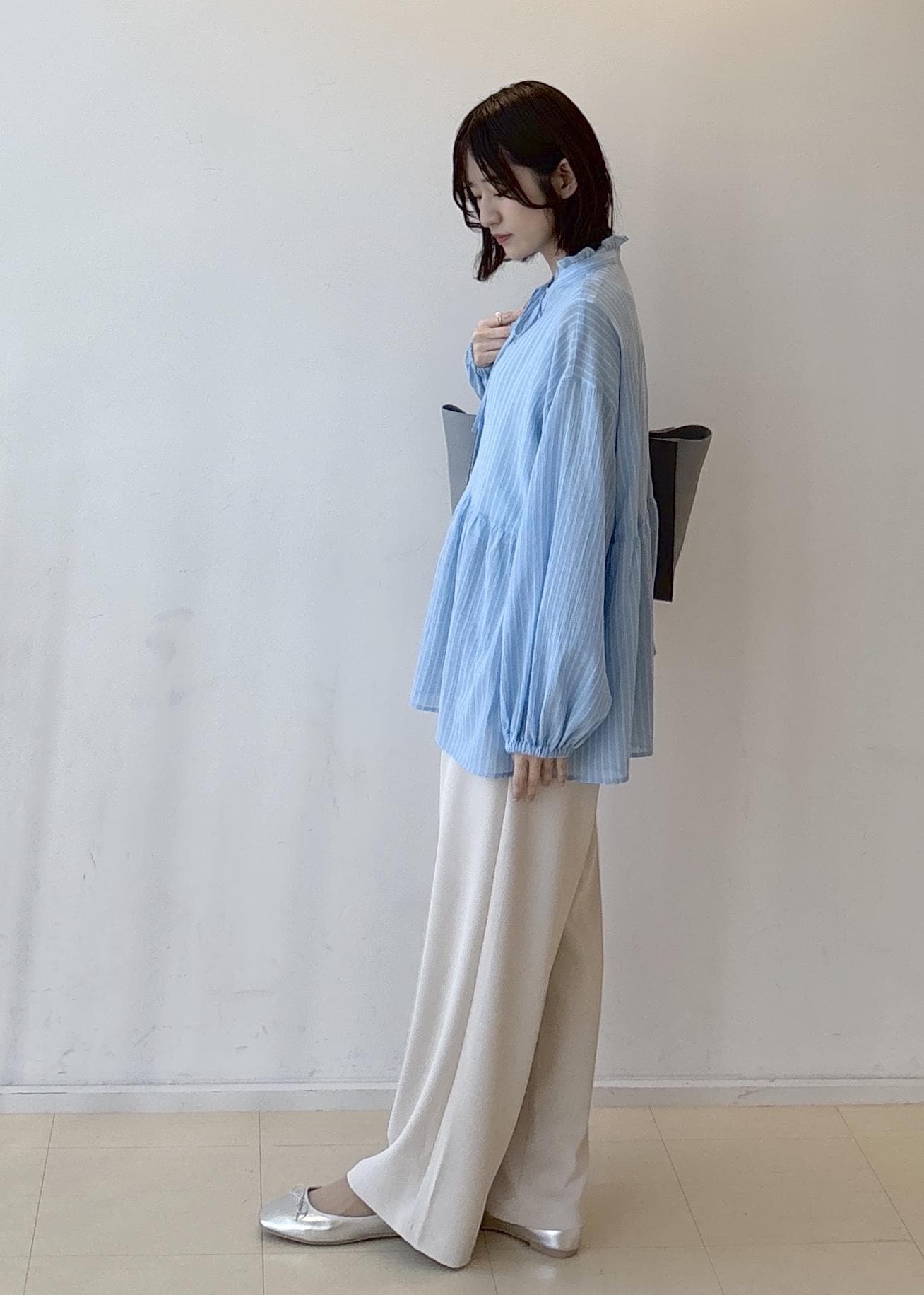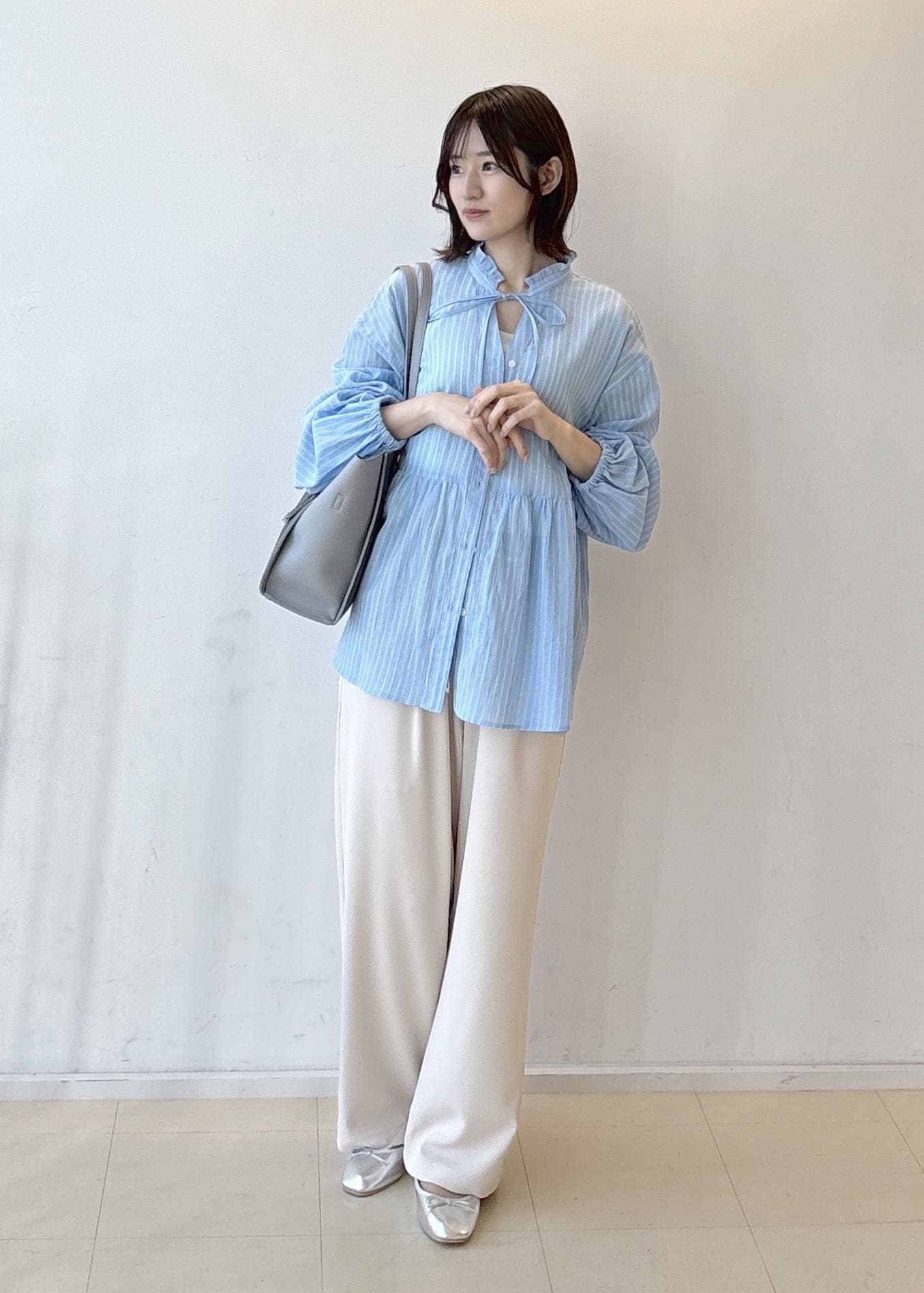 全体的にサラッとした生地感で統一して、涼しげに、夏までお使いいただけるコーデです!