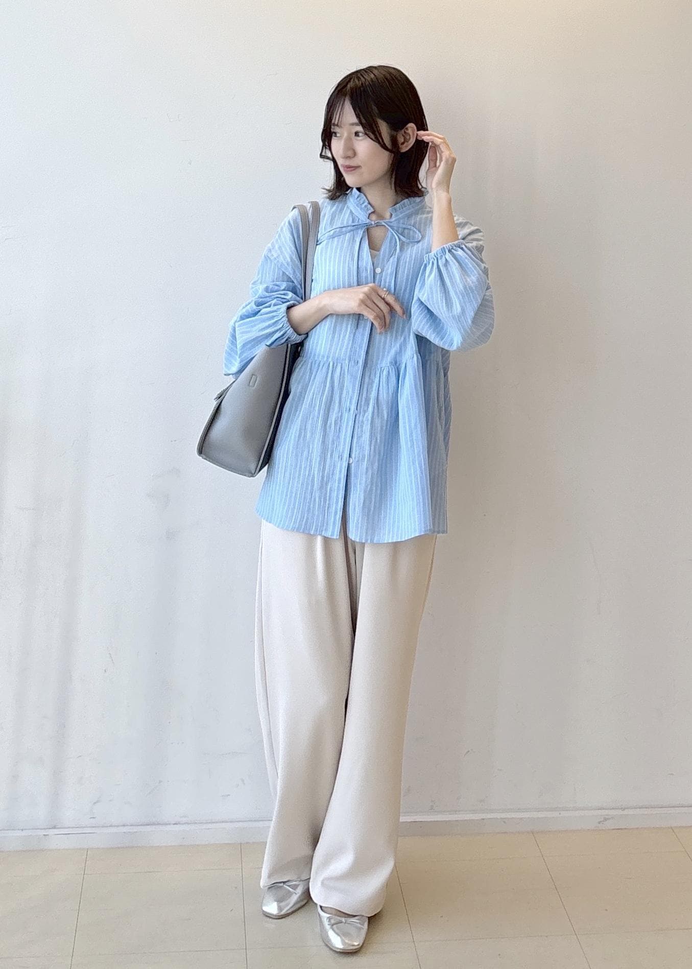 今回はブルーと白を用いた爽やかな春コーデを組んでみました!リボン結びで胸元に可愛らしさをプラスして女性らしさも意識しました♡