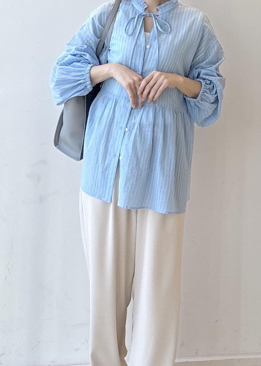 透け感があり、インナーを変えて夏までお使いいただけます♡リボンを結んでもそのままたらしても可愛いので気分によって着こなし方を変えていただけます! -