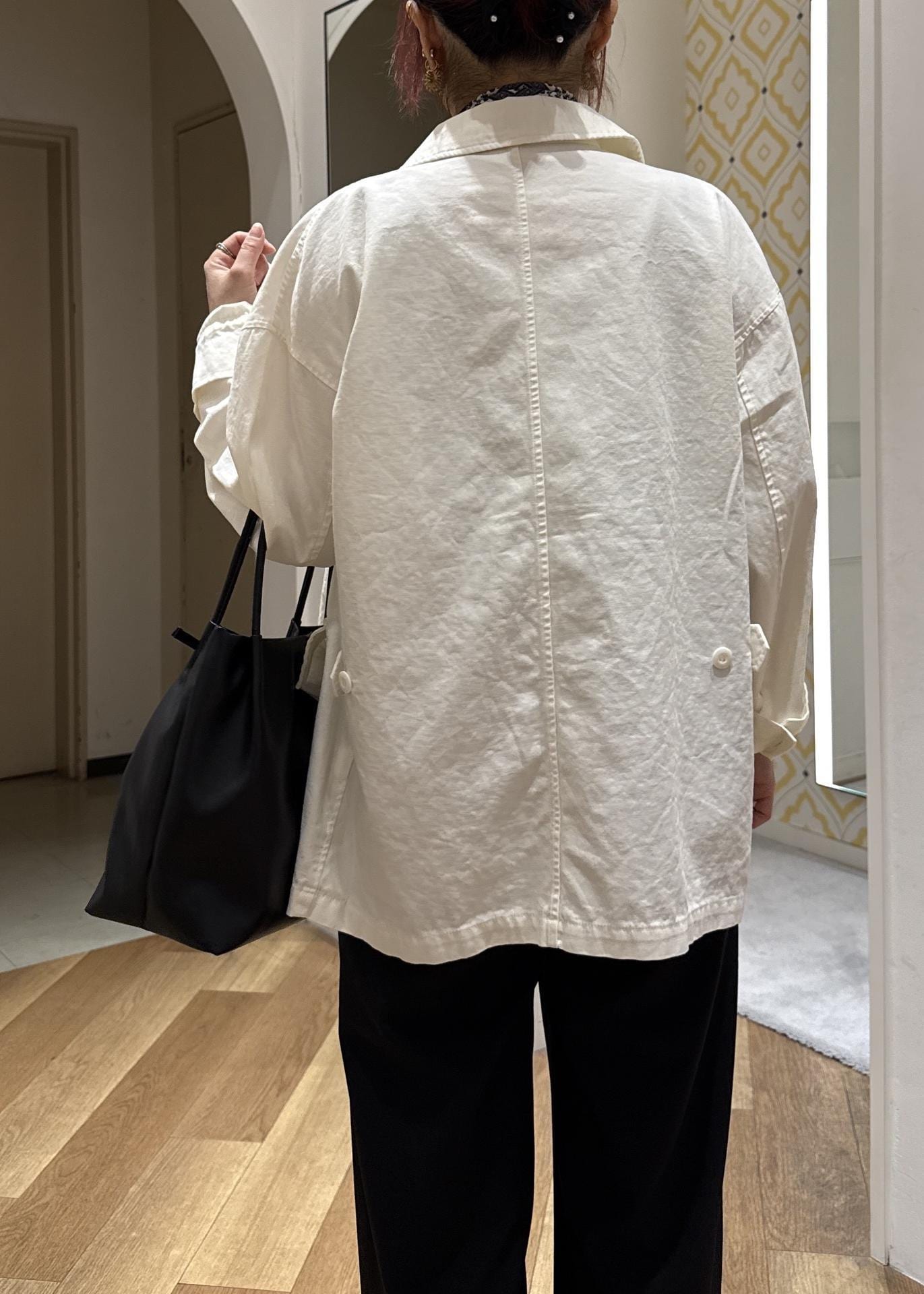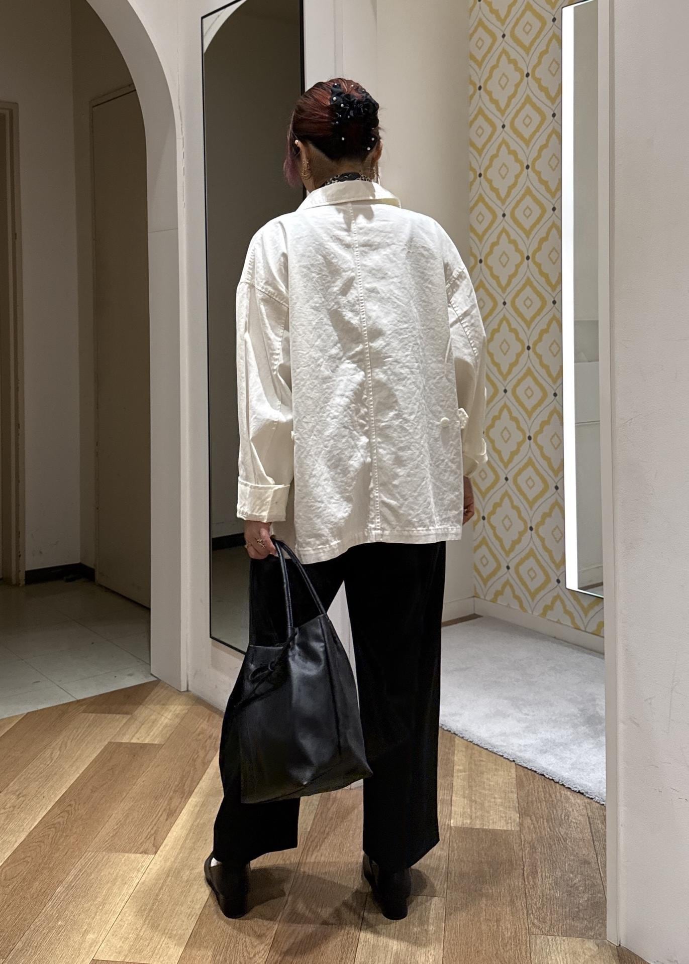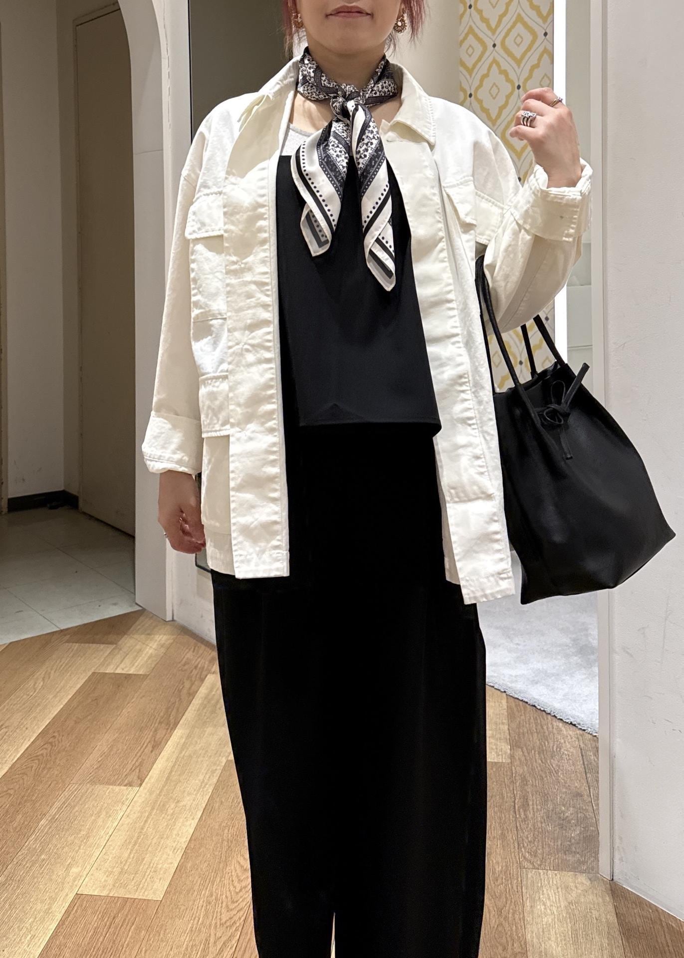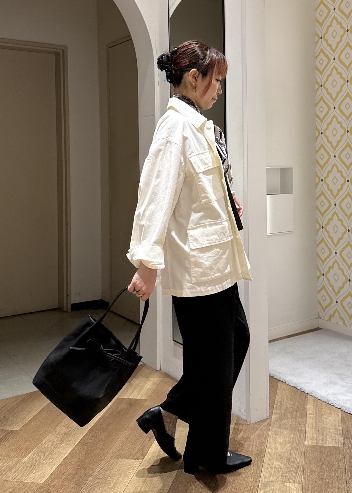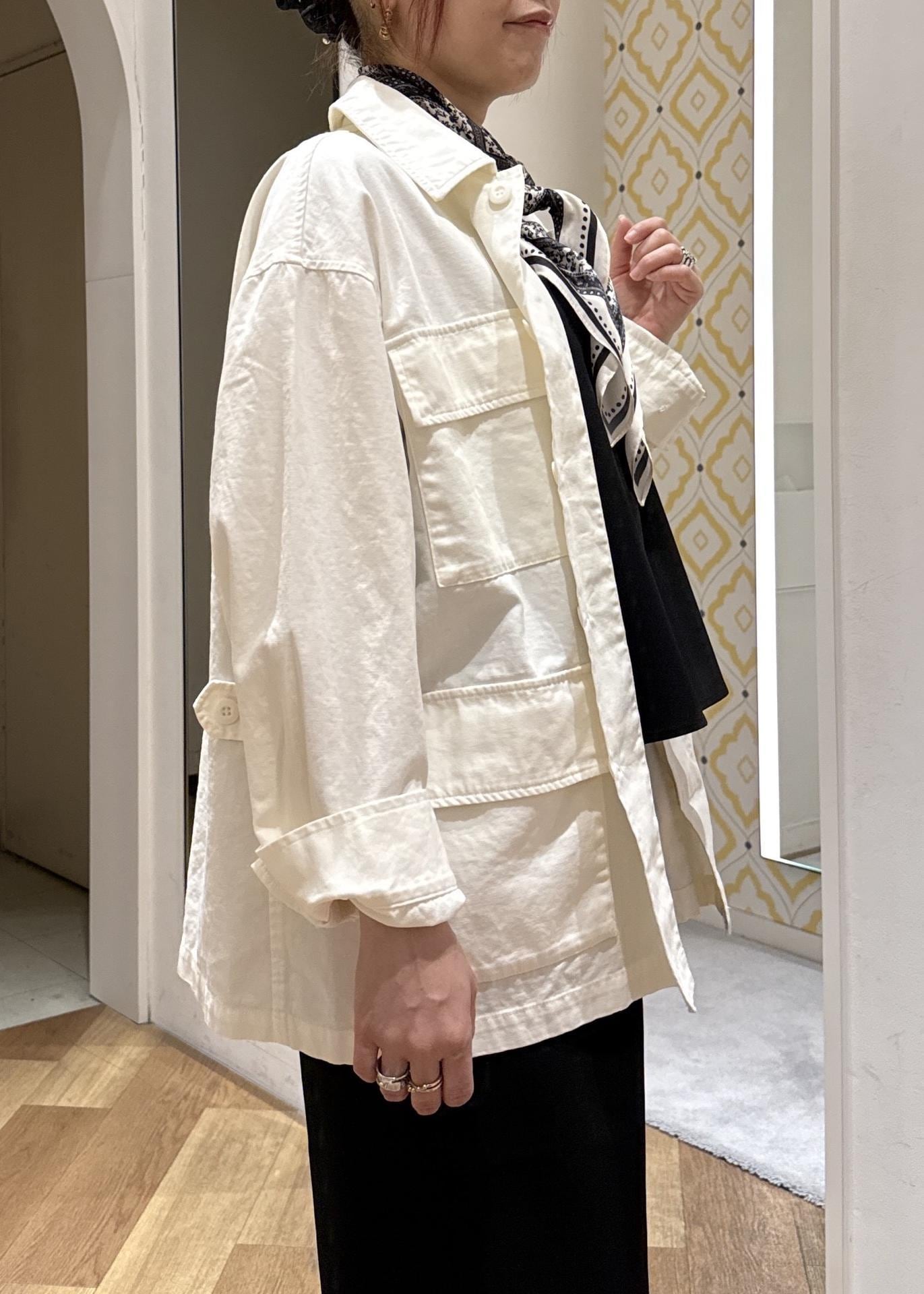白いミリタリージャケットを羽織って、抜け感のある上品スタイルに!