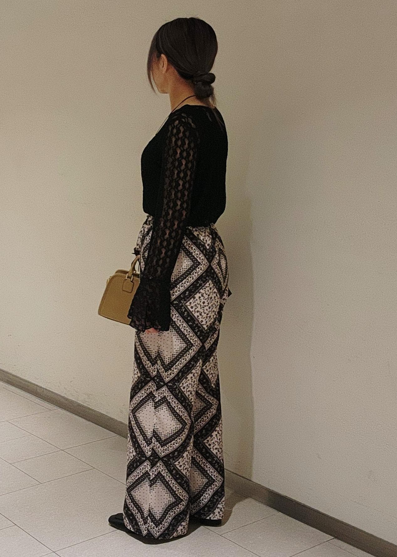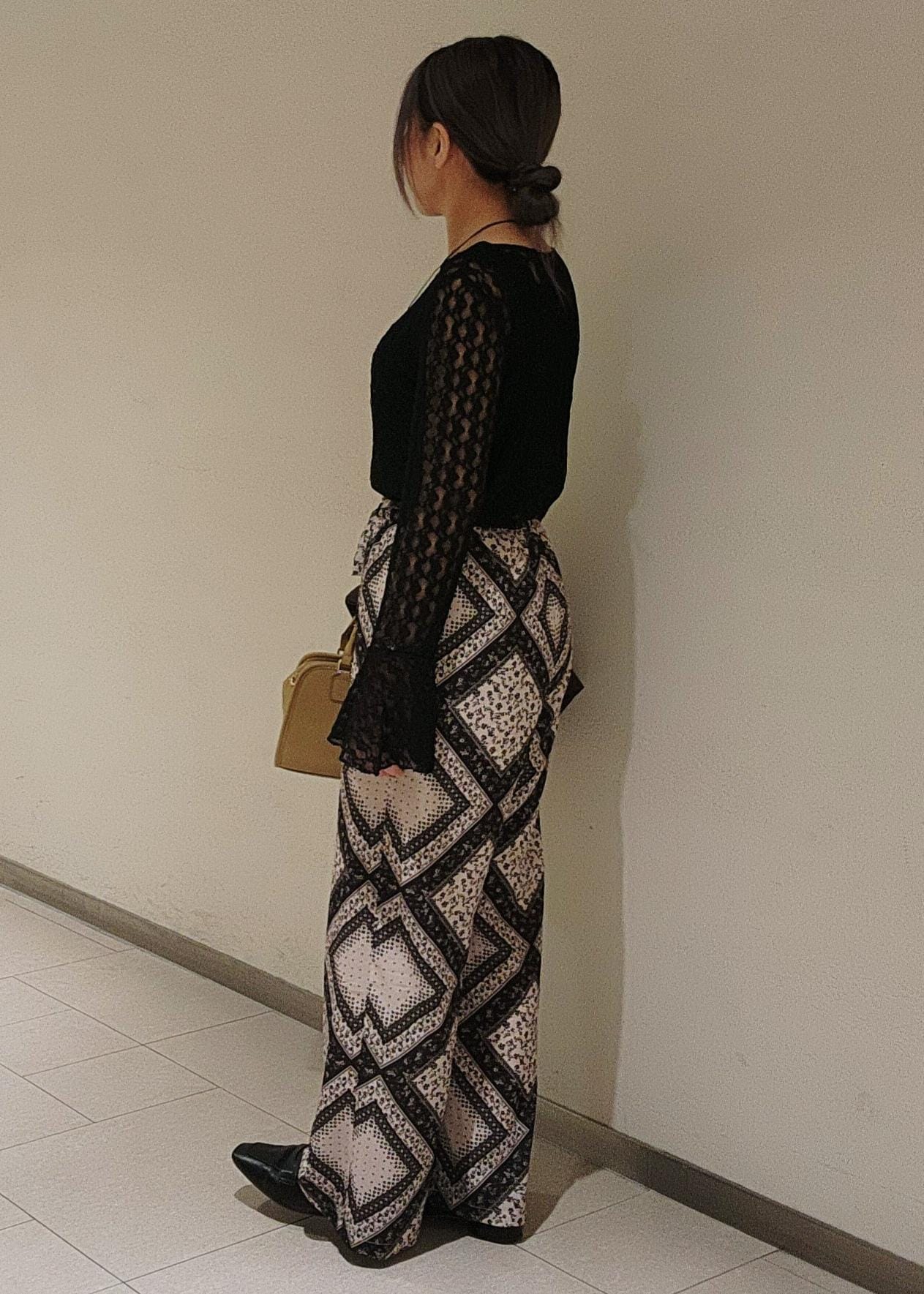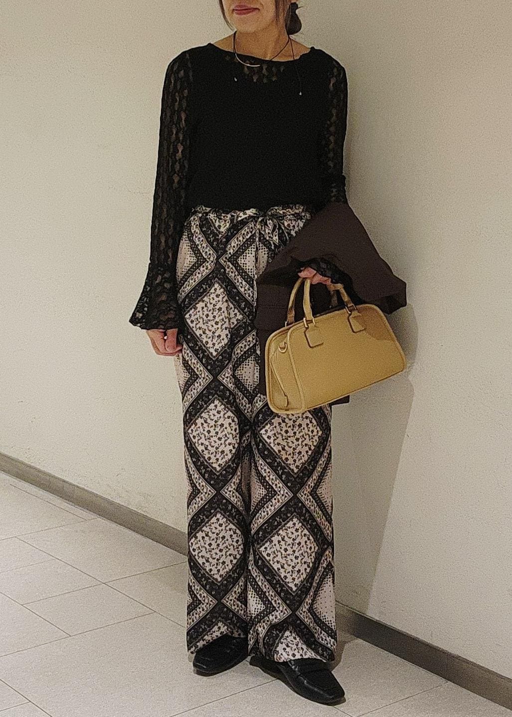 2BUY10%OFFROPÉ PICNICスカーフ柄イージーパンツブラック / S¥6,996レビュー主役級!柄ボトムス。