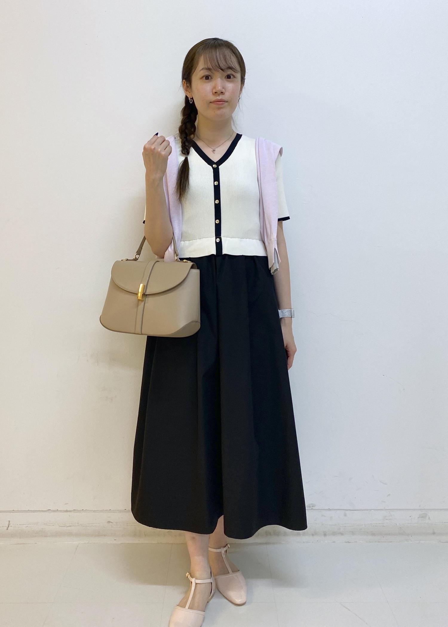 そのまま着てもかわいいですが、今回はカーディガンを肩にかけておしゃれにアレンジ♪