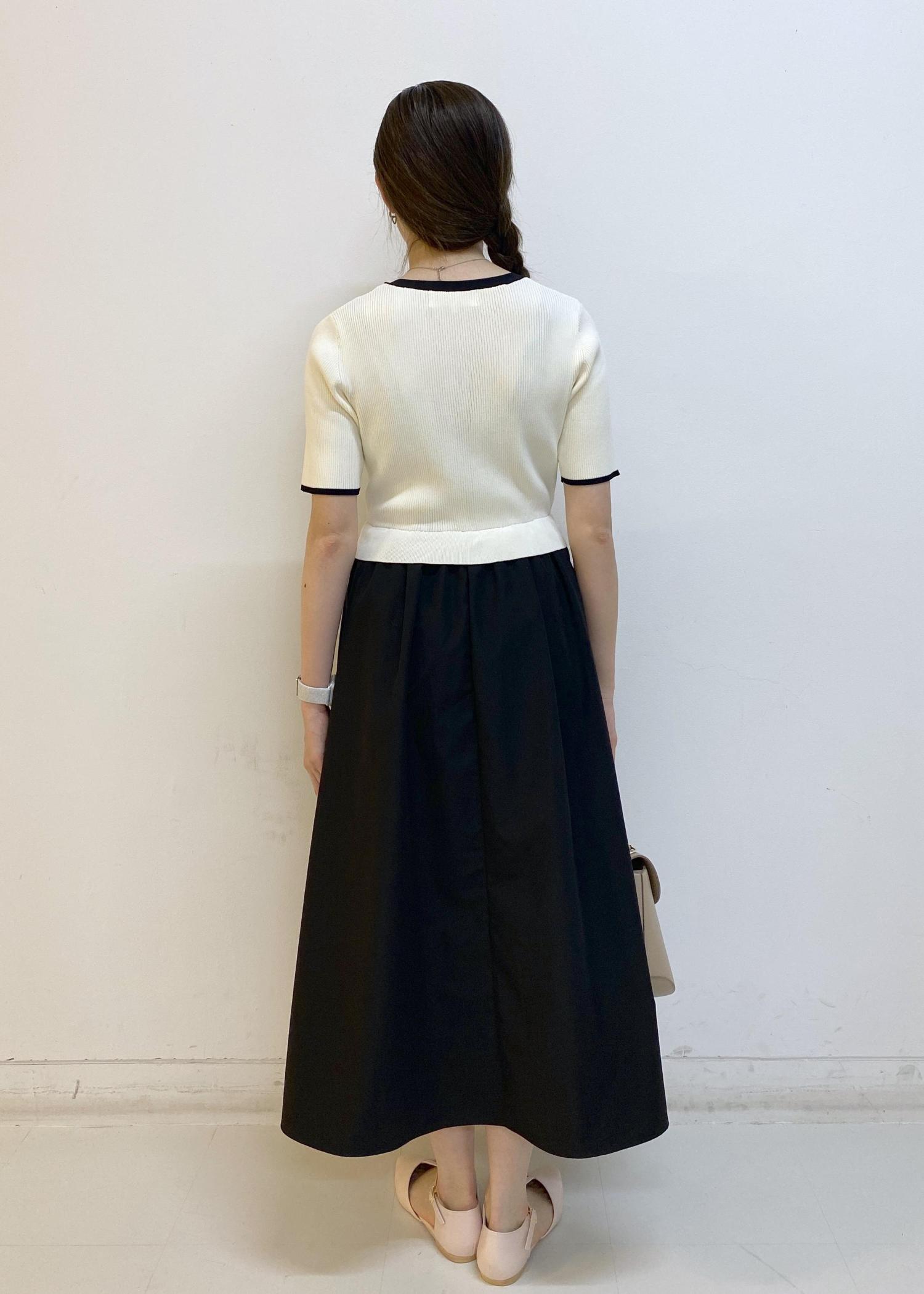 ROPÉ PICNICメタル釦布帛ドッキングハーフスリーブニットワンピースキナリ系 / S¥7,491レビュー忙しい朝もこれ1枚でオシャレにきまる!