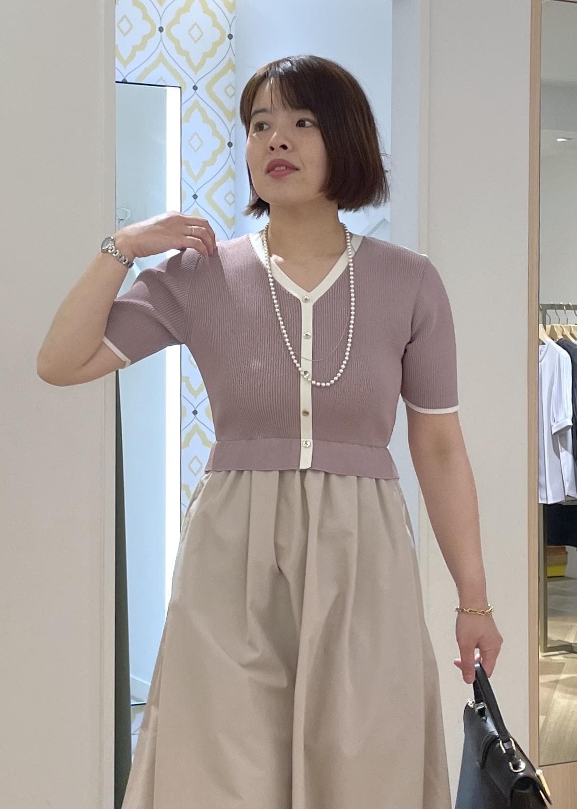 ROPÉ PICNICメタル釦布帛ドッキングハーフスリーブニットワンピースピンク / M¥7,491レビュー身頃はドライタッチなリブニットで、暑い季節でもさらっと着て頂けるワンピースです。程良くフィット感もあります。スカート部分はハリのある素材感でフレアのラインがきれいなシルエットです。透け感も気にせず着用できます。