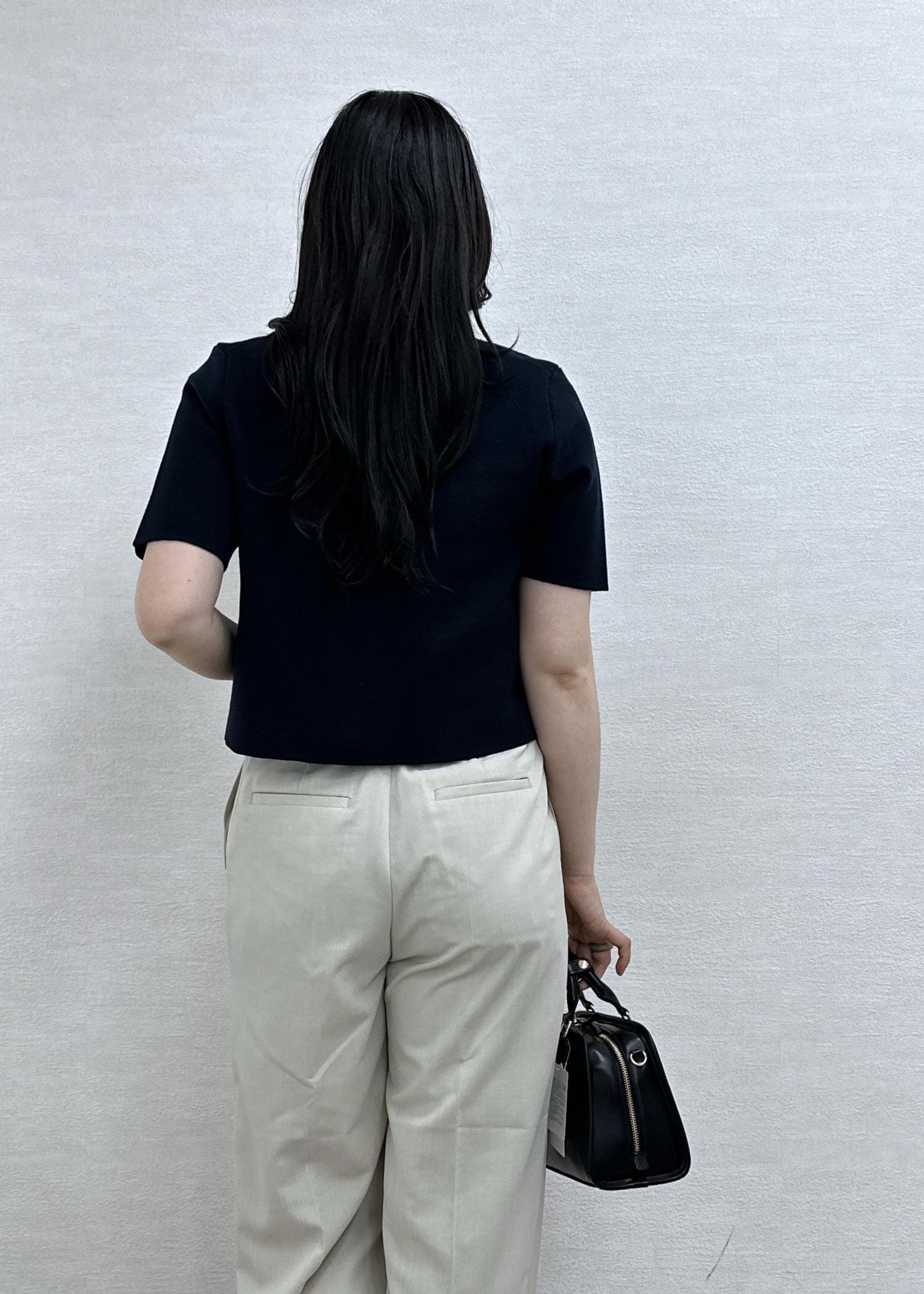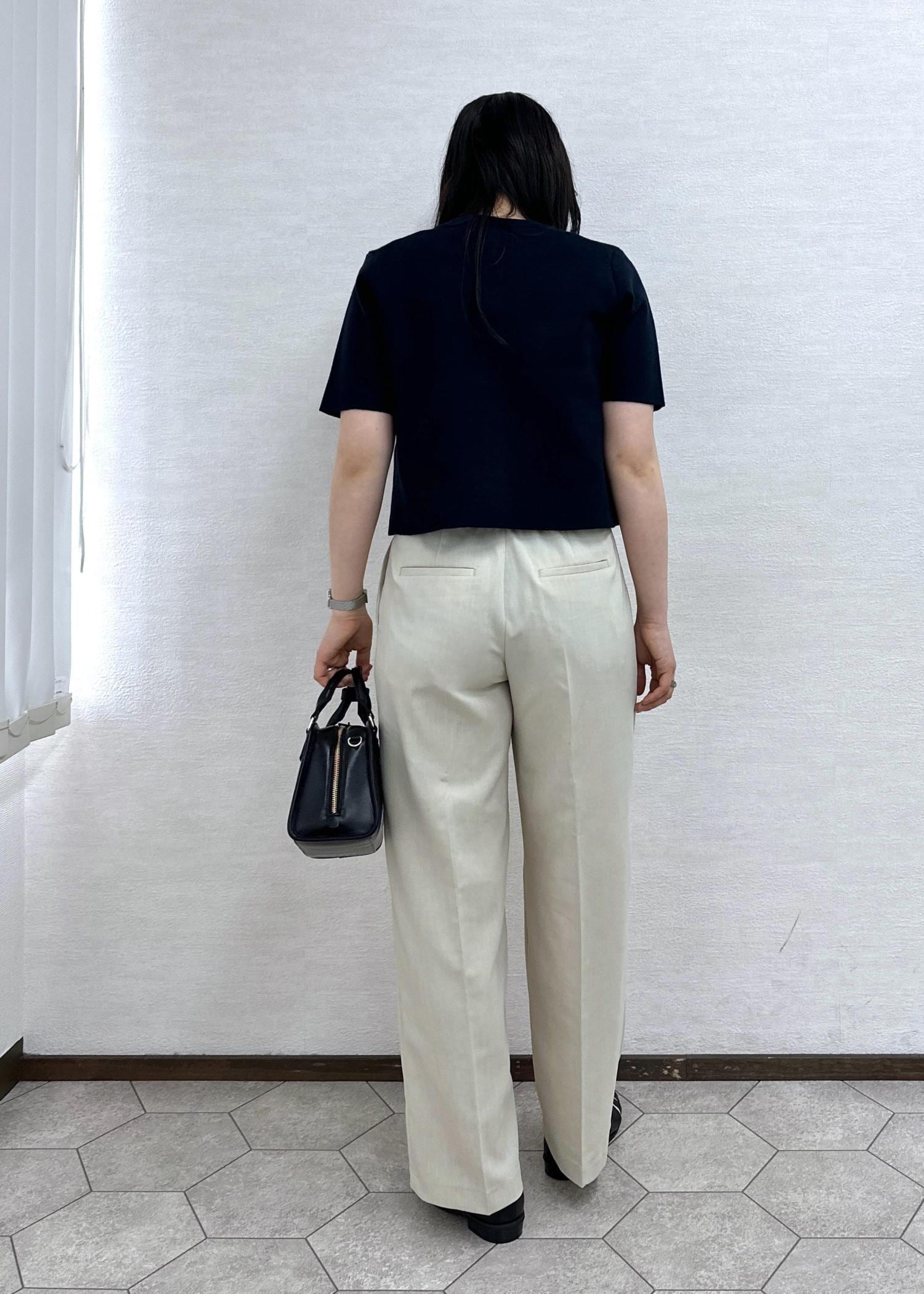 ワイドシルエットですが、広過ぎずすっきり見えるシルエット。