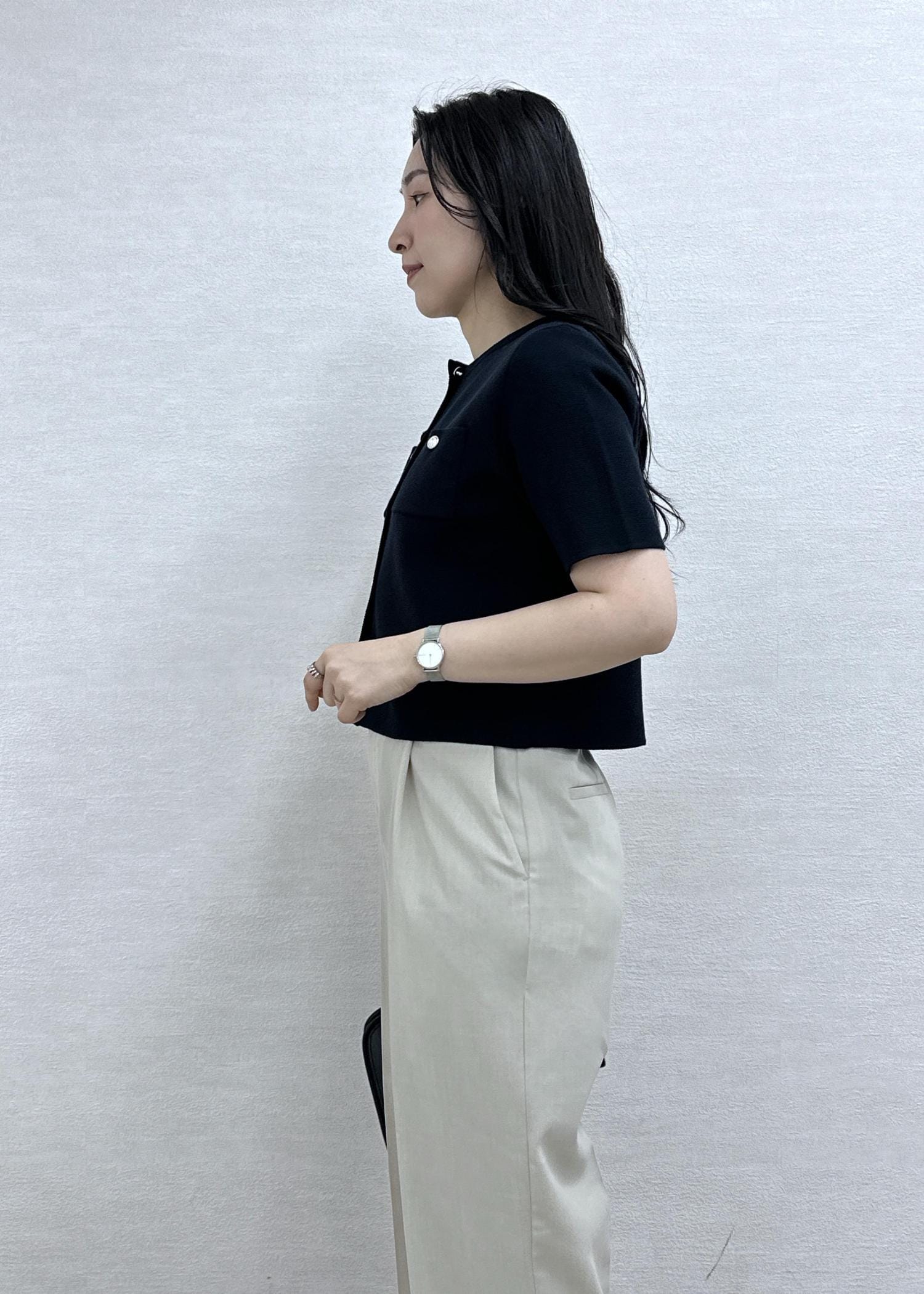 袖は二の腕が隠れるくらいで安心感があります。 -
