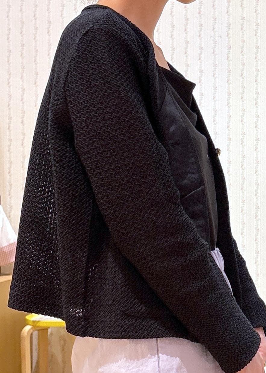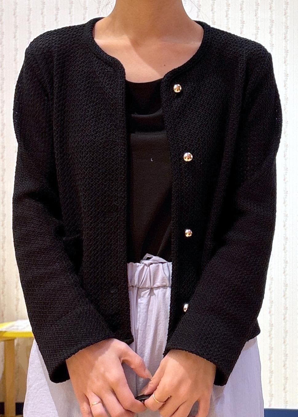 ゴールドのボタンがアクセントになり、シンプルながらも華やかさがあります。 -