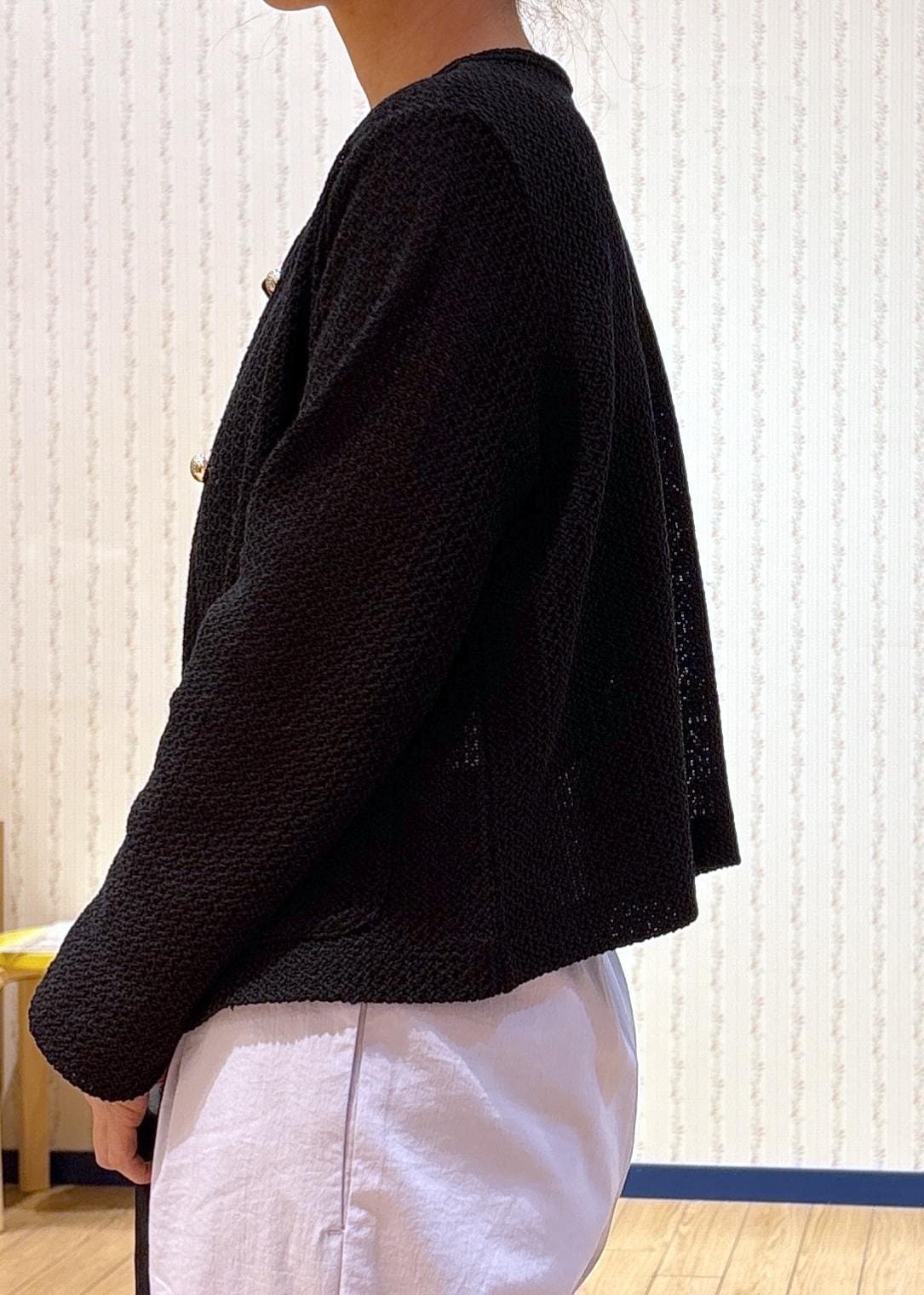 ROPÉ PICNIC透かし編み金釦カットカーディガンネイビー / F¥6,490レビュー透かし編みデザインで、きちんと見えするコンパクトな着丈のカーディガンです!