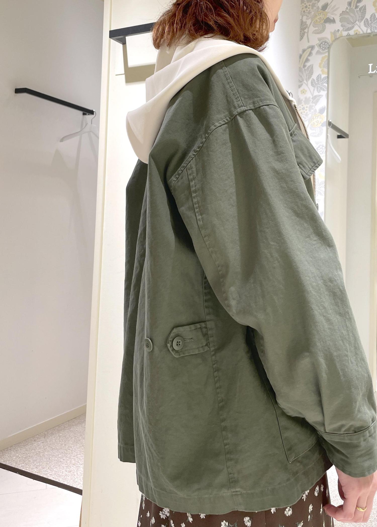 裏地は無いものの、程良くしっかりとした生地感で季節の変わり目の時期にさらっと羽織りやすいライトアウターです。