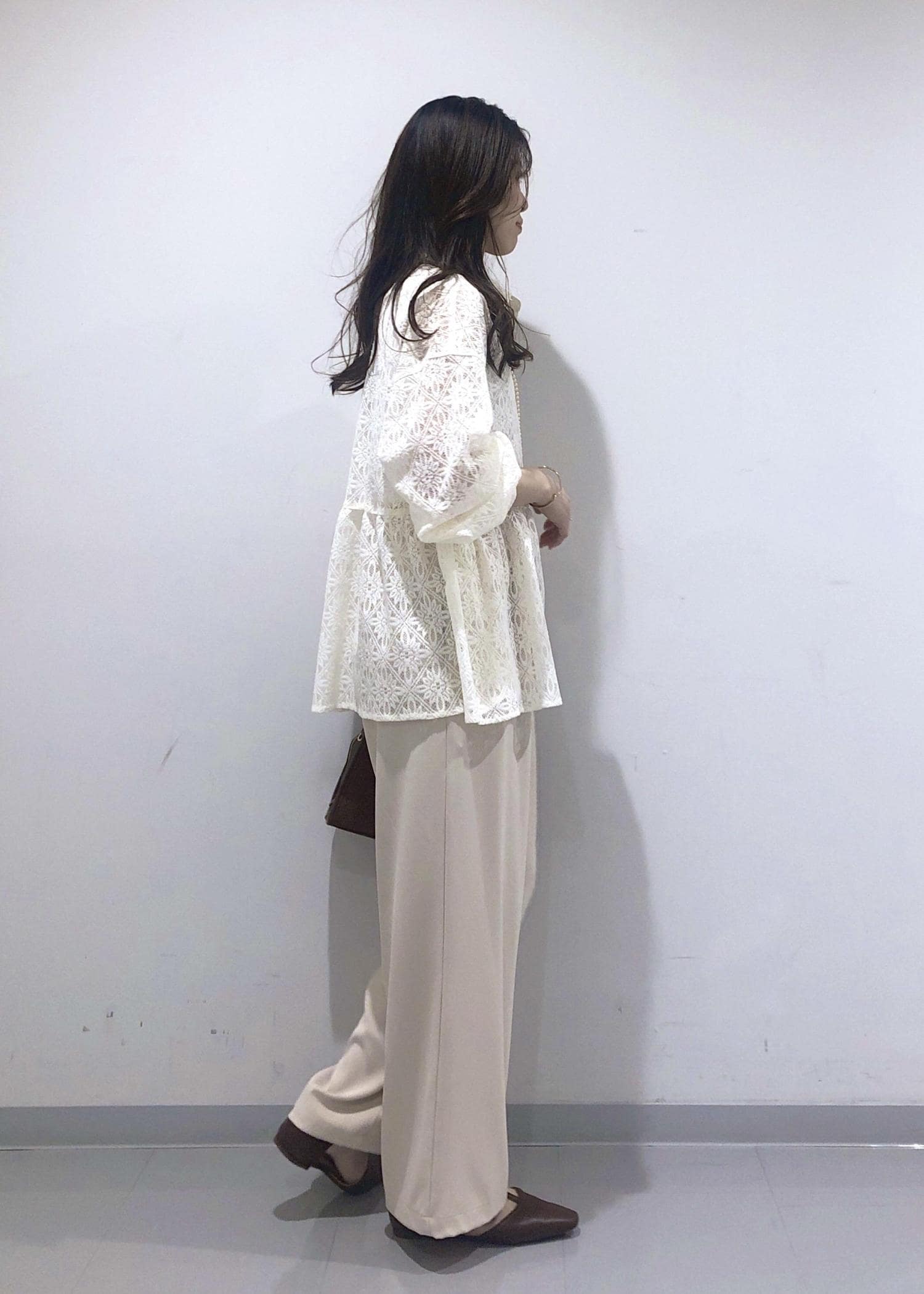 レースペプラムブラウスのワントーンコーデ!
