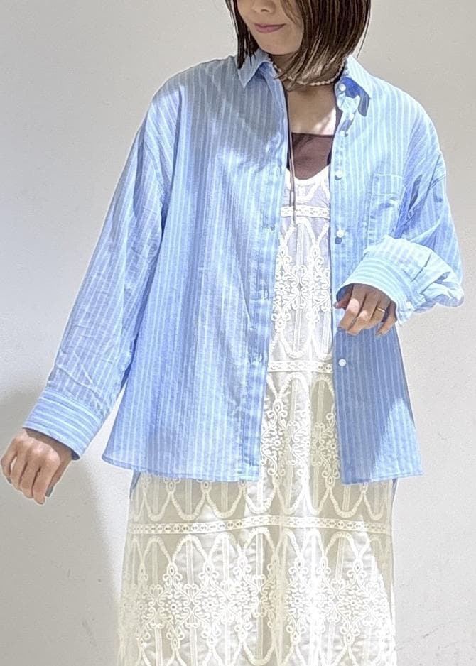 ROPÉ PICNICお着軽シャツシリーズ 無地・ストライプ 2WAYシアーブラウス/接触冷感・通気性ブルー系 / F¥4,499レビュー綿100%でほんのり透け感があります。