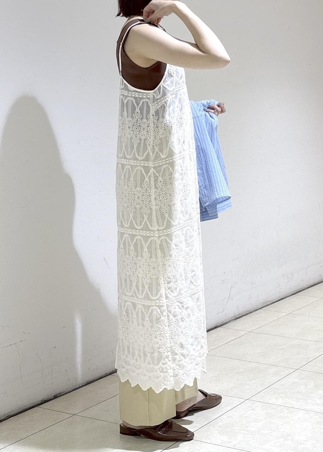 レースキャミワンピのレイヤードコーデ