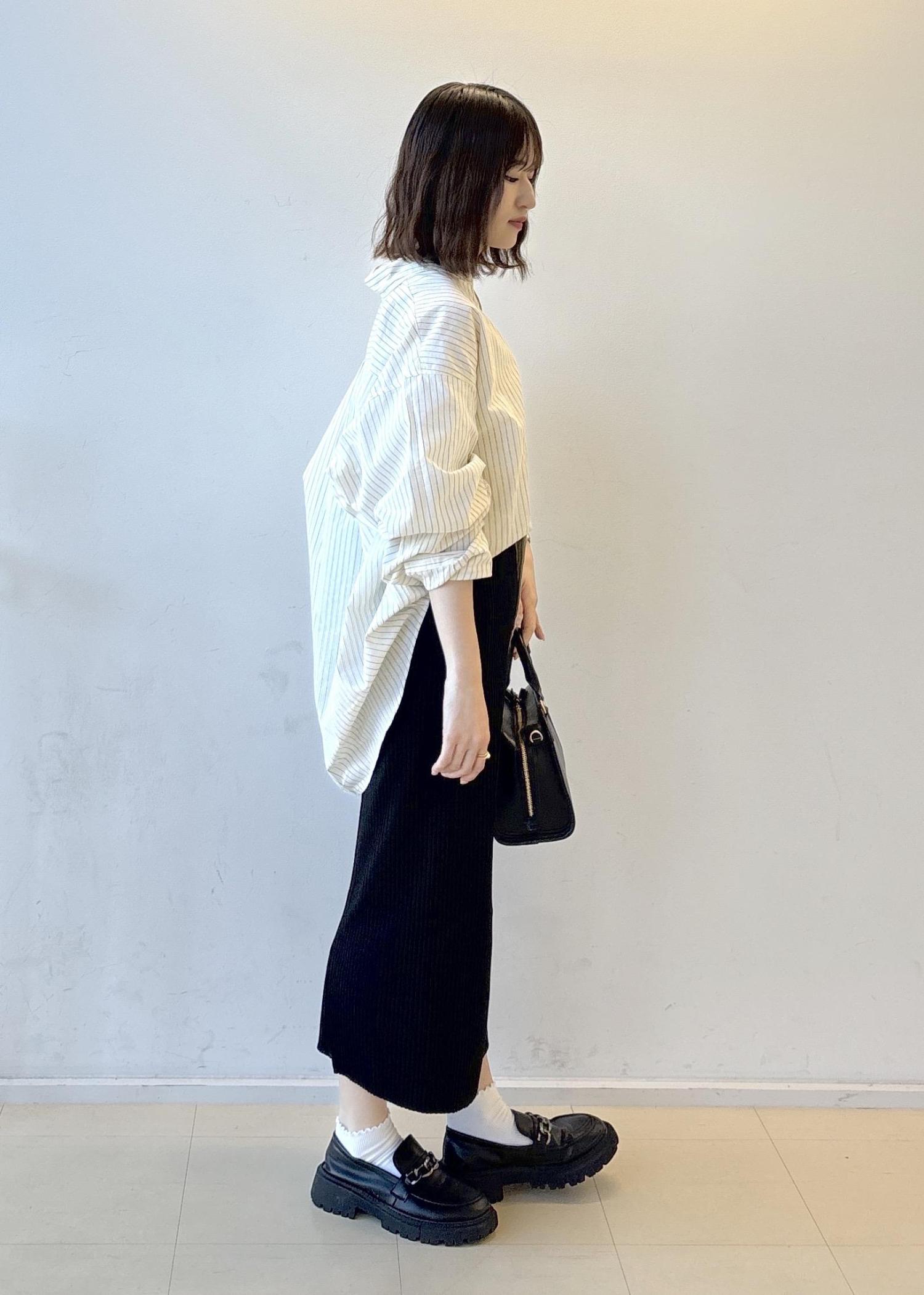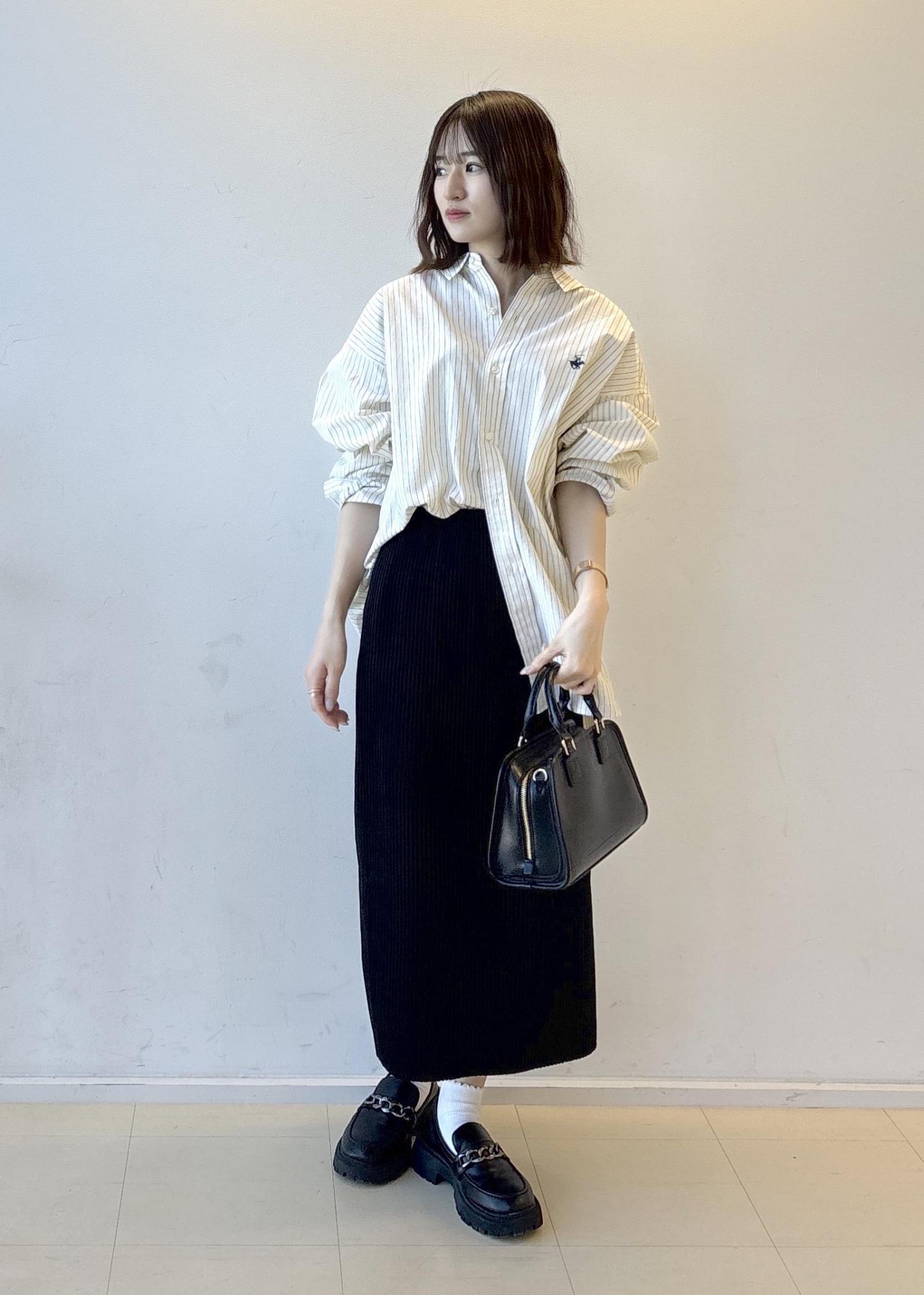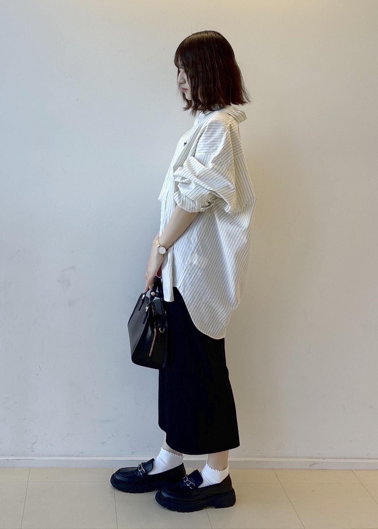 オーバーサイズなシャツなので下はタイトスカートを合わせて、カジュアルになりすぎず女性らさもプラスしてみました♡