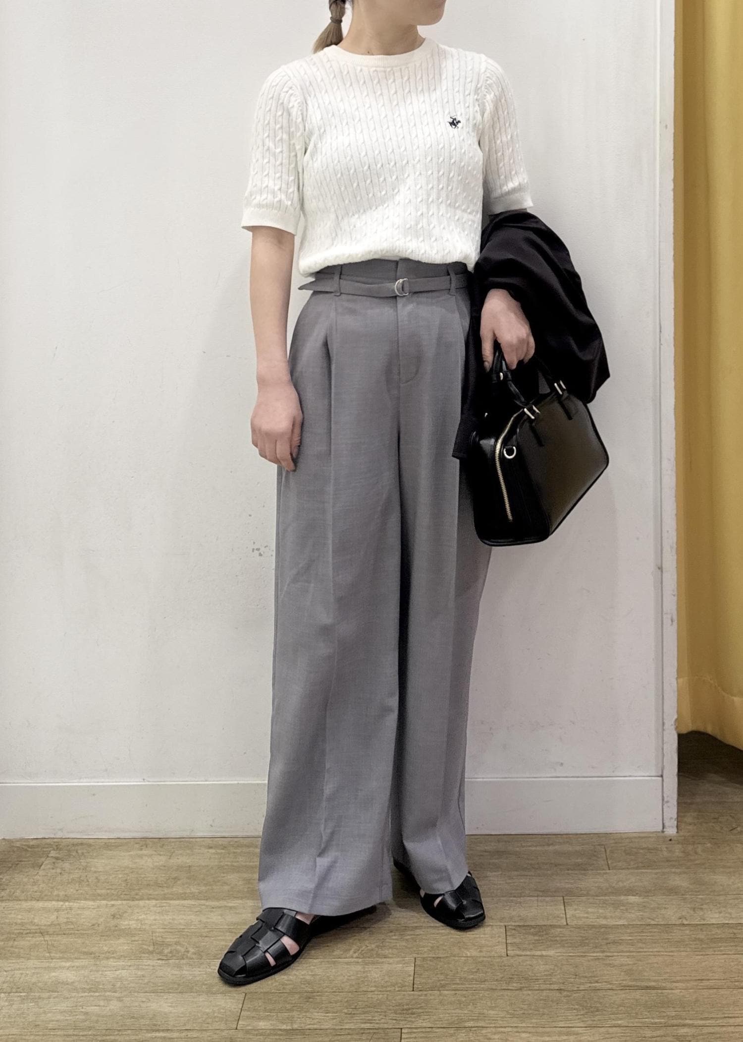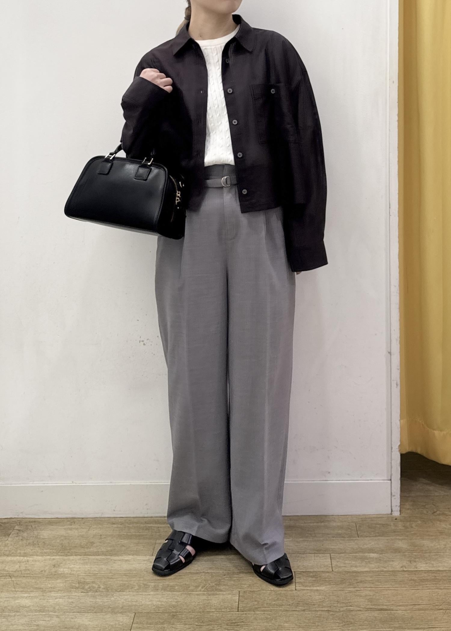 広がり過ぎないストレートめなワイドパンツはセンターライン入りとハイウエストなデザインでスッキリ見えするシルエットになります。 -