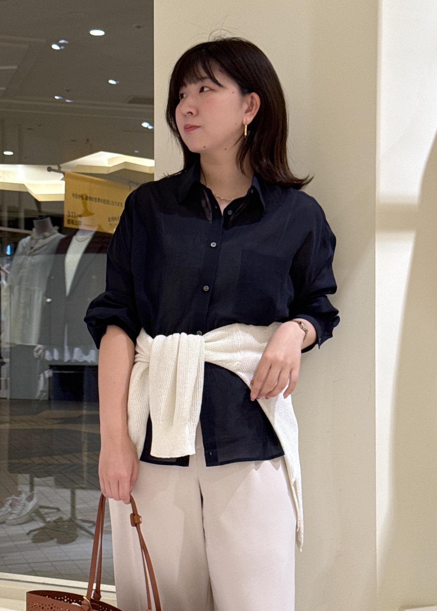 ROPÉ PICNICお着軽シャツシリーズ 無地・ストライプ 2WAYシアーブラウス/接触冷感・通気性ネイビー / F¥4,499レビュー柔らかい綿100%の素材なので、ハリのあるシャツが苦手な方でも着やすいアイテムです。
