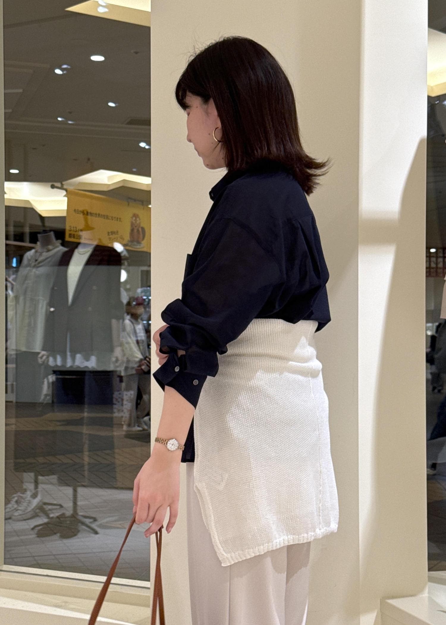 おしりがすっぽり隠れるので、体型カバーできますが骨格ウェーブなのでウエストラインがわかるように裾を片方インしたり、前だけインするのがおすすめです✨️ -