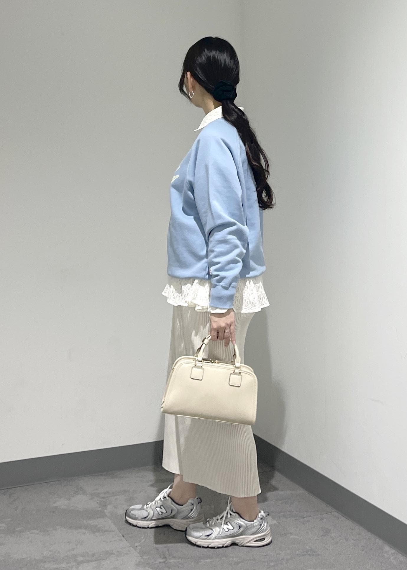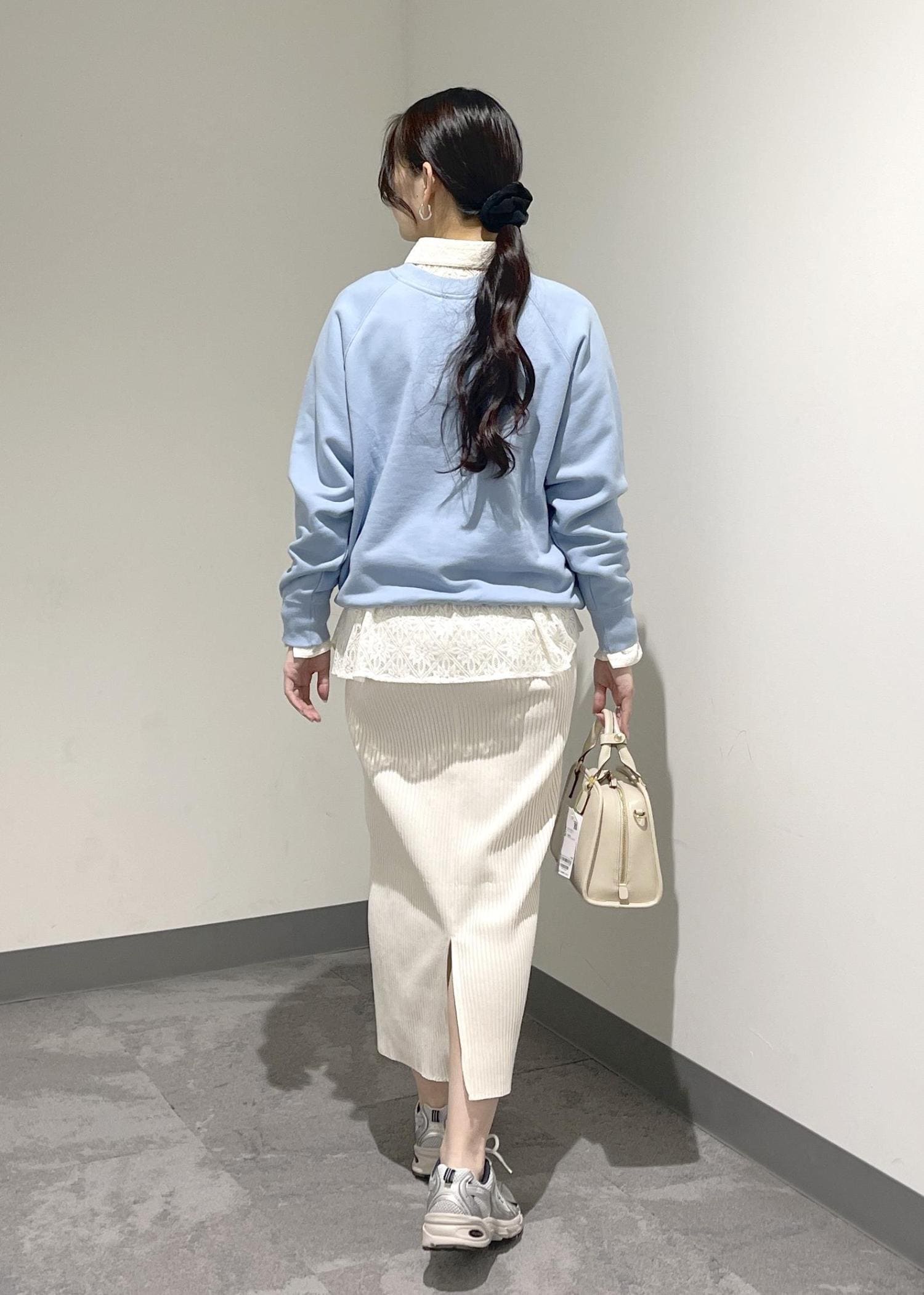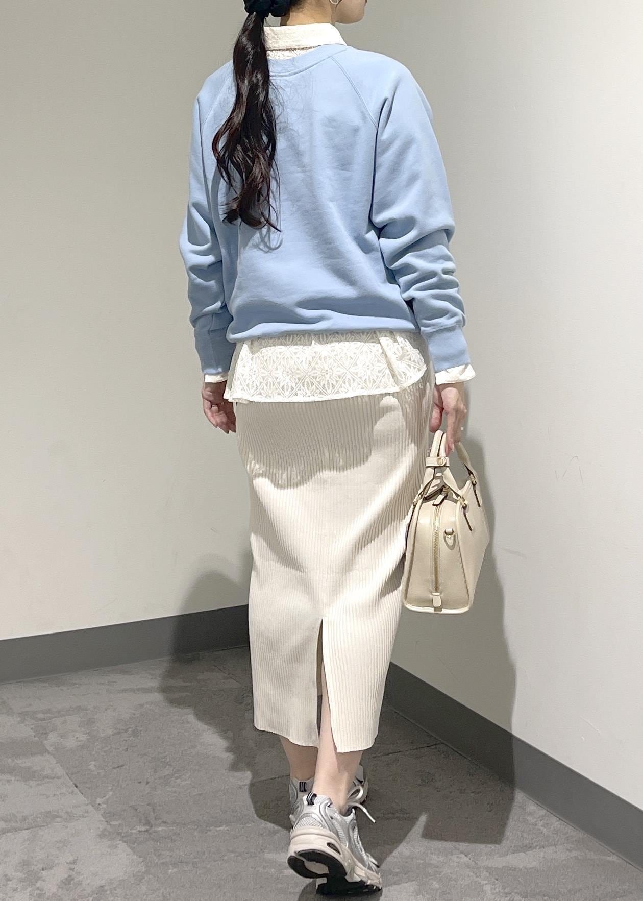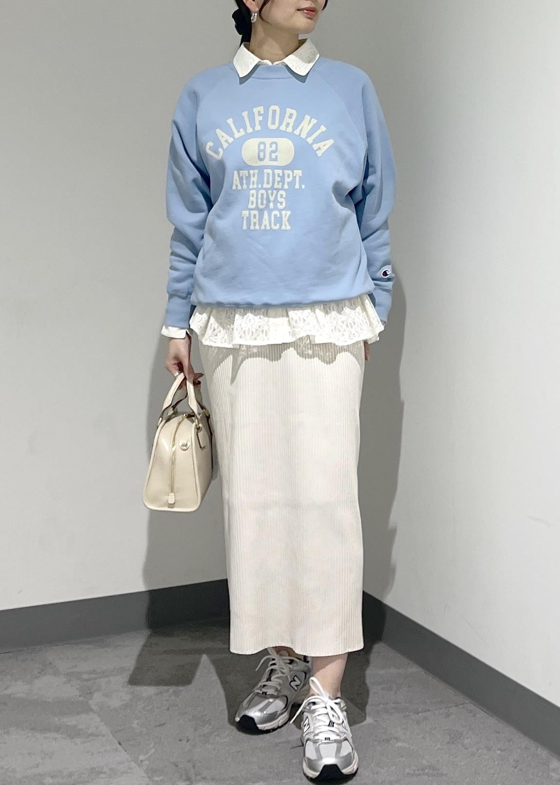 カジュアルなトレーナーにスカートを合わせてレディライクに!