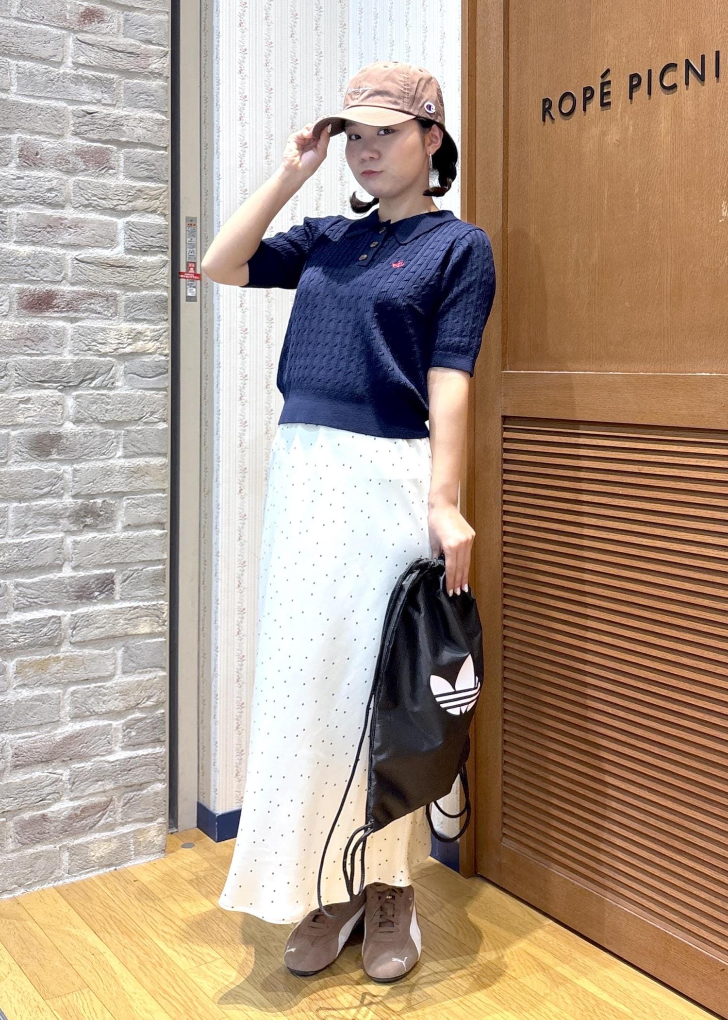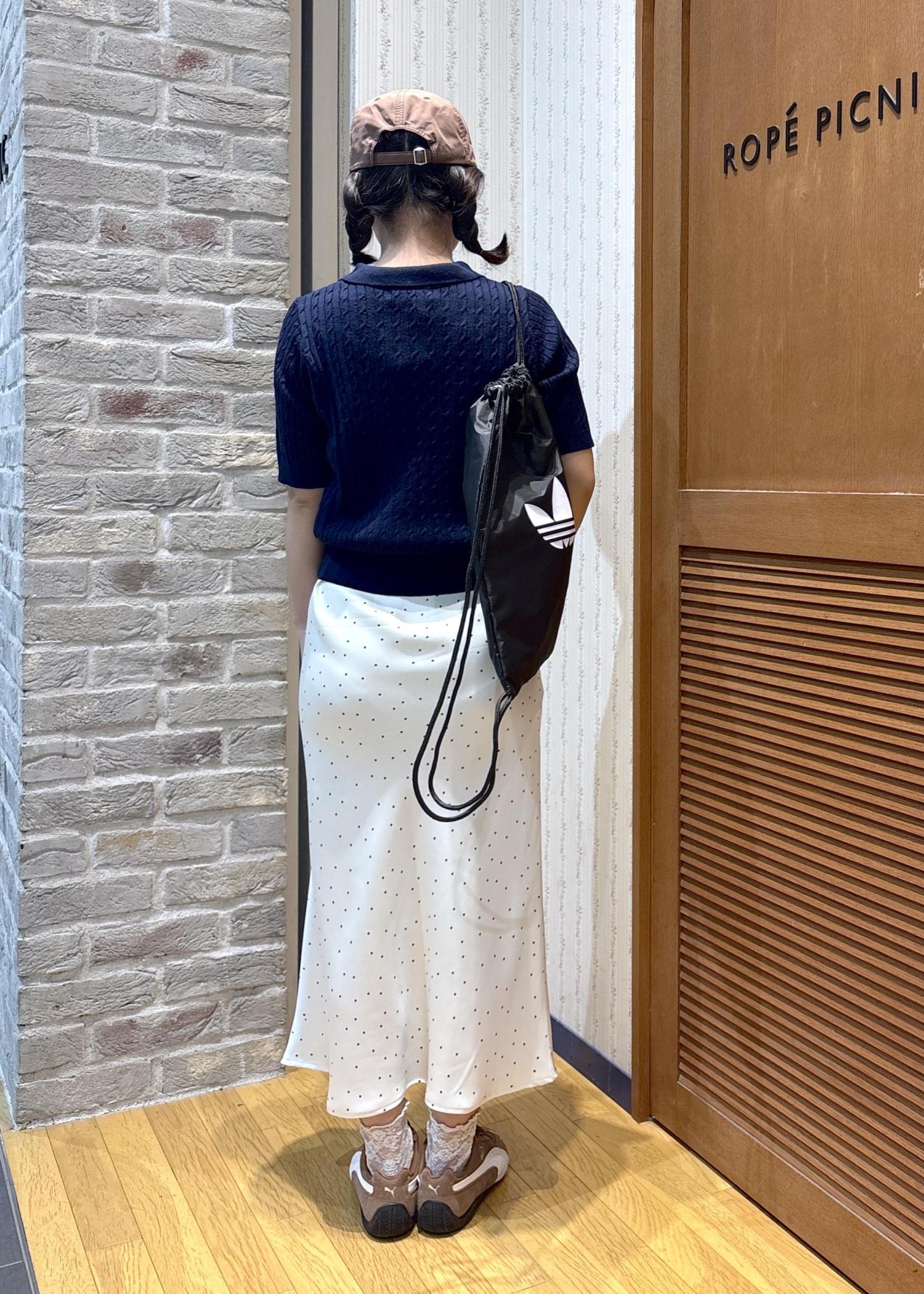 カジュアルなアイテムに、サテン生地の上品なスカートを合わせることによって、ラフになりすぎない「大人カジュアル」を意識してみました。