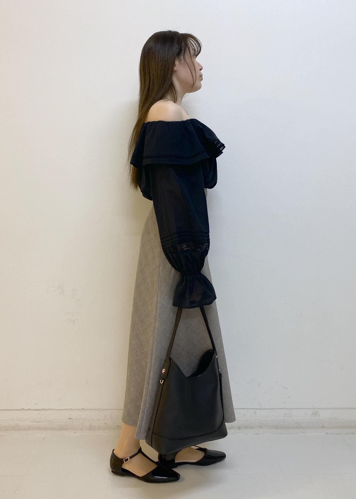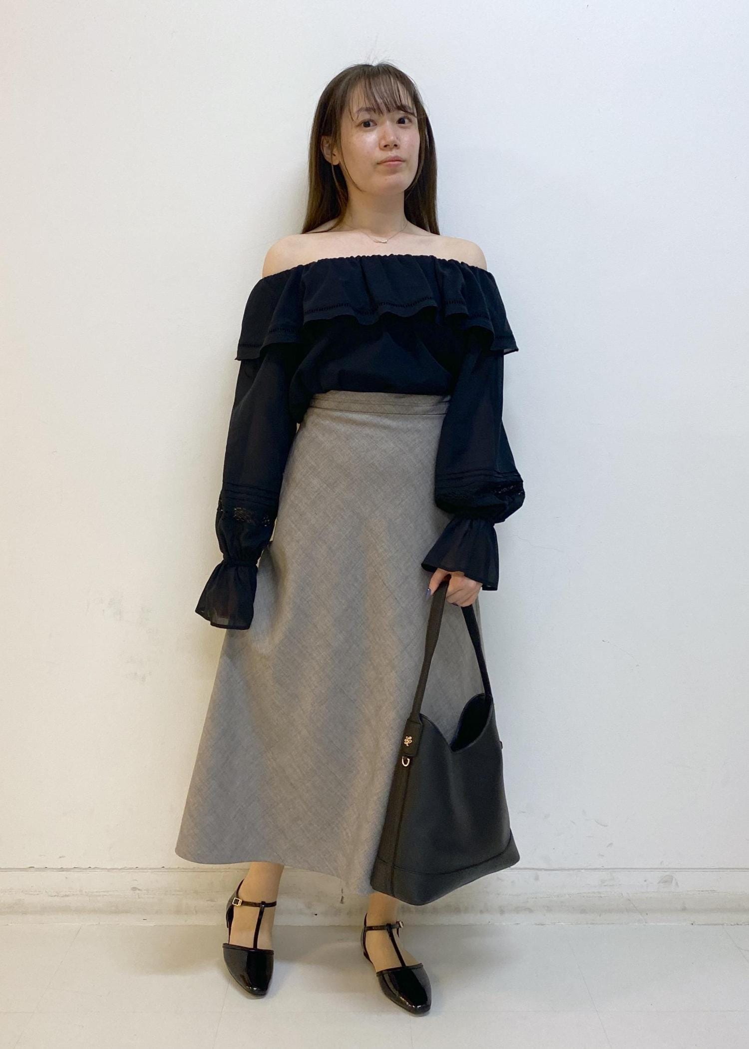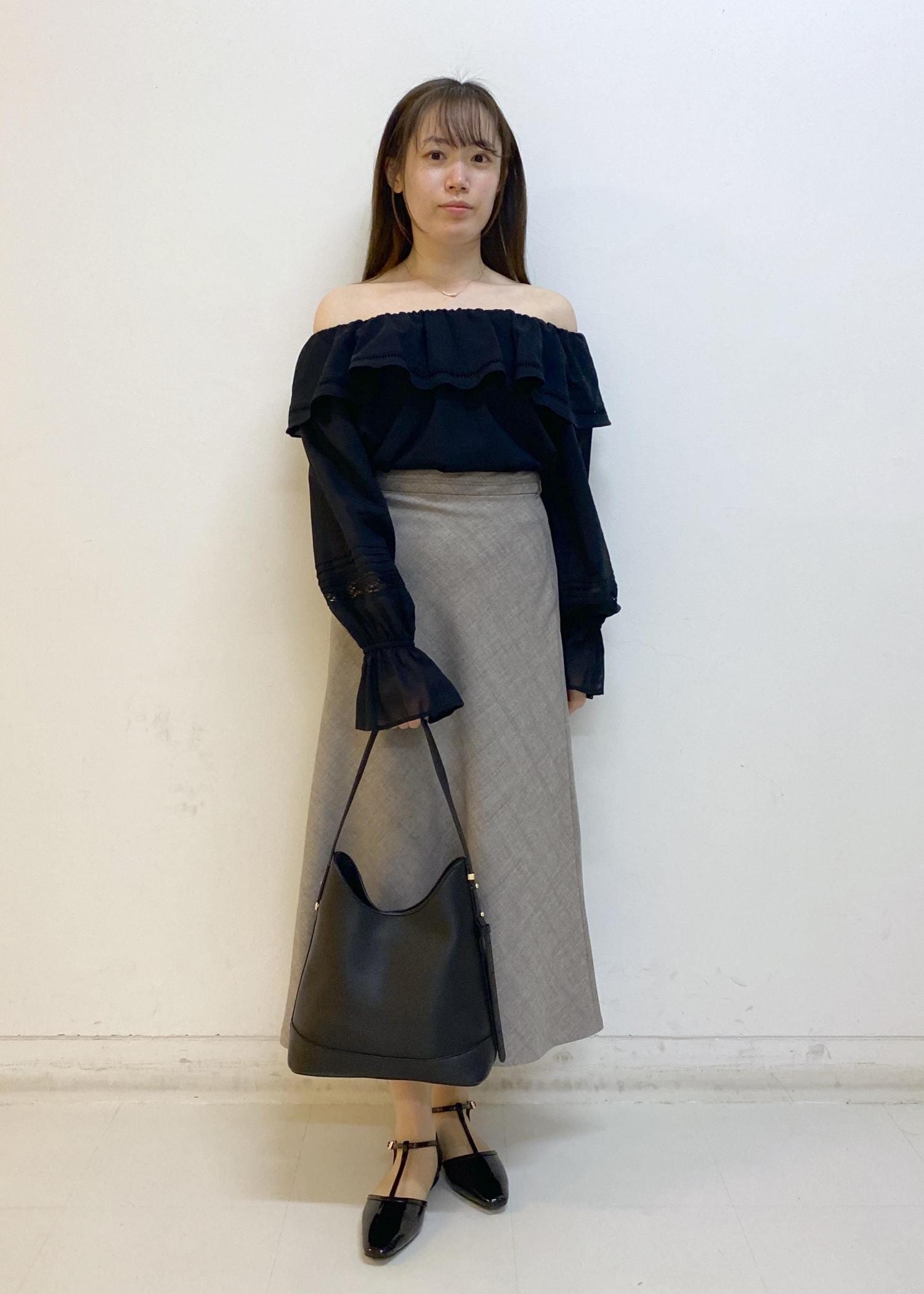 オフショルブラウスのモノトーンコーデ