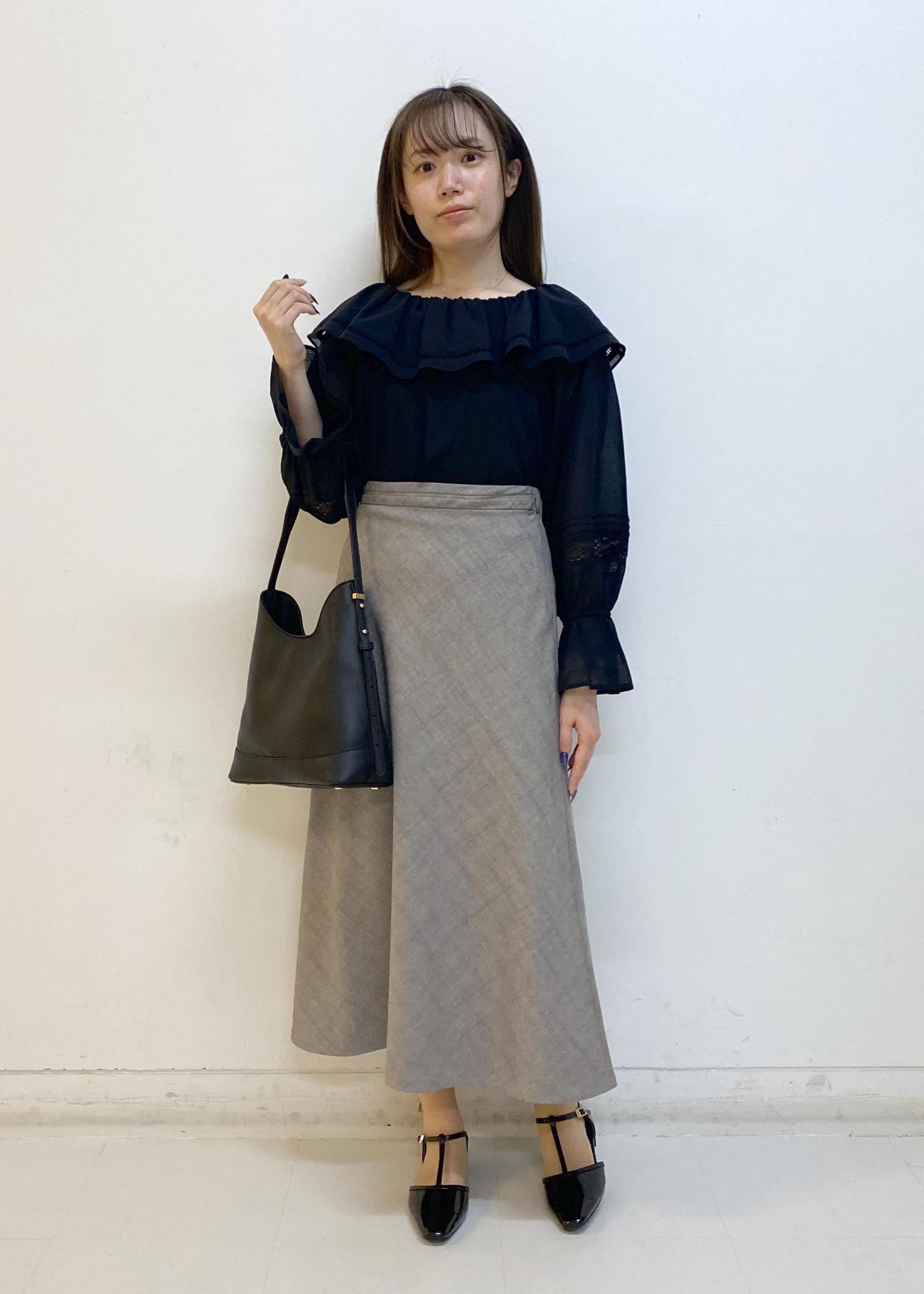 ブラウスはボリュームがあるのでウエストインですっきりと着こなしています。