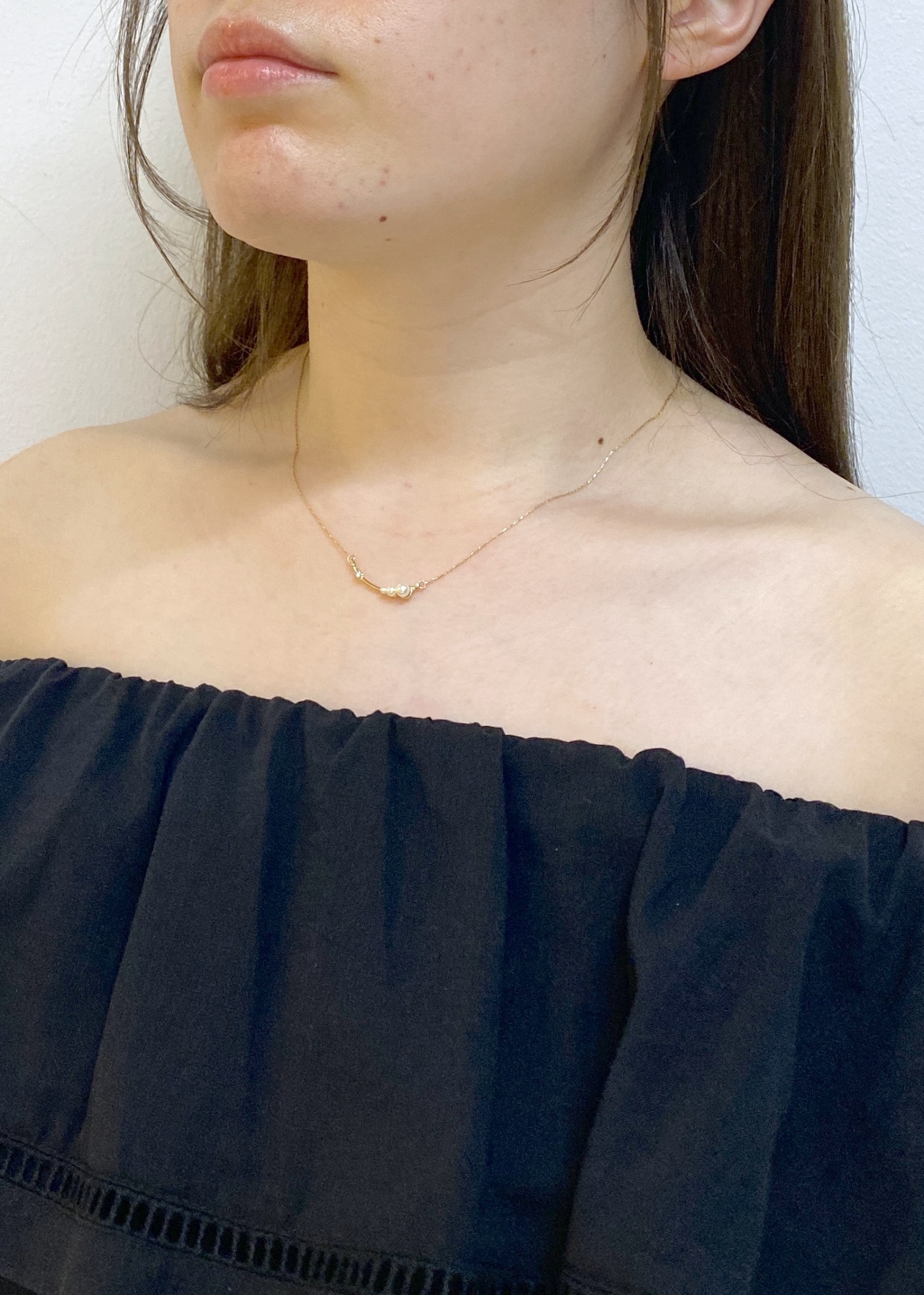 デコルテラインを綺麗に魅せるため、首元にはネックレスを合わせました!