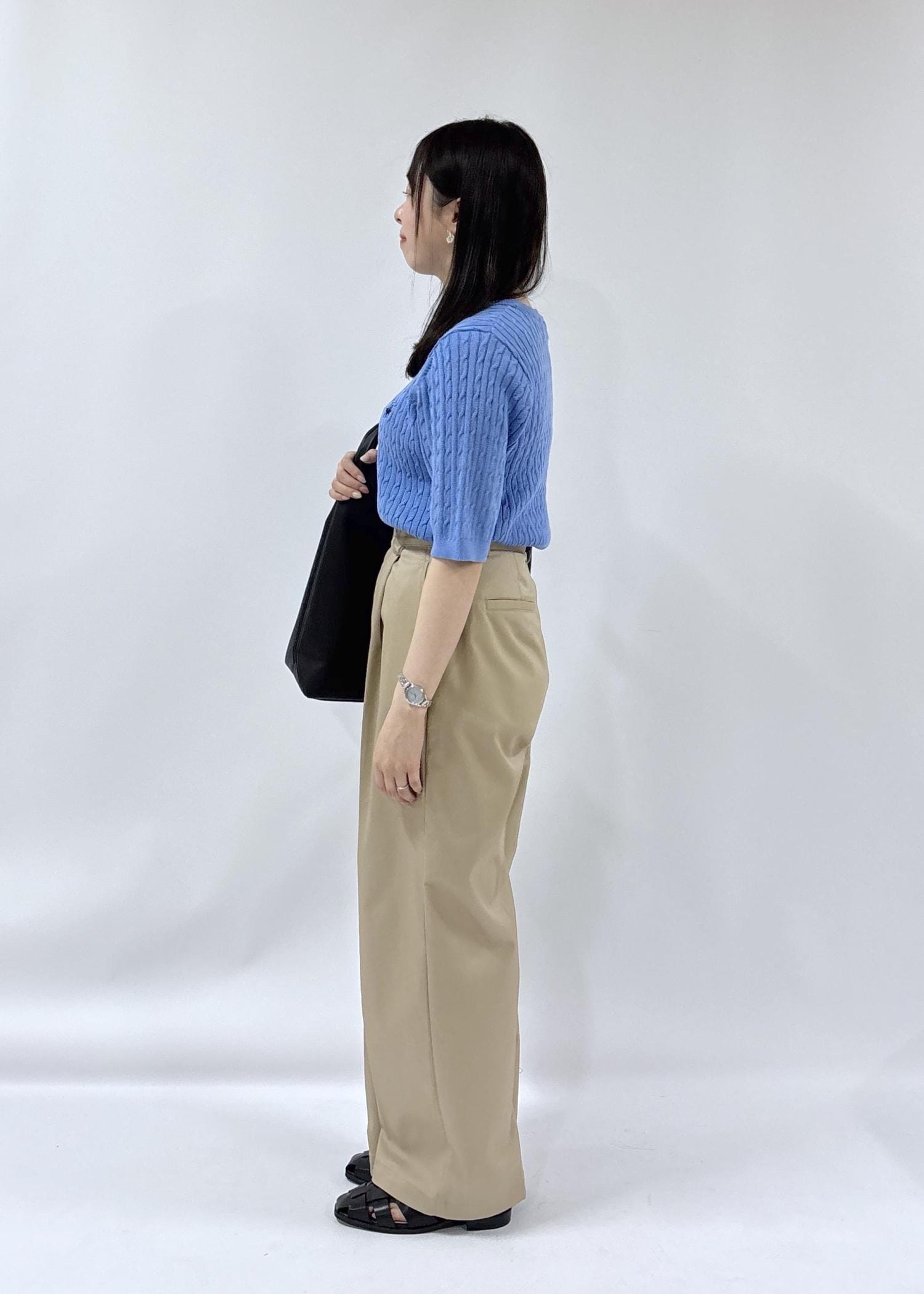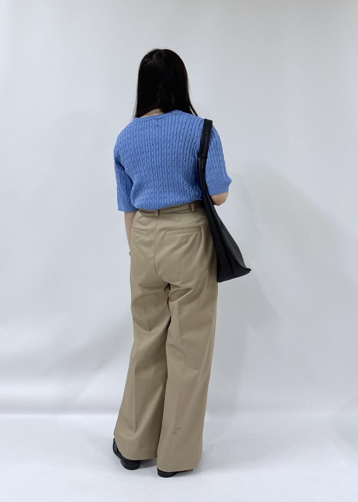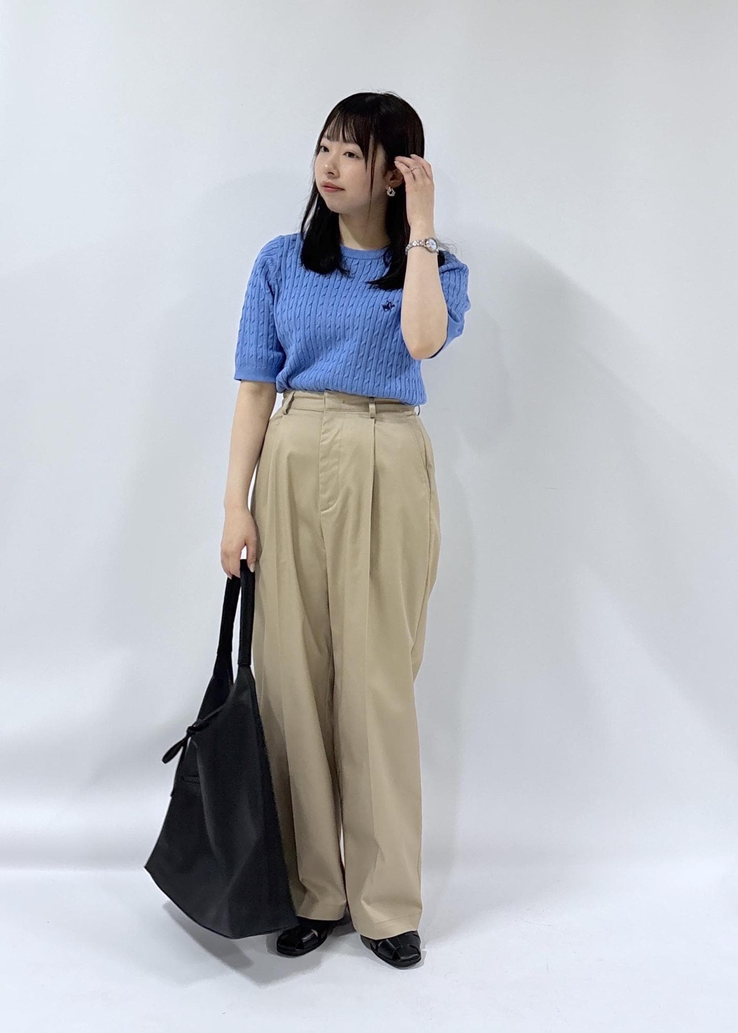ケーブル編みが可愛いニットで、シンプルなボトムスと合わせるのがオススメ◎