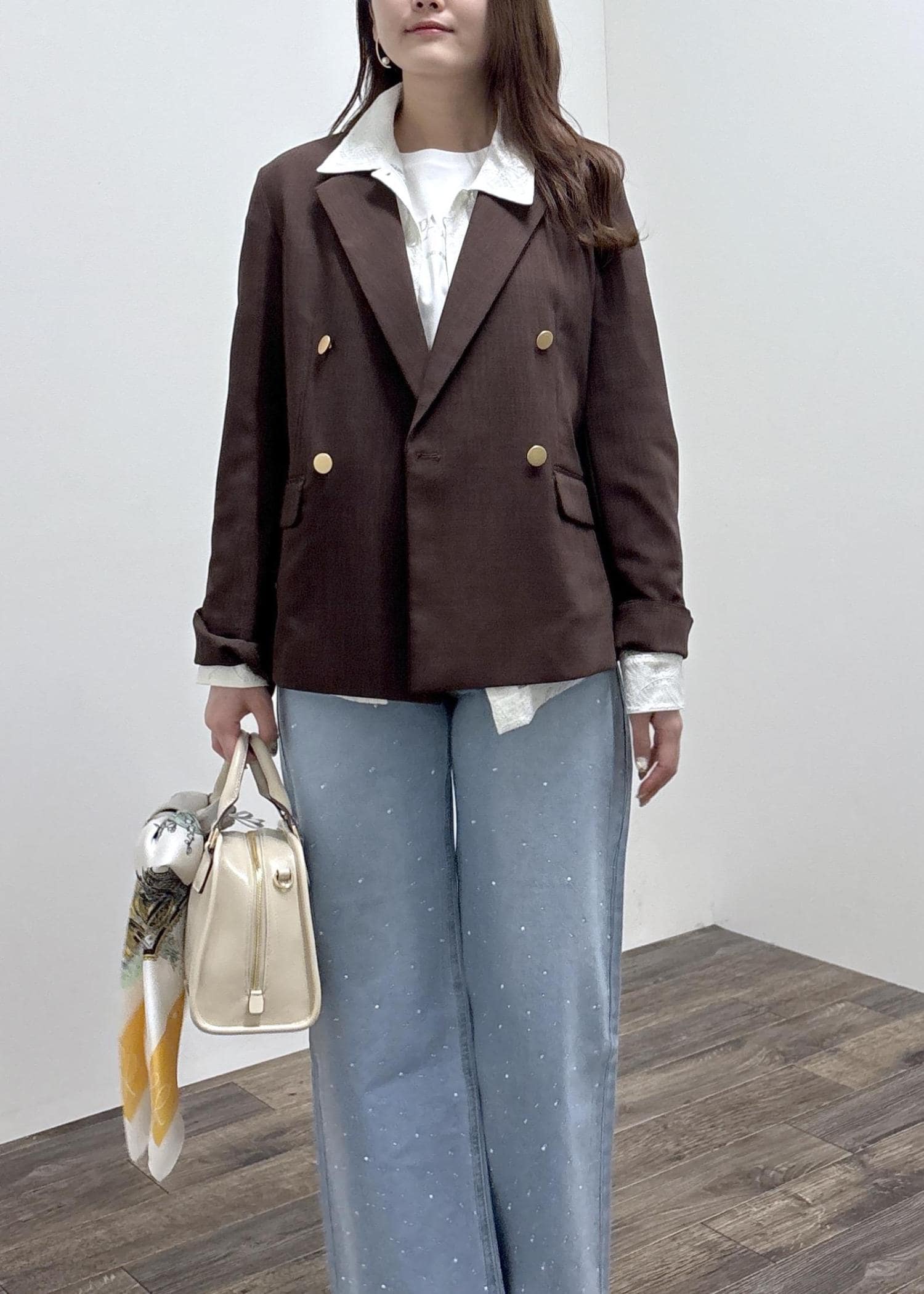 ROPÉ PICNICカナパ 金ボタンジャケット/セットアップ対応・UV・抗菌防臭・接触冷感ダークブラウン / M¥8,492レビュー裏地が付いていない春夏におすすめなジャケットです。