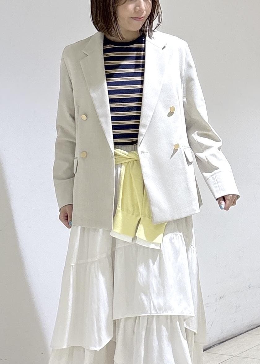 着丈は腰にかかるほどの長さでした。袖丈は手首がしっかり隠れる長さです。袖口にスリットが入っているので腕まくりもしやすく、春夏秋と長く着られるジャケットです! -