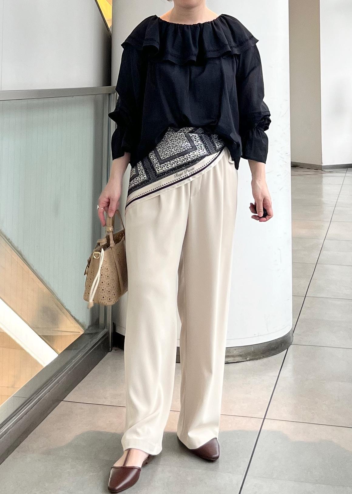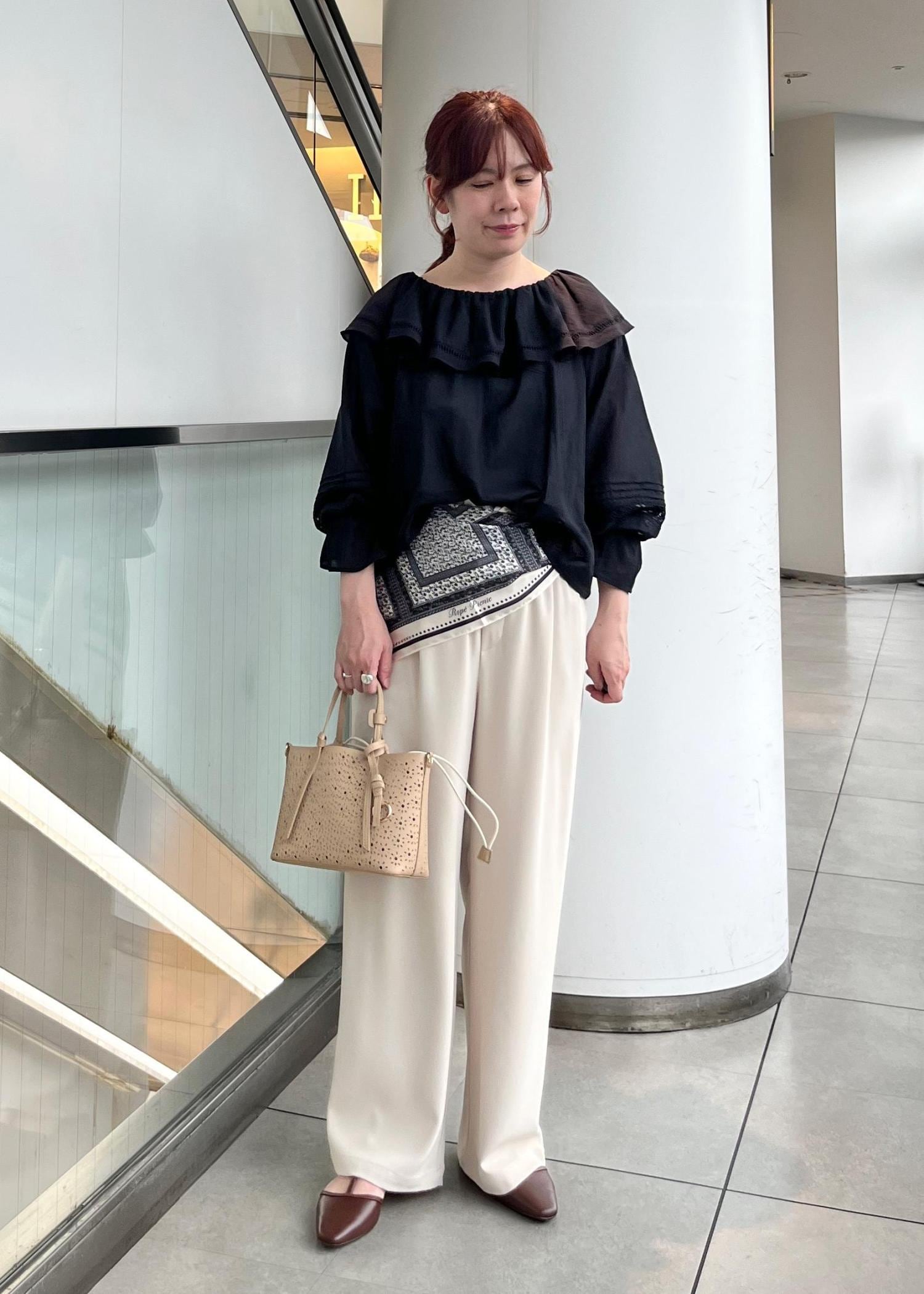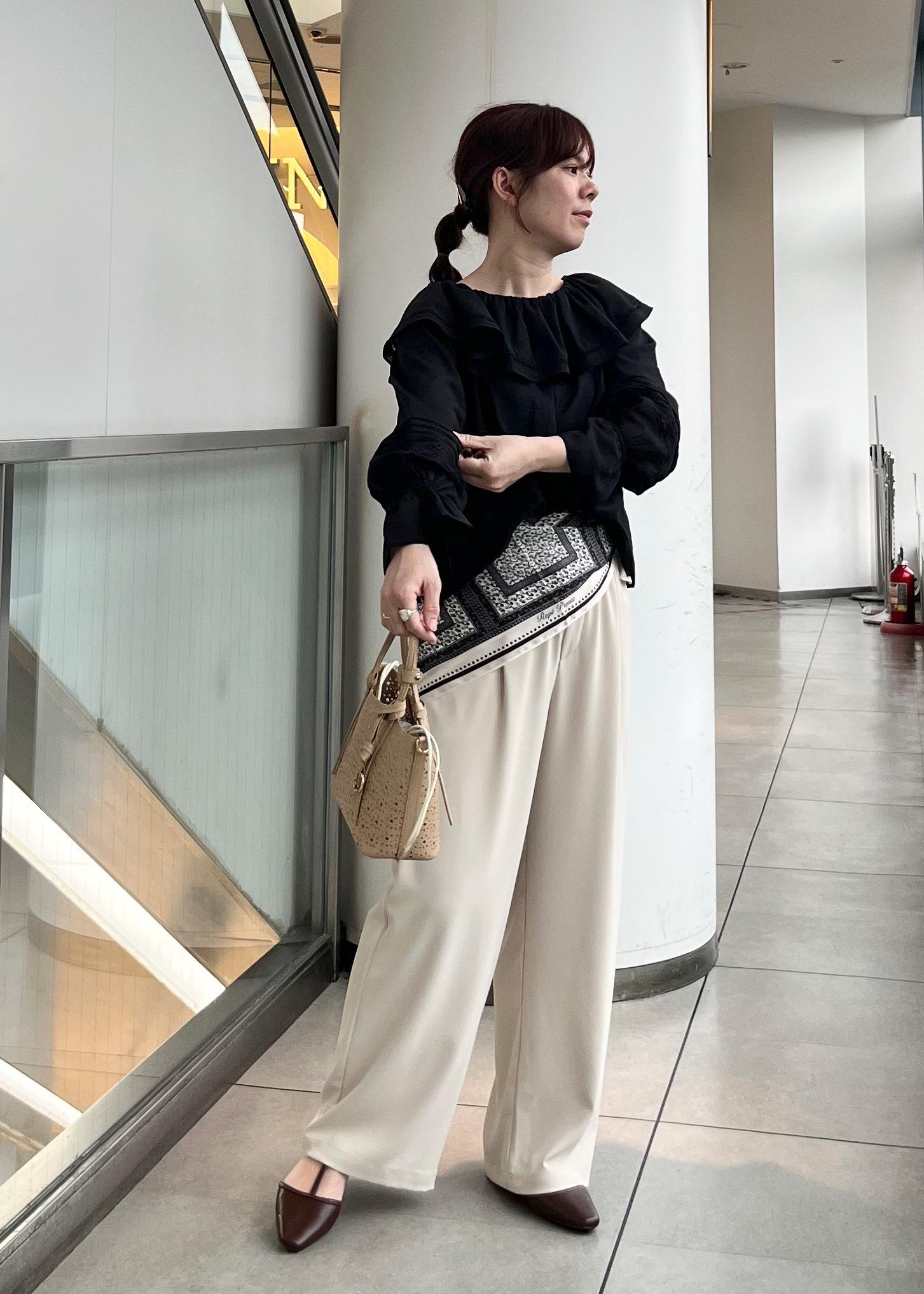 スカーフ合わせにして今年らしい印象にしました。