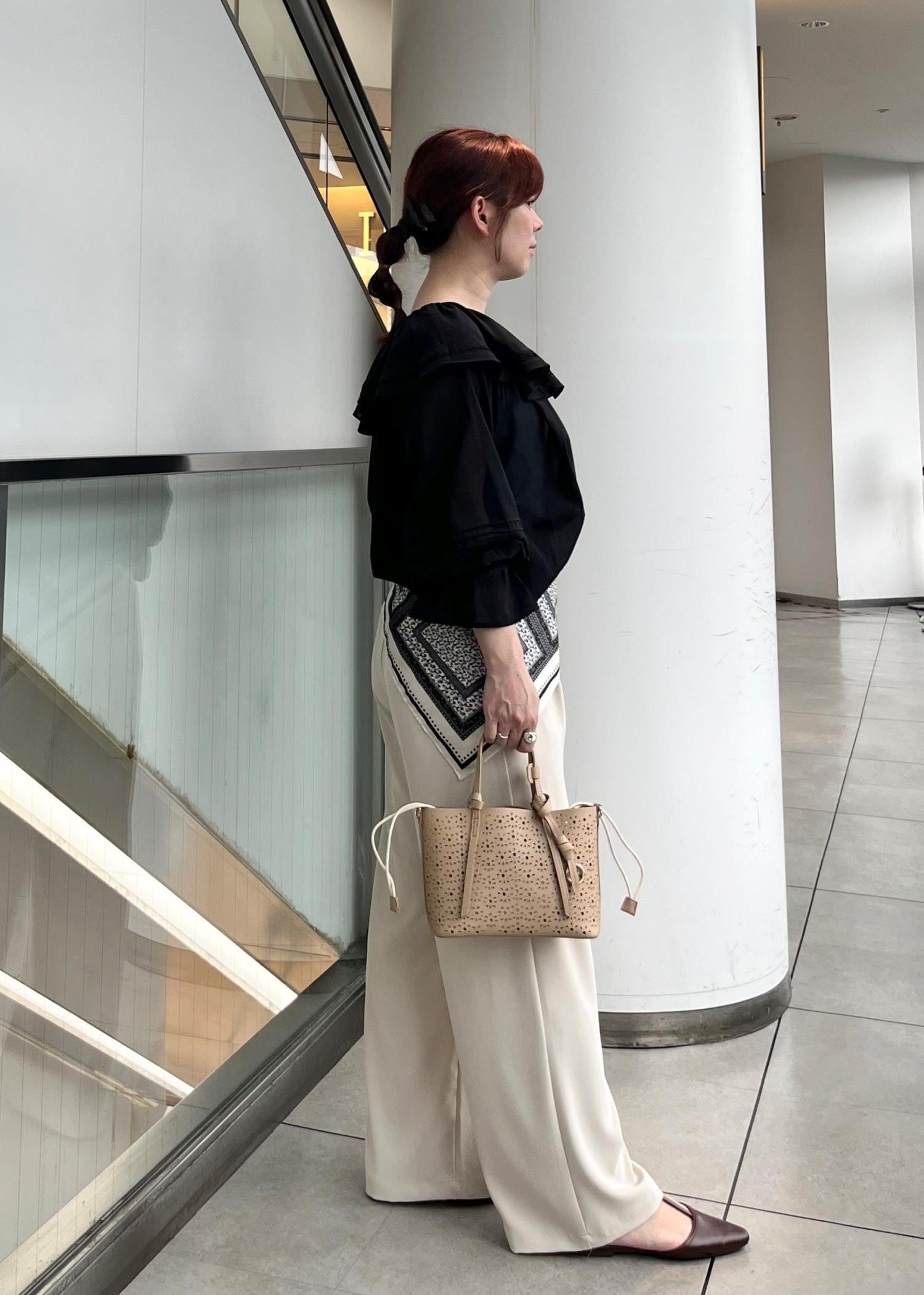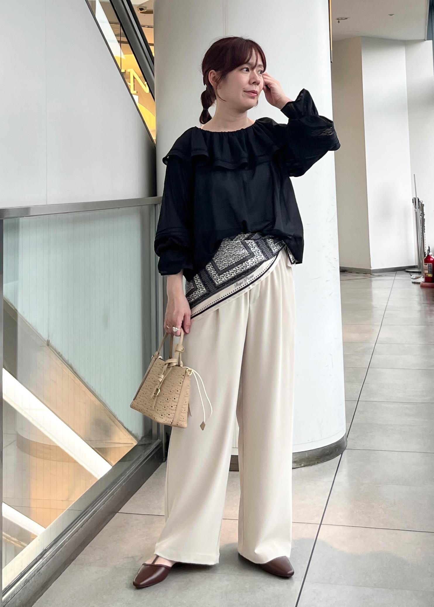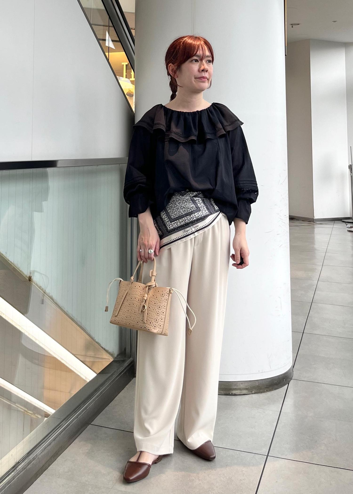 スカーフ合わせにして今年らしい印象にしました。